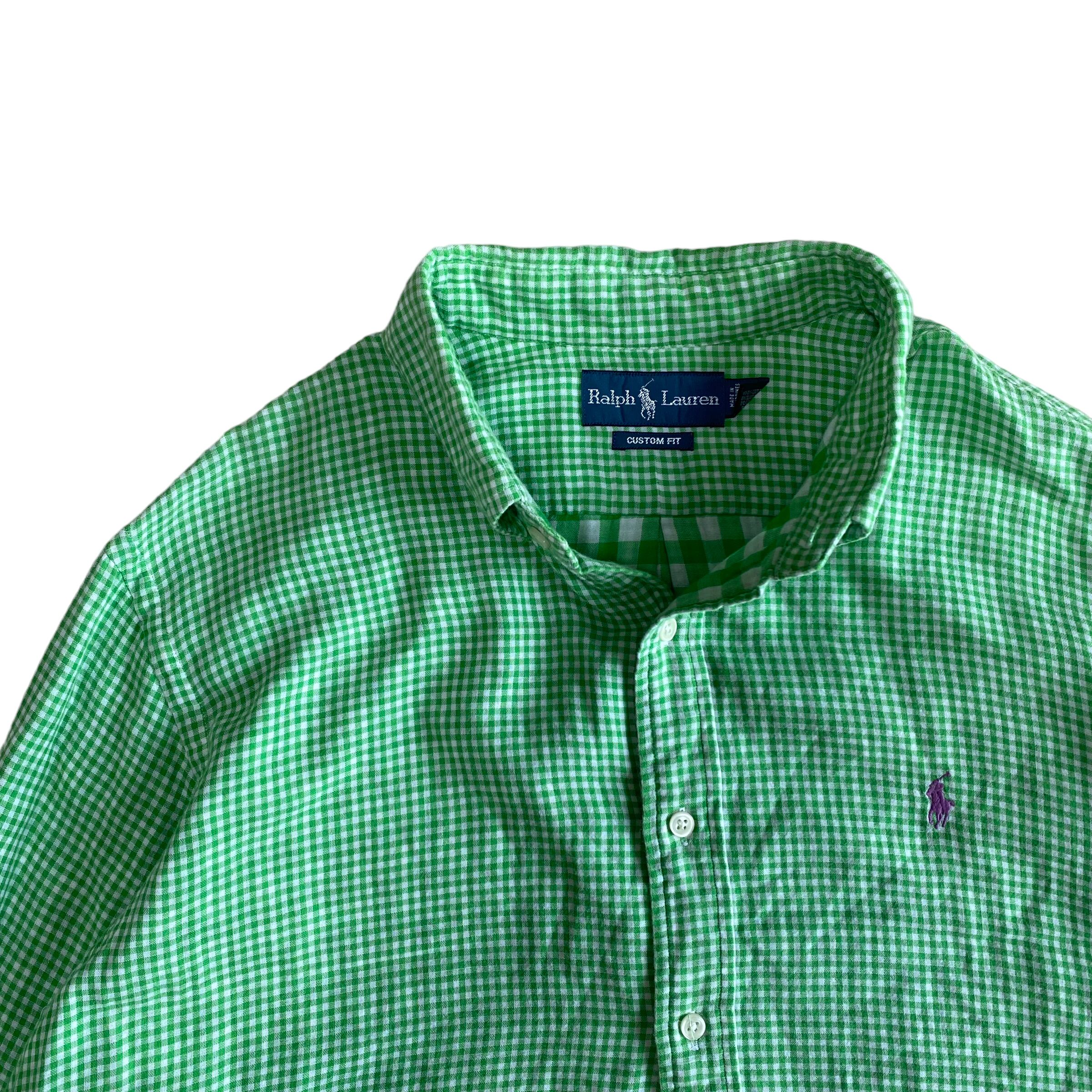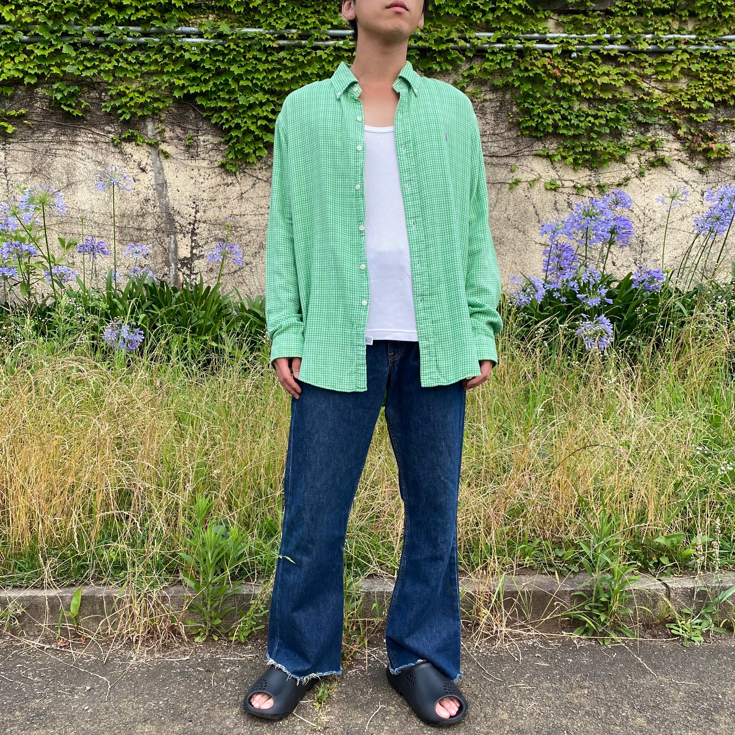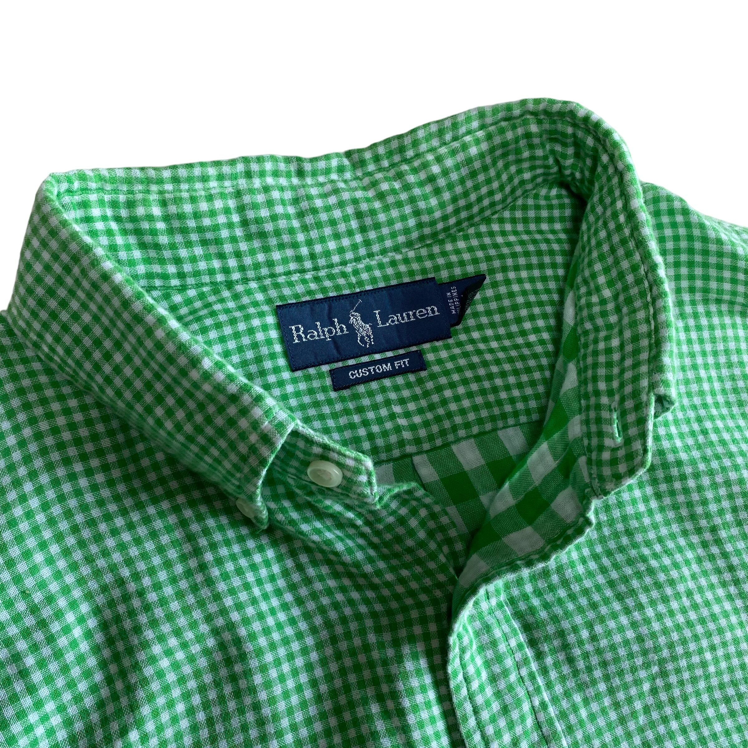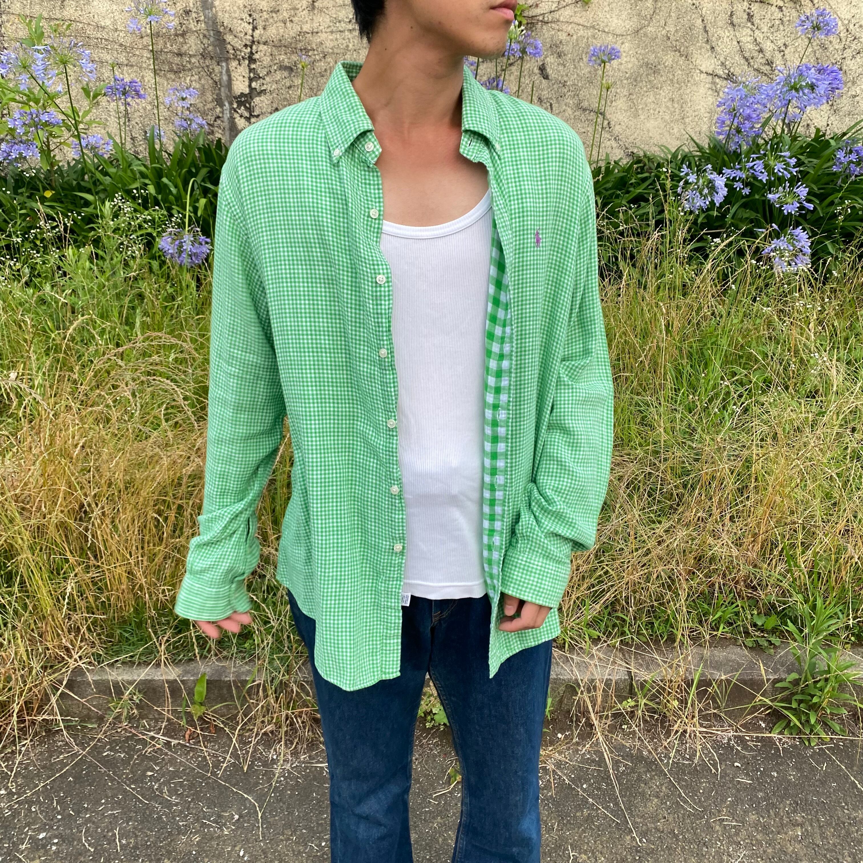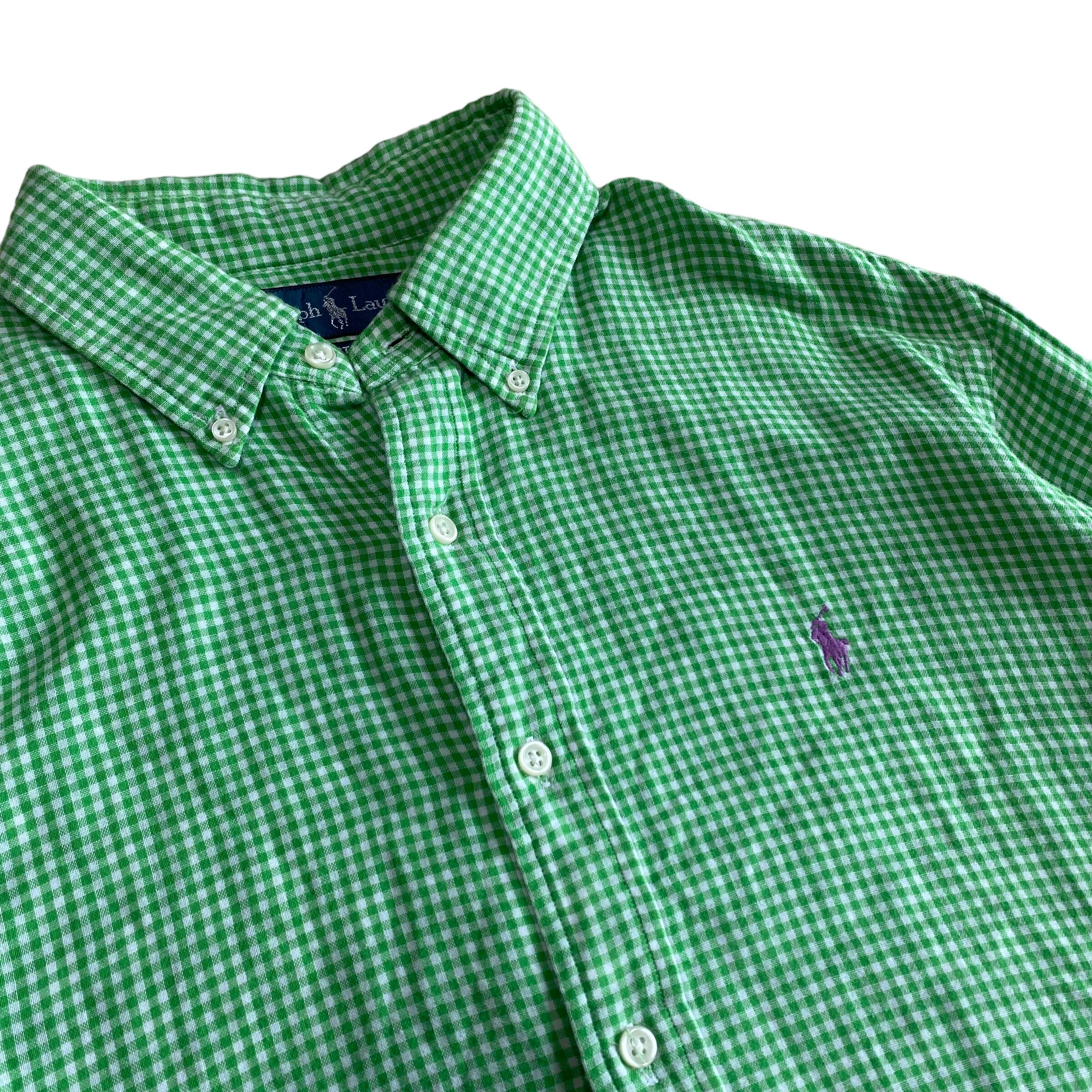 お馴染み、アメリカの老舗ブランド「Ralph Lauren」からグリーンのギンガムチェックシャツ。