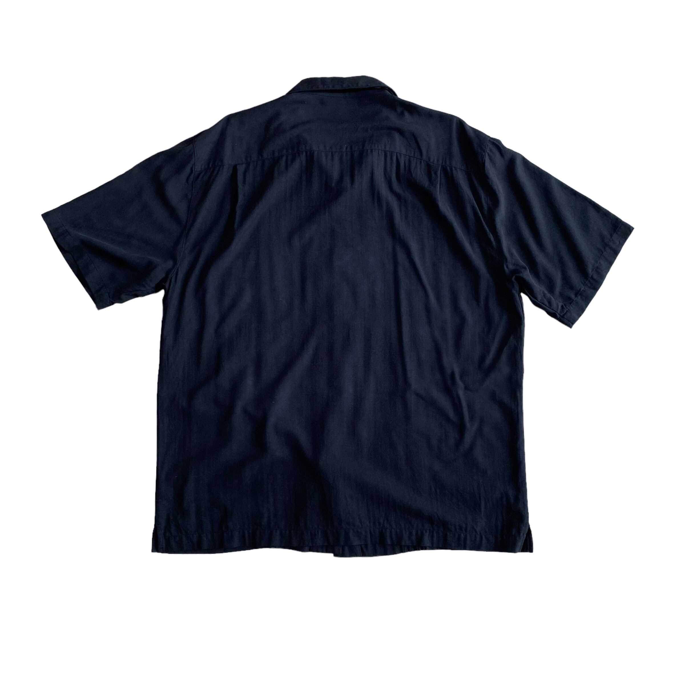 当店として推しているブラックのs/sシャツ、でも普通じゃつまらないよねってことで、こちらはフロント部分に立体的な織りが入ったデザインが光るアイテム。