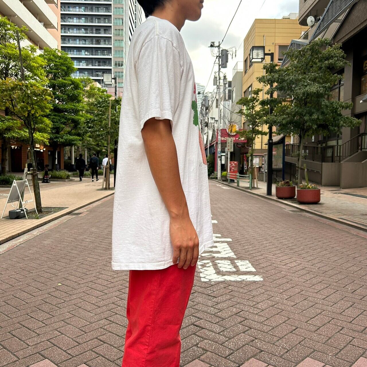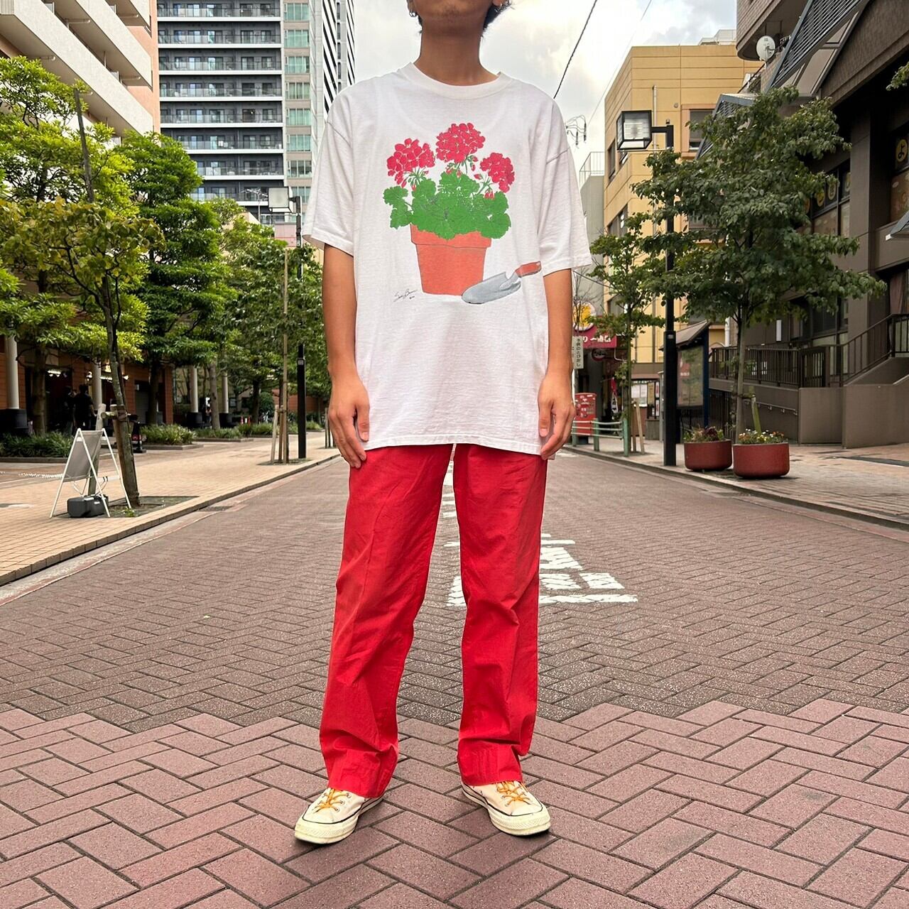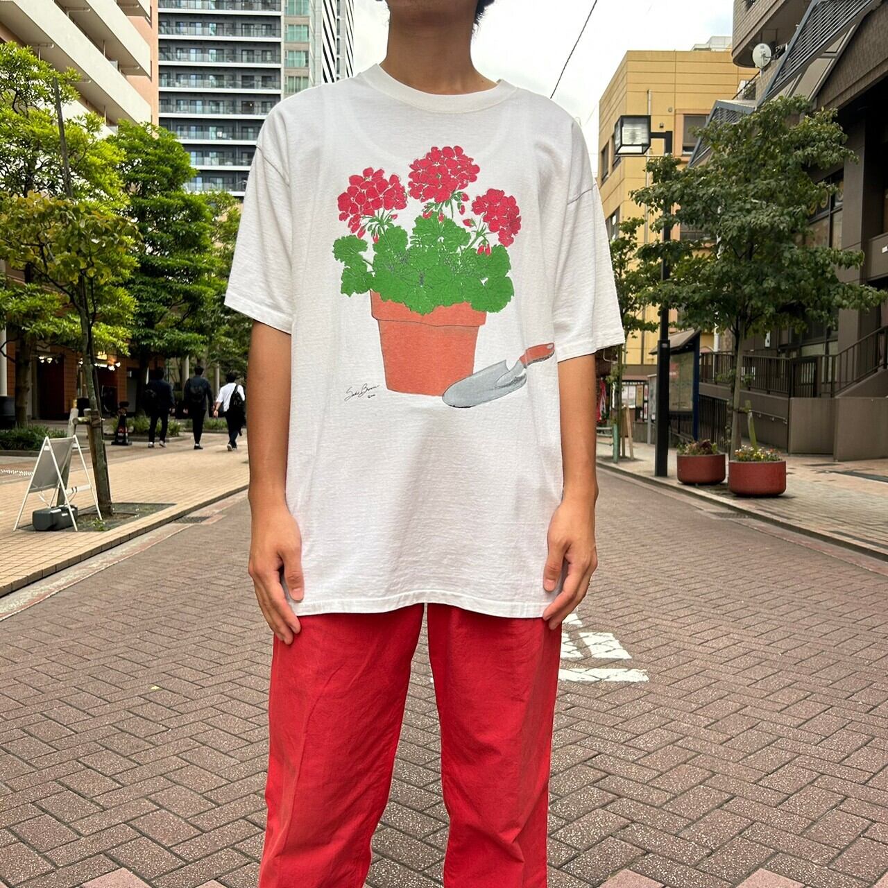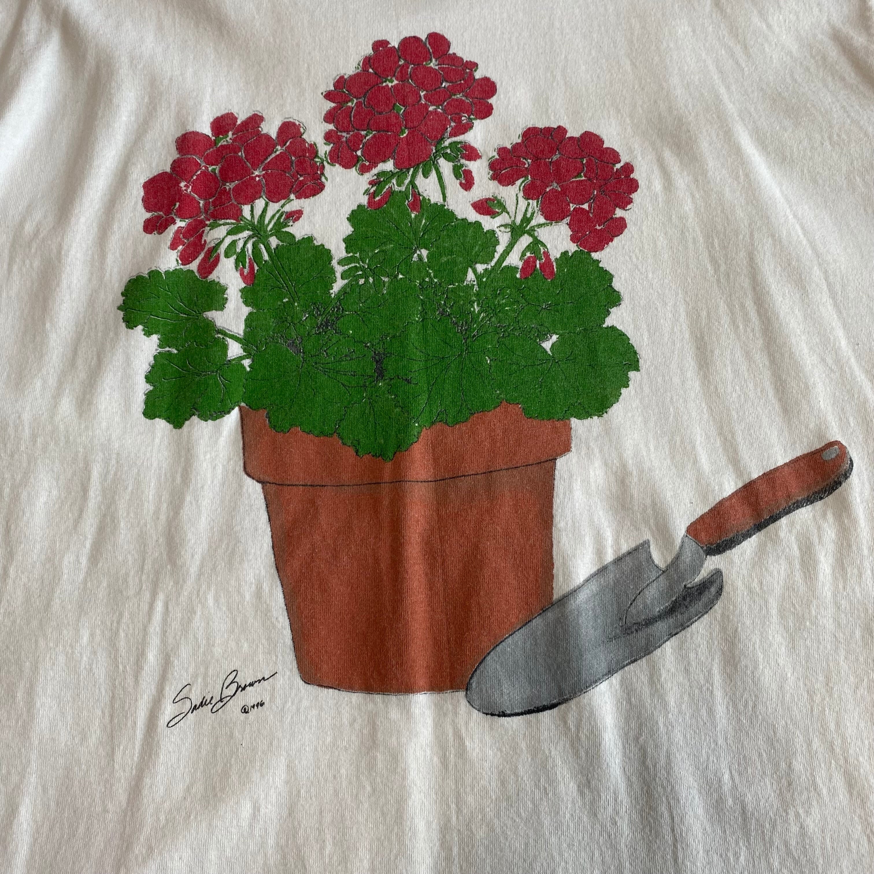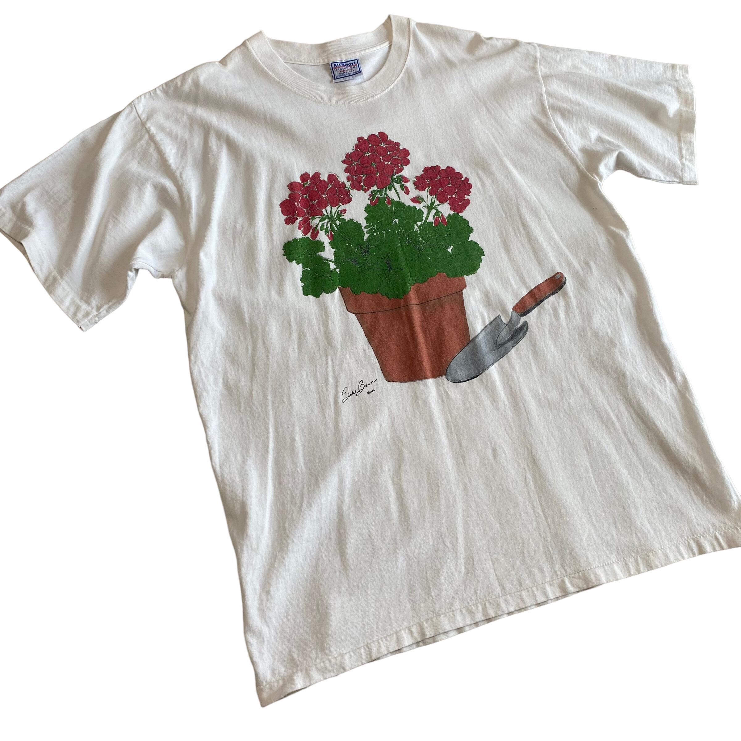 90's USA made / "potted flower" print t-shirt