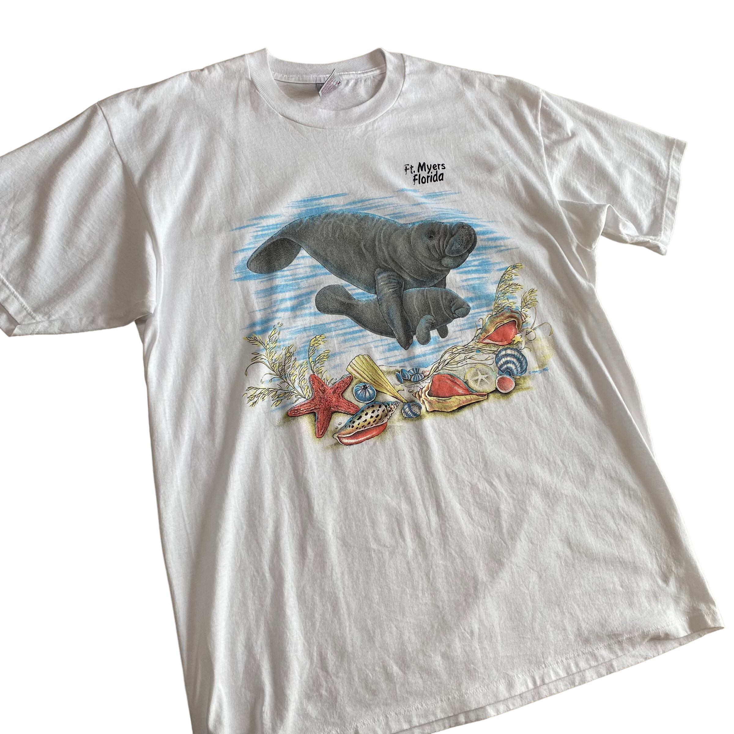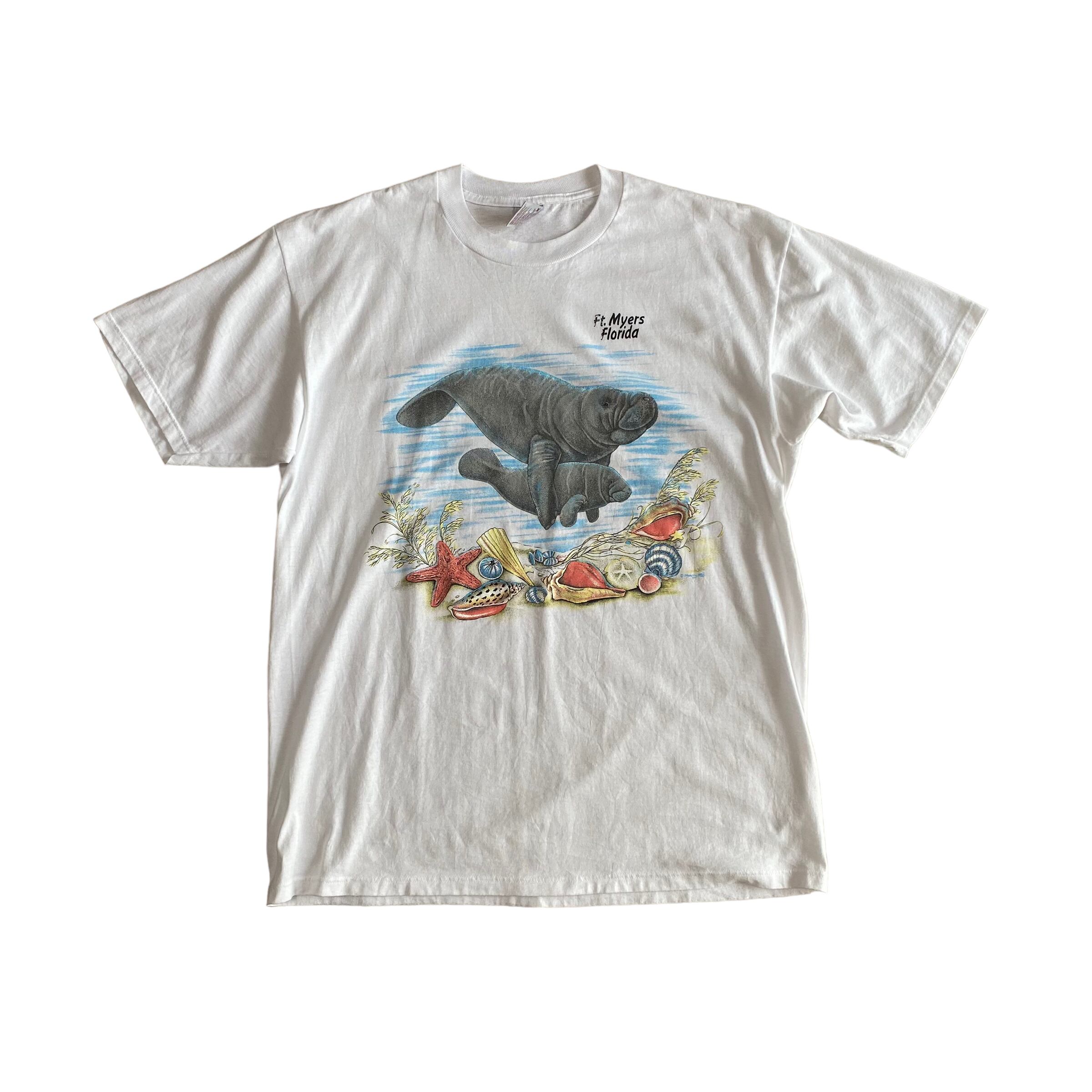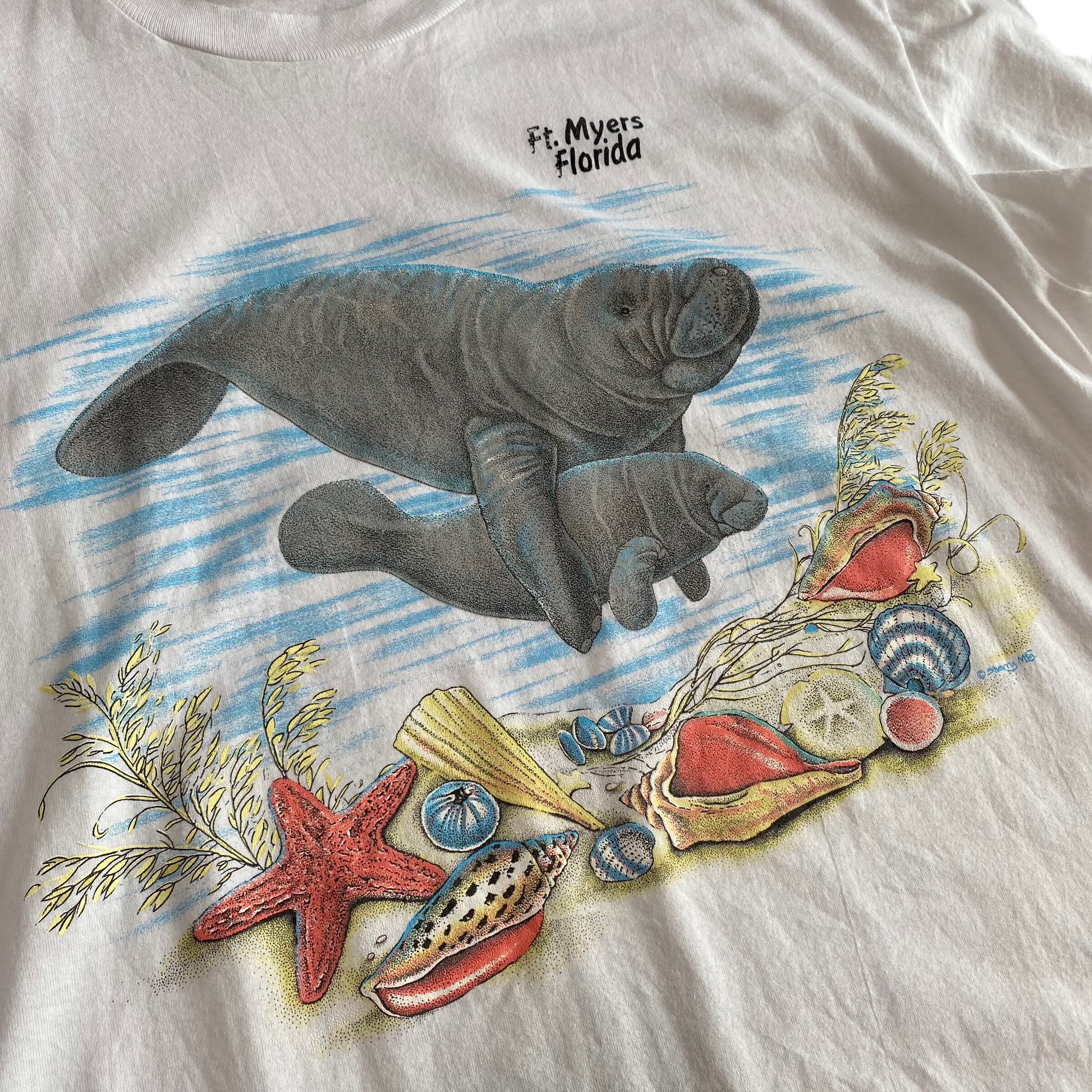 90's~ USA made / "manatee" print t-shirt