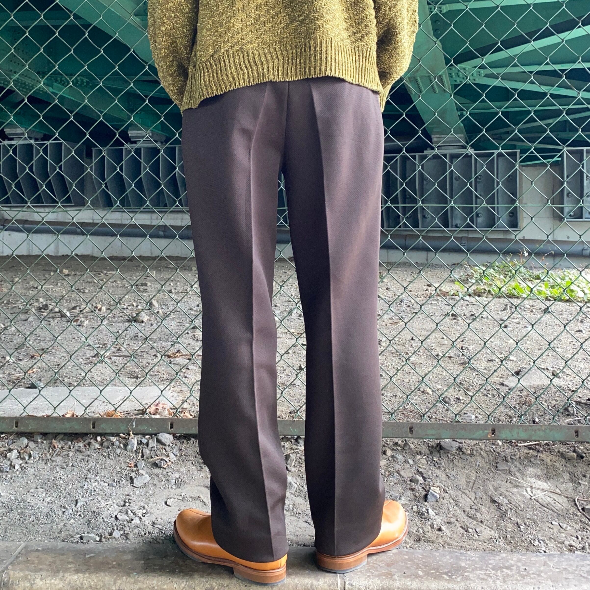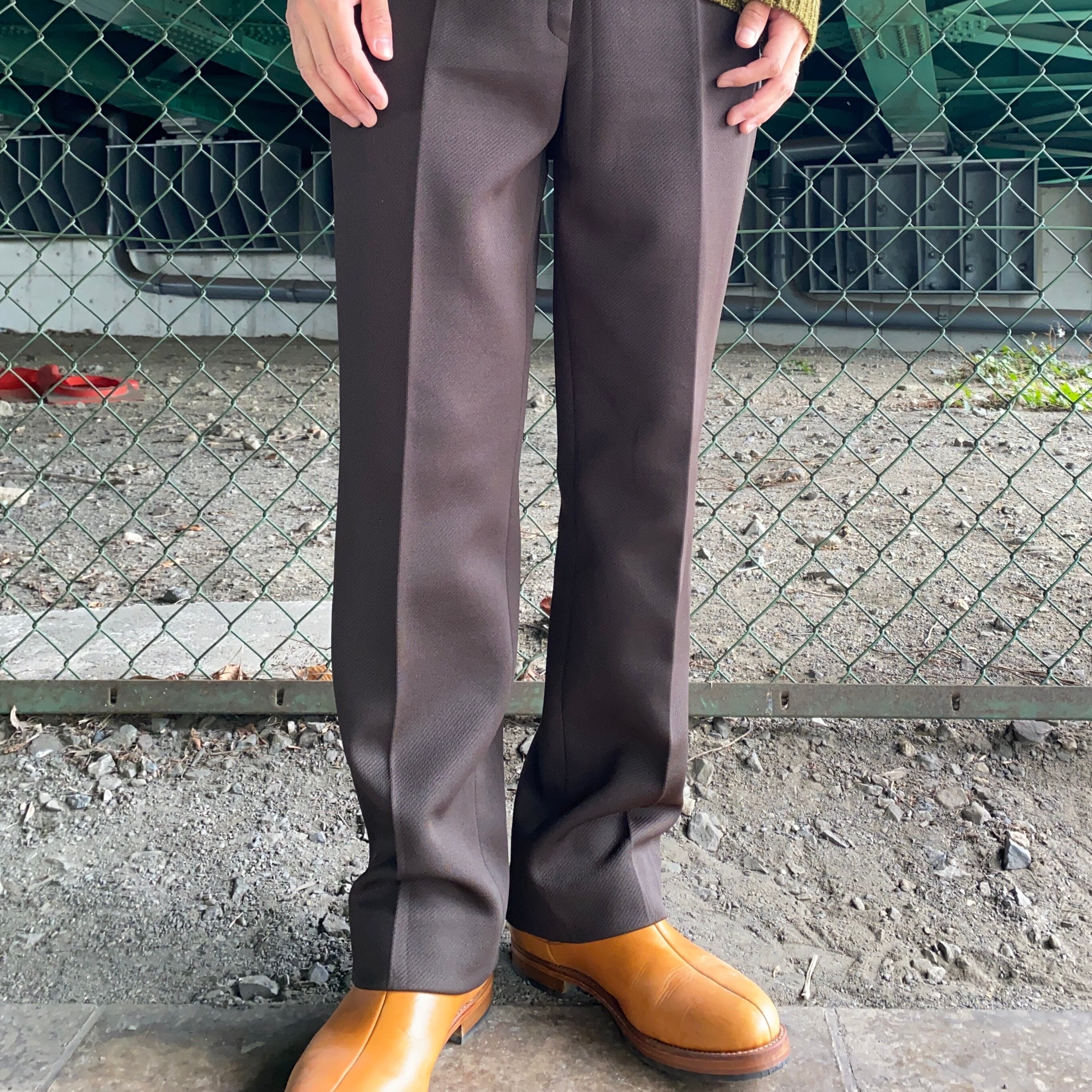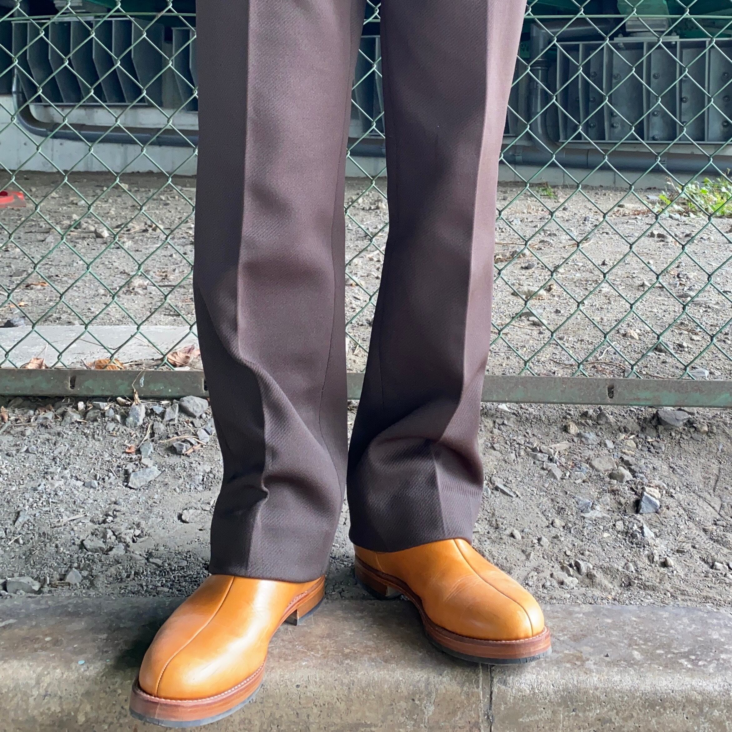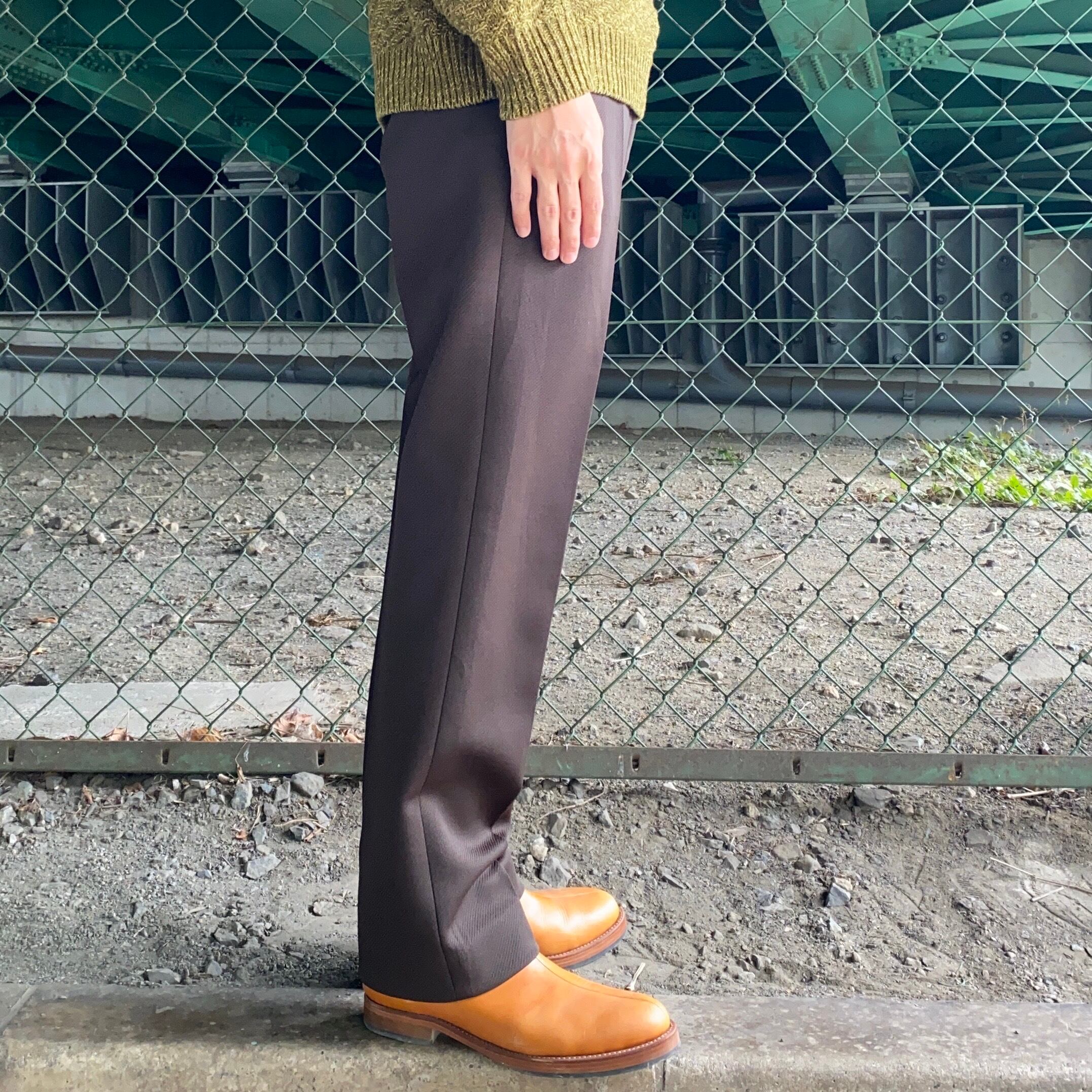 シルエットはセンタープレスが入った綺麗なストレート、イメージ的にフレアのしていないラングラーのランチャーパンツのような感じです。
