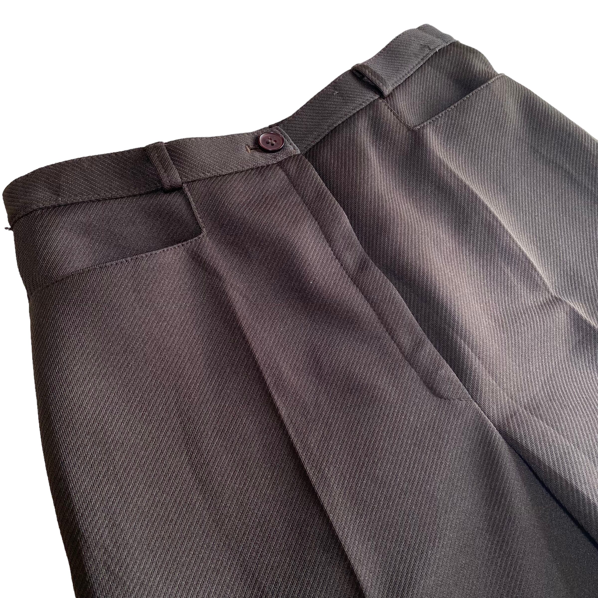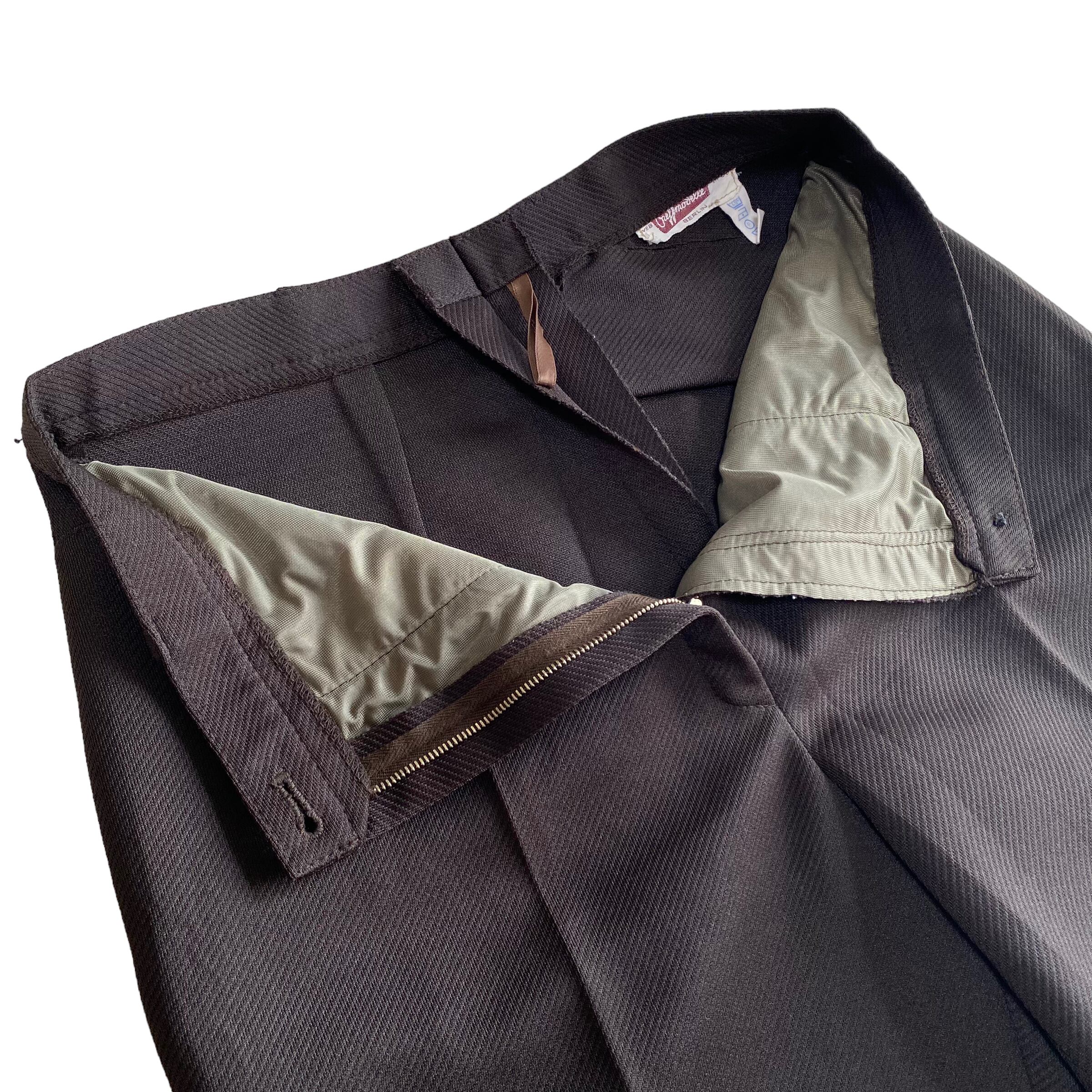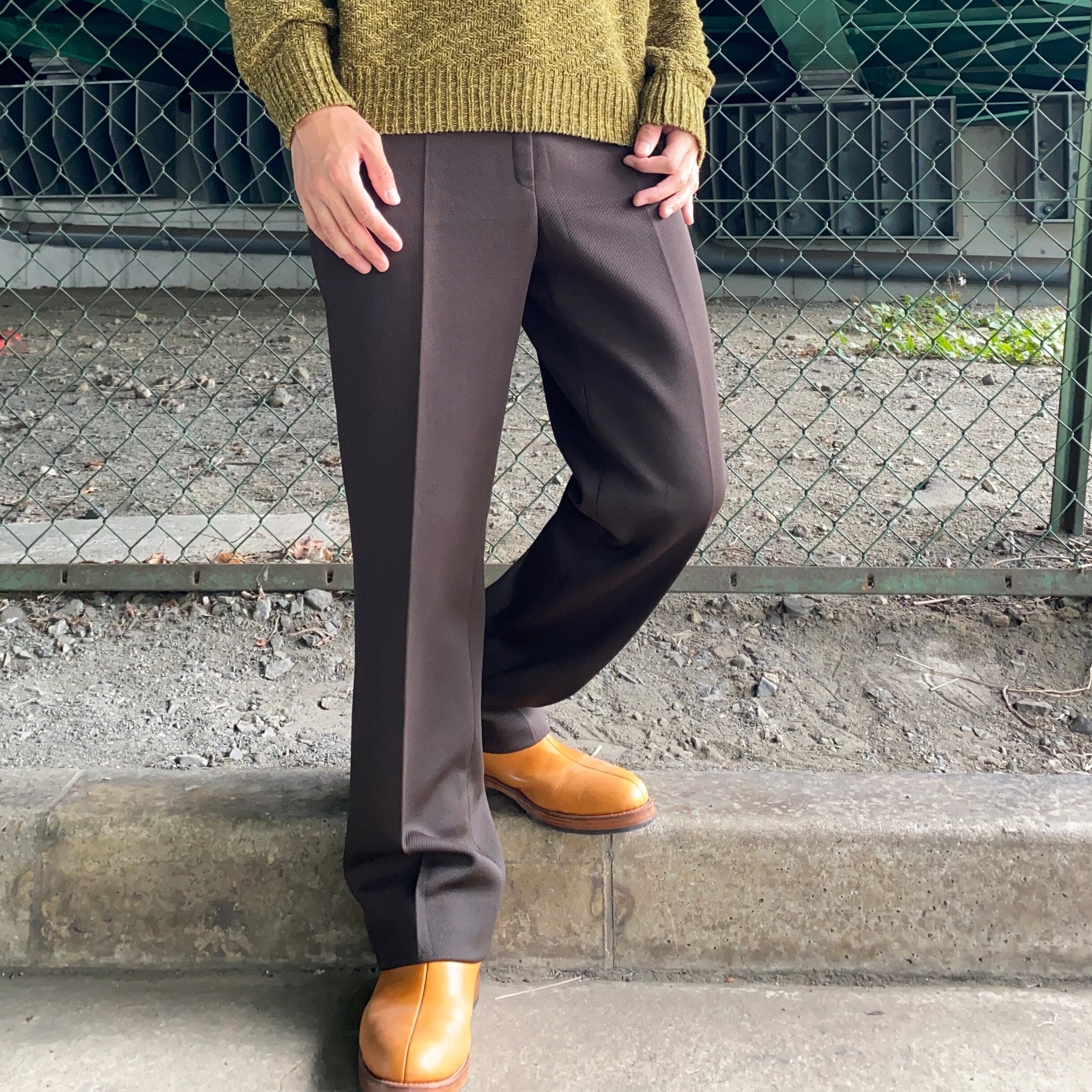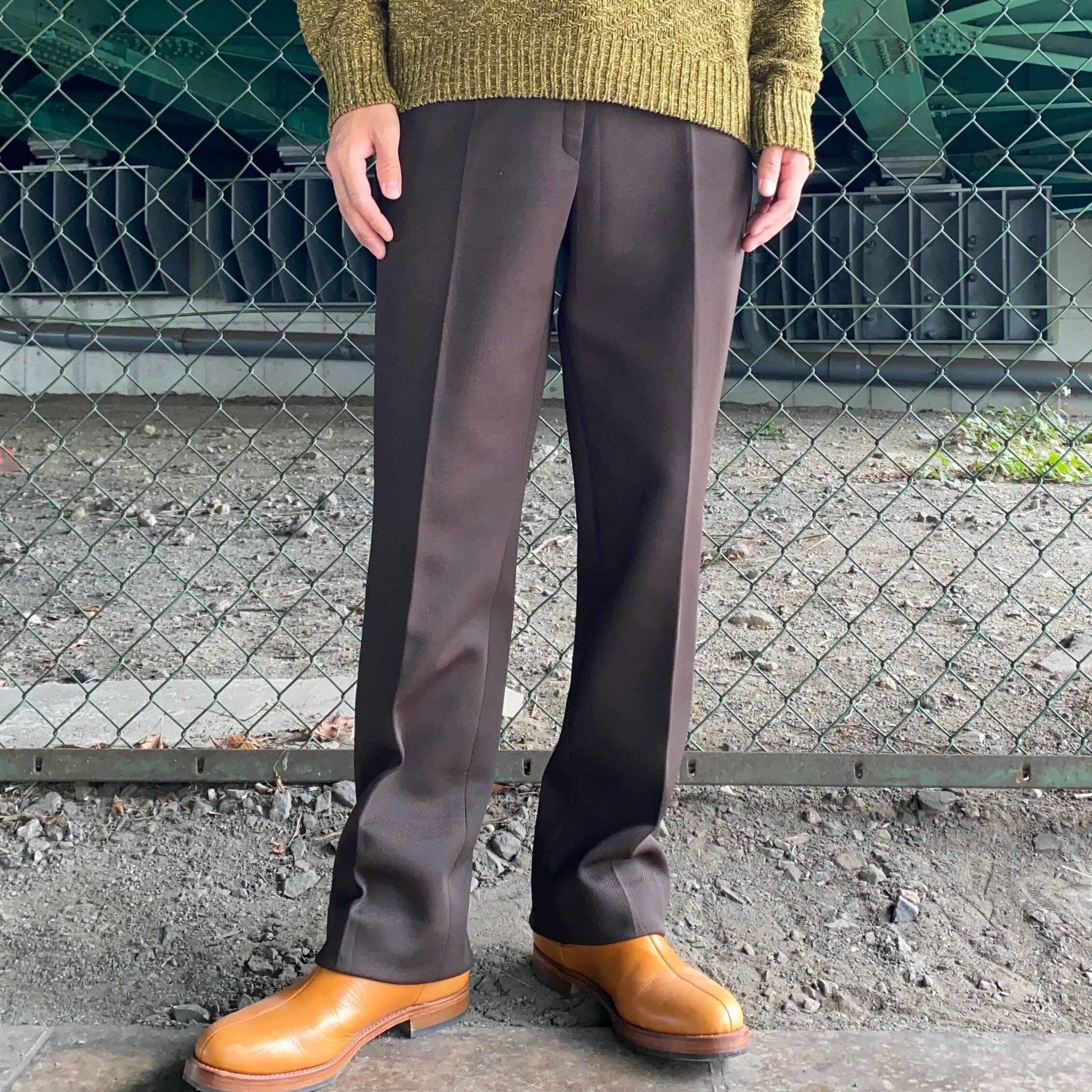 シルエットはセンタープレスが入った綺麗なストレート、イメージ的にフレアのしていないラングラーのランチャーパンツのような感じです。