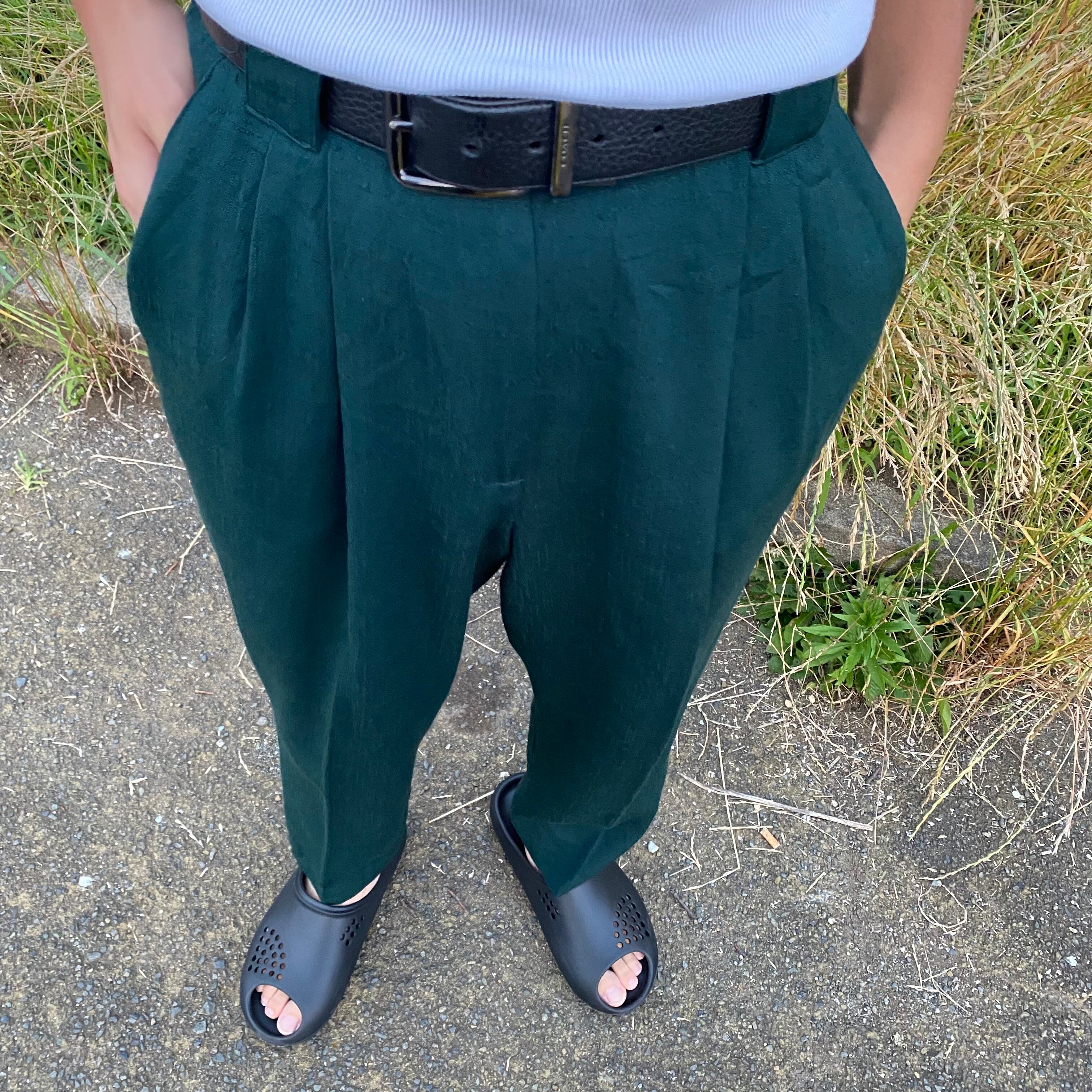 良質なカジュアルウェアを多数輩出しているアメリカのブランド「SAG HARBOR」からダークグリーンのスラックス。