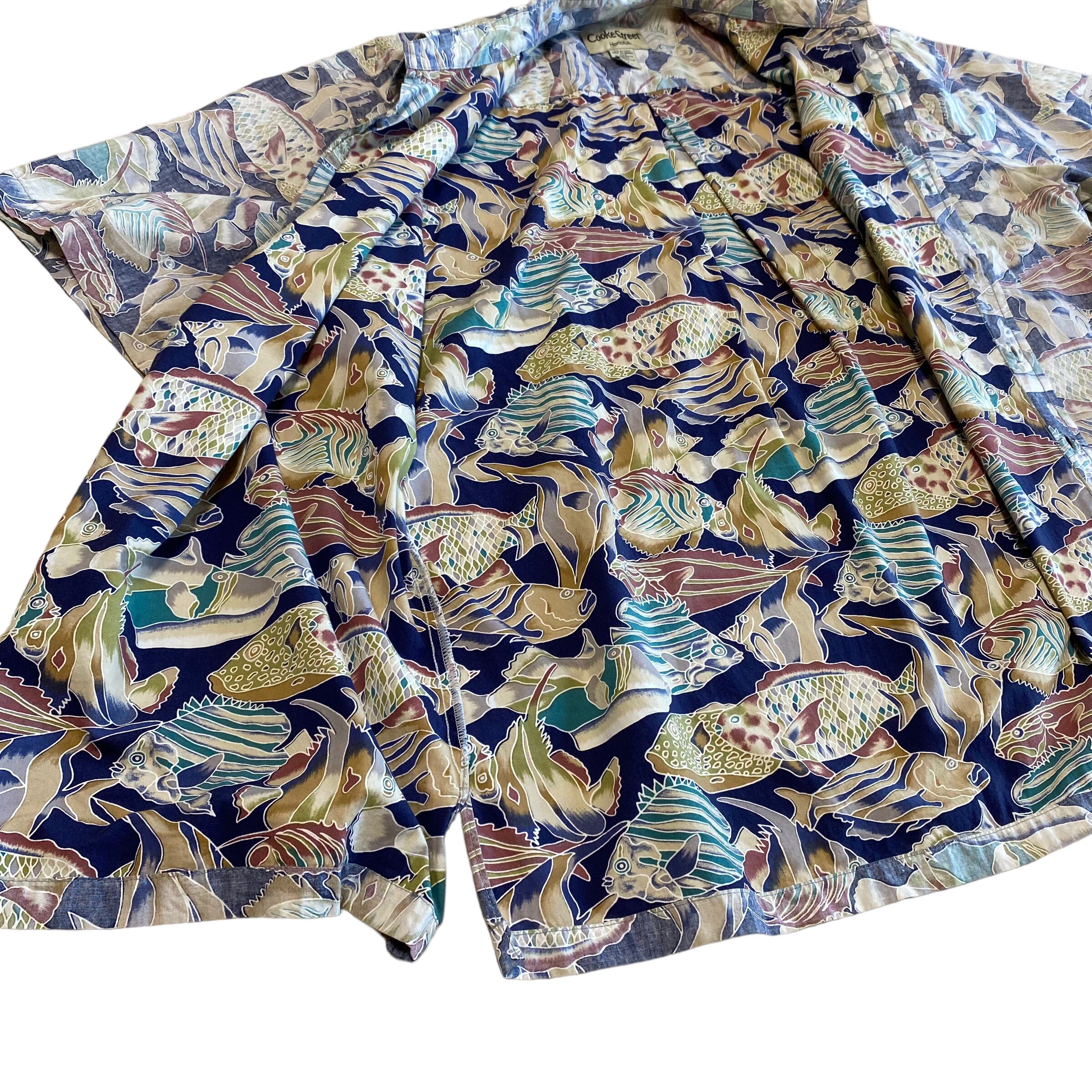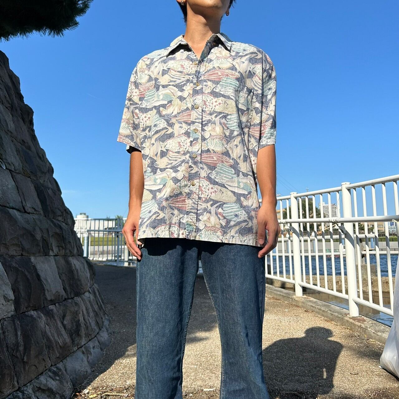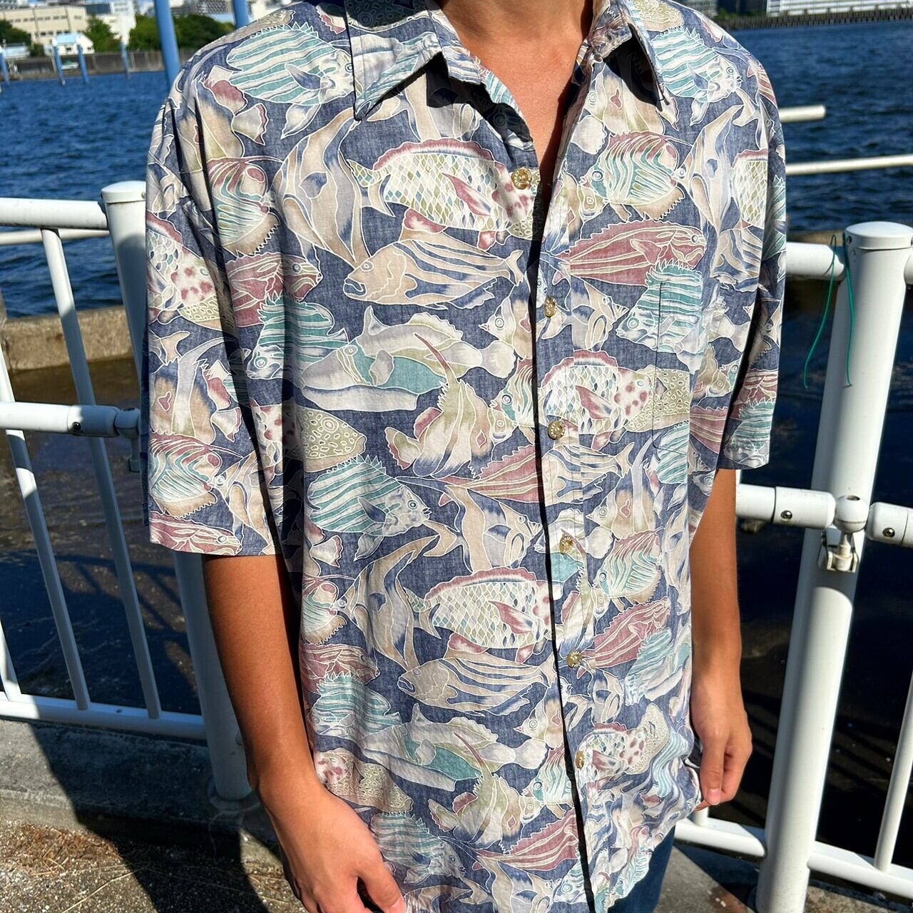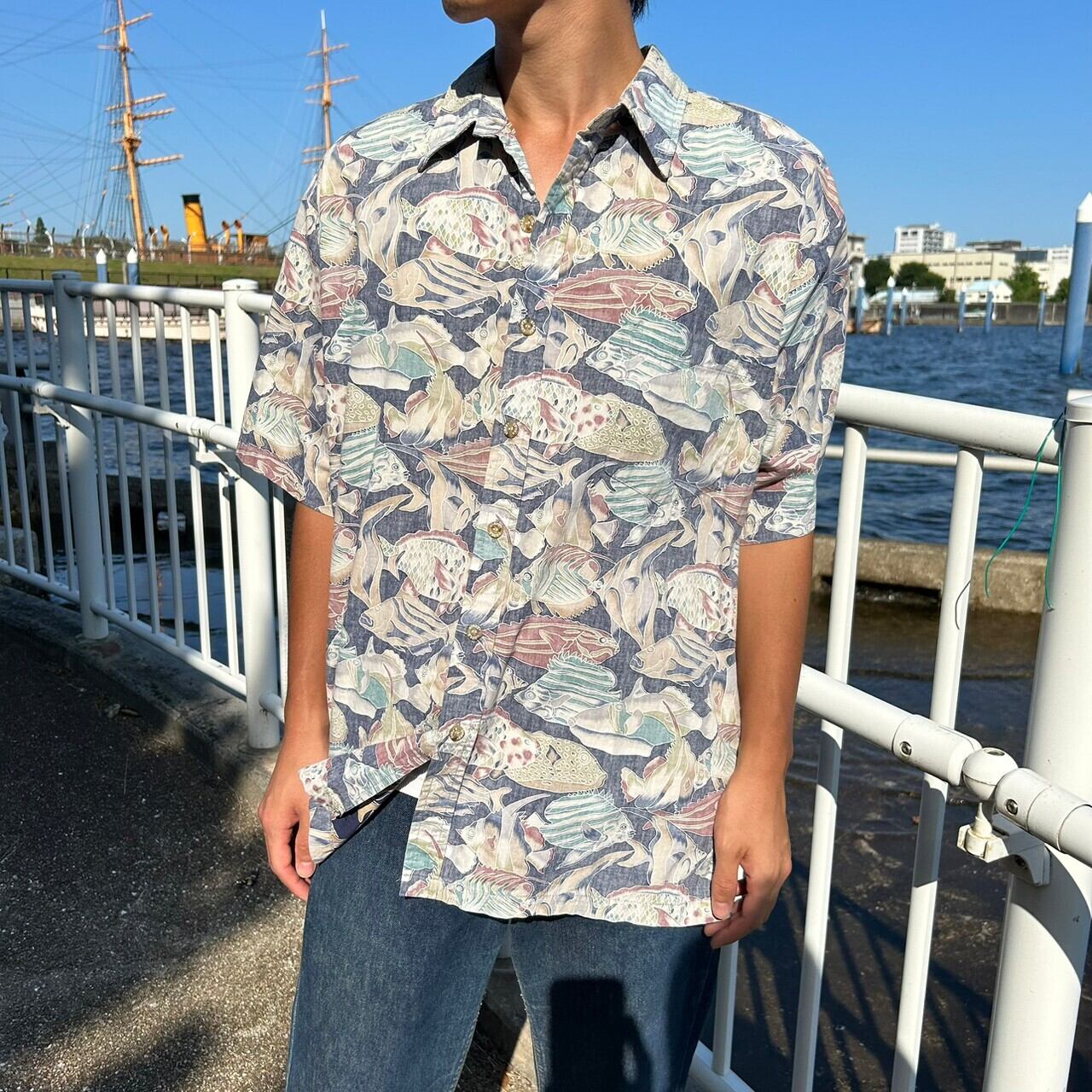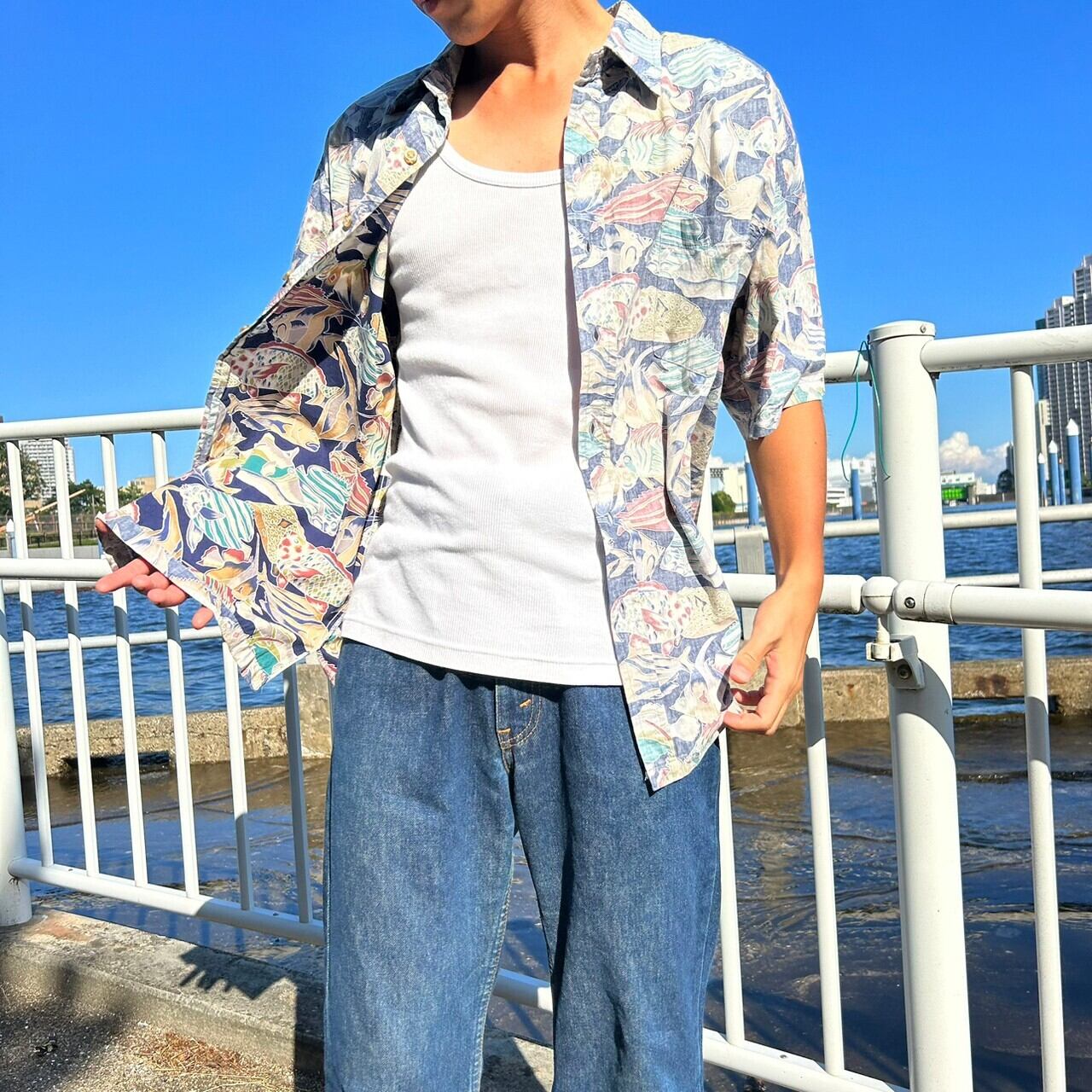 飛ばしたデザインに思われるかもしれませんが、全体的に色味が落ち着いているので、いわゆるアロハシャツ感が少ない、ブランドの特徴通りのデイリーユースとしてフィットしやすい1着です。