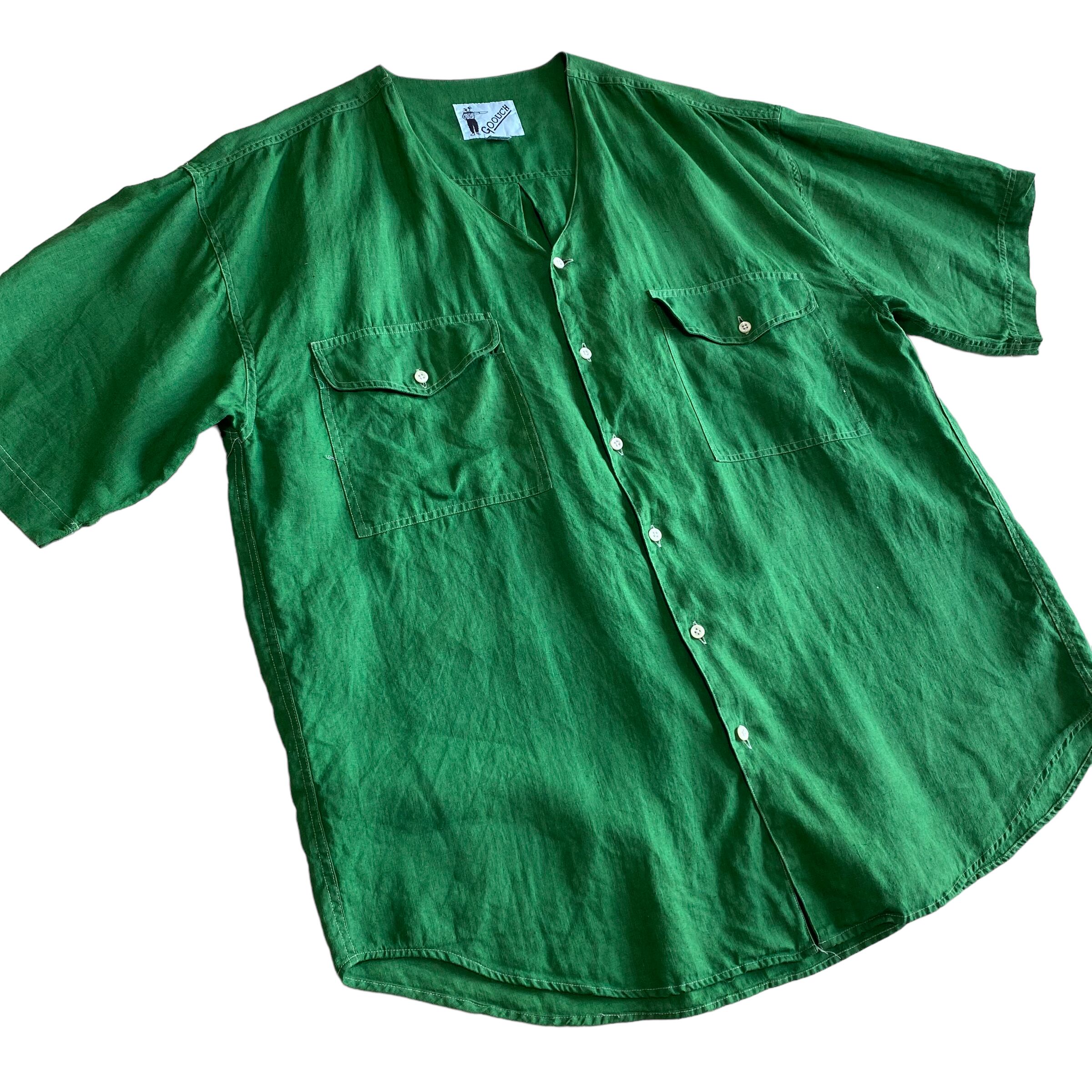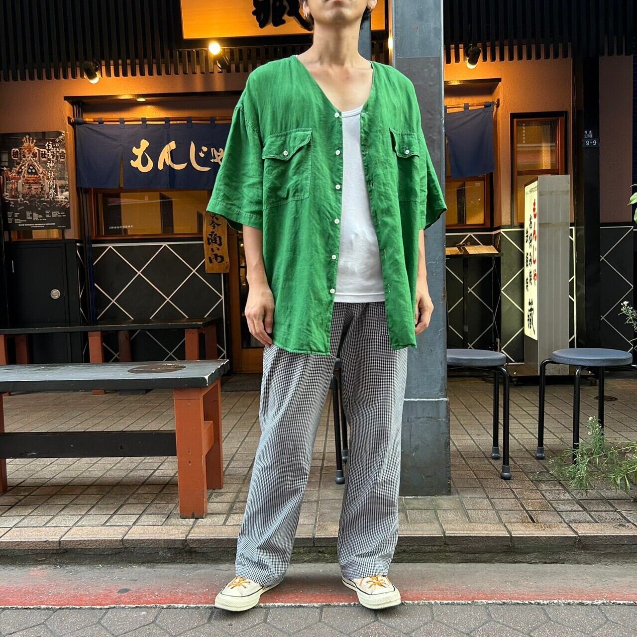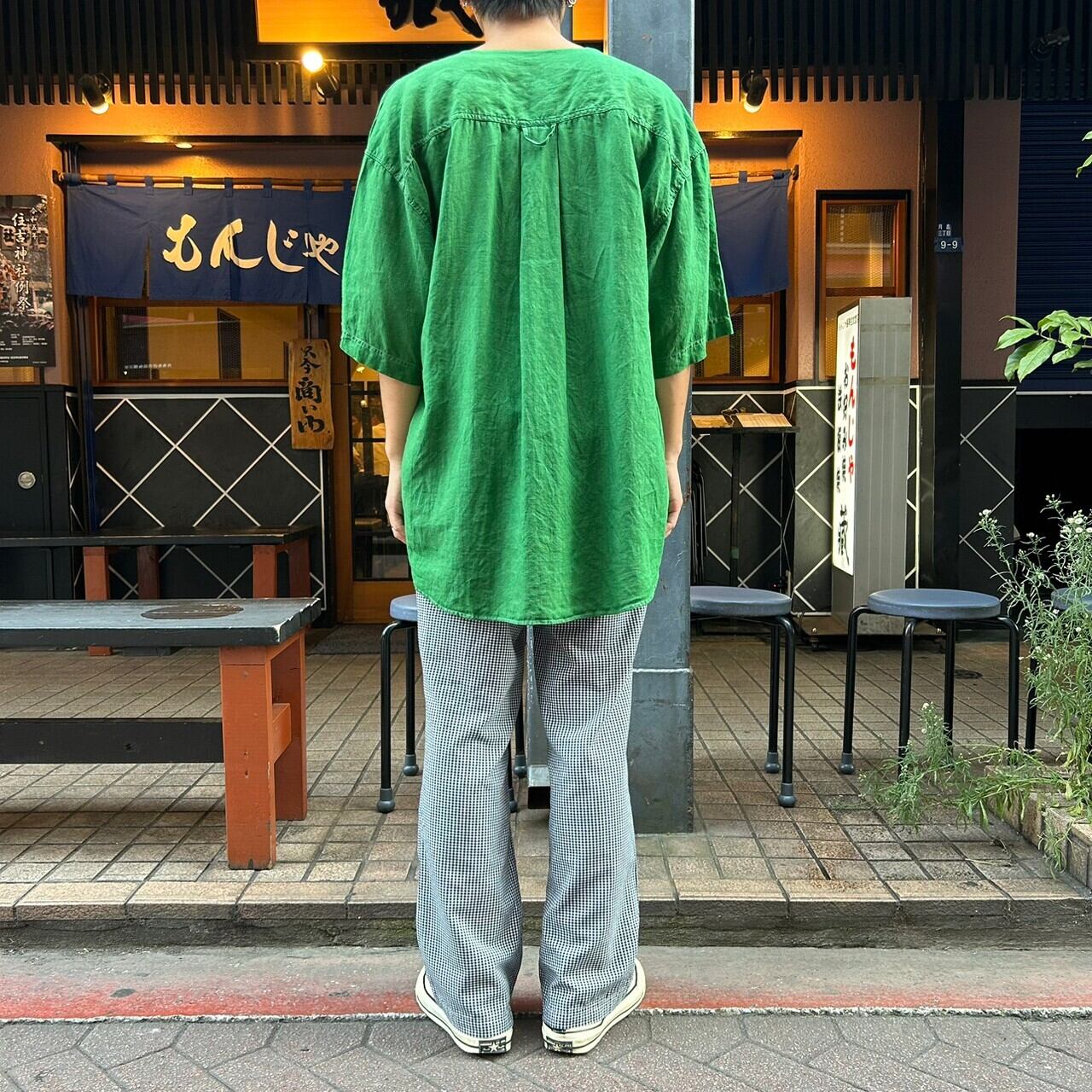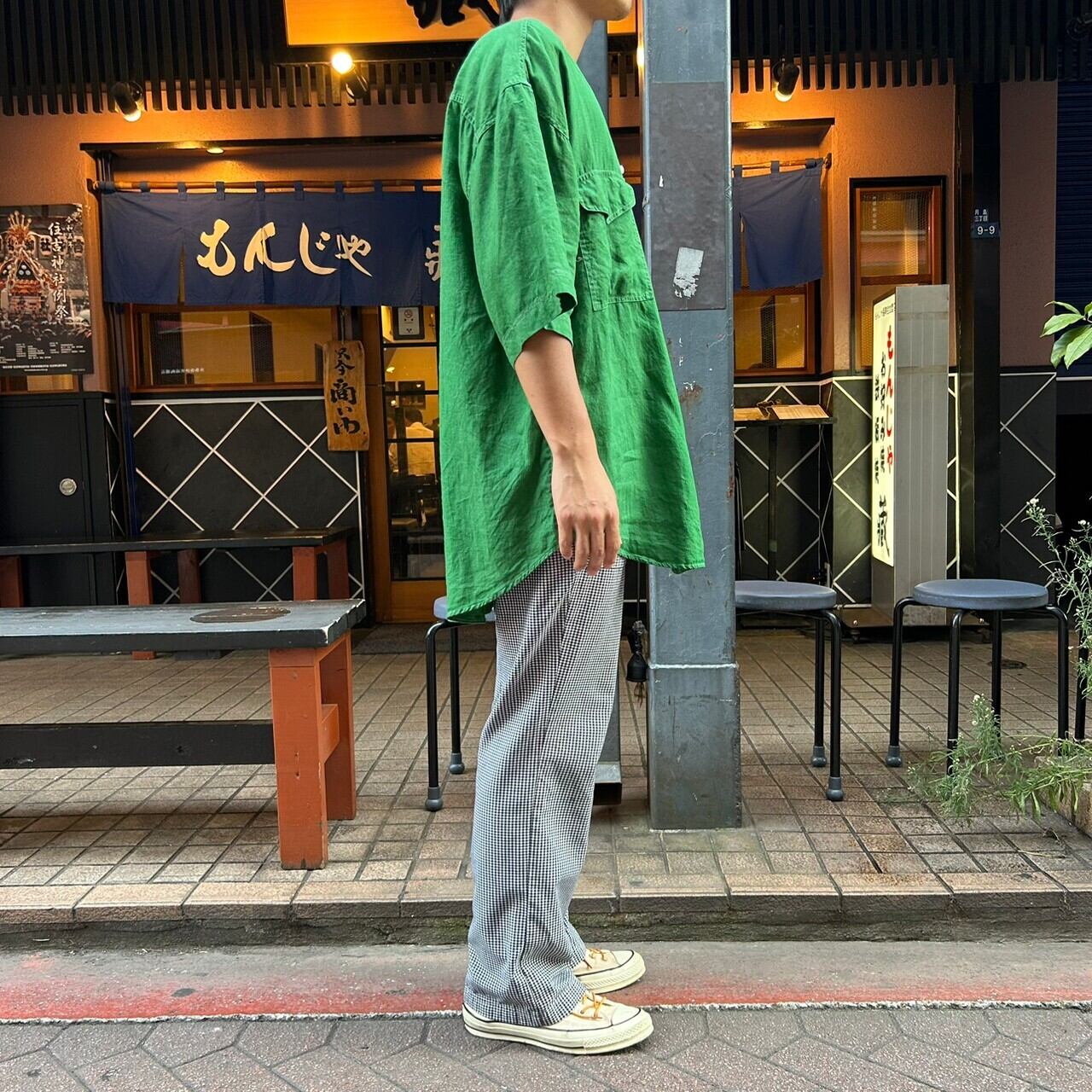 フォトグラファー出身ということもあり、洗練されたグラフィックを落とし込んだ柄シャツが多いですが、こちらは発色の良いグリーン一色のシャツです。