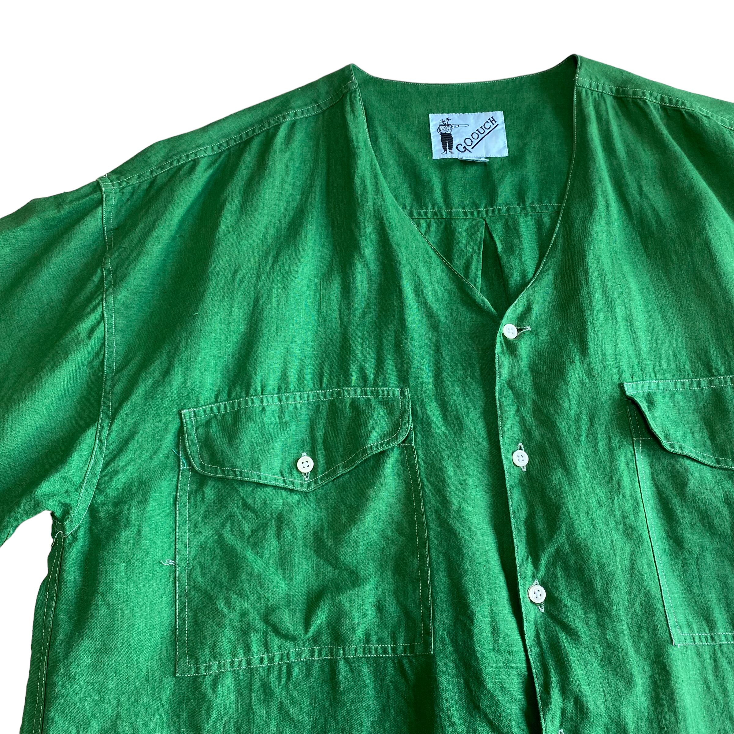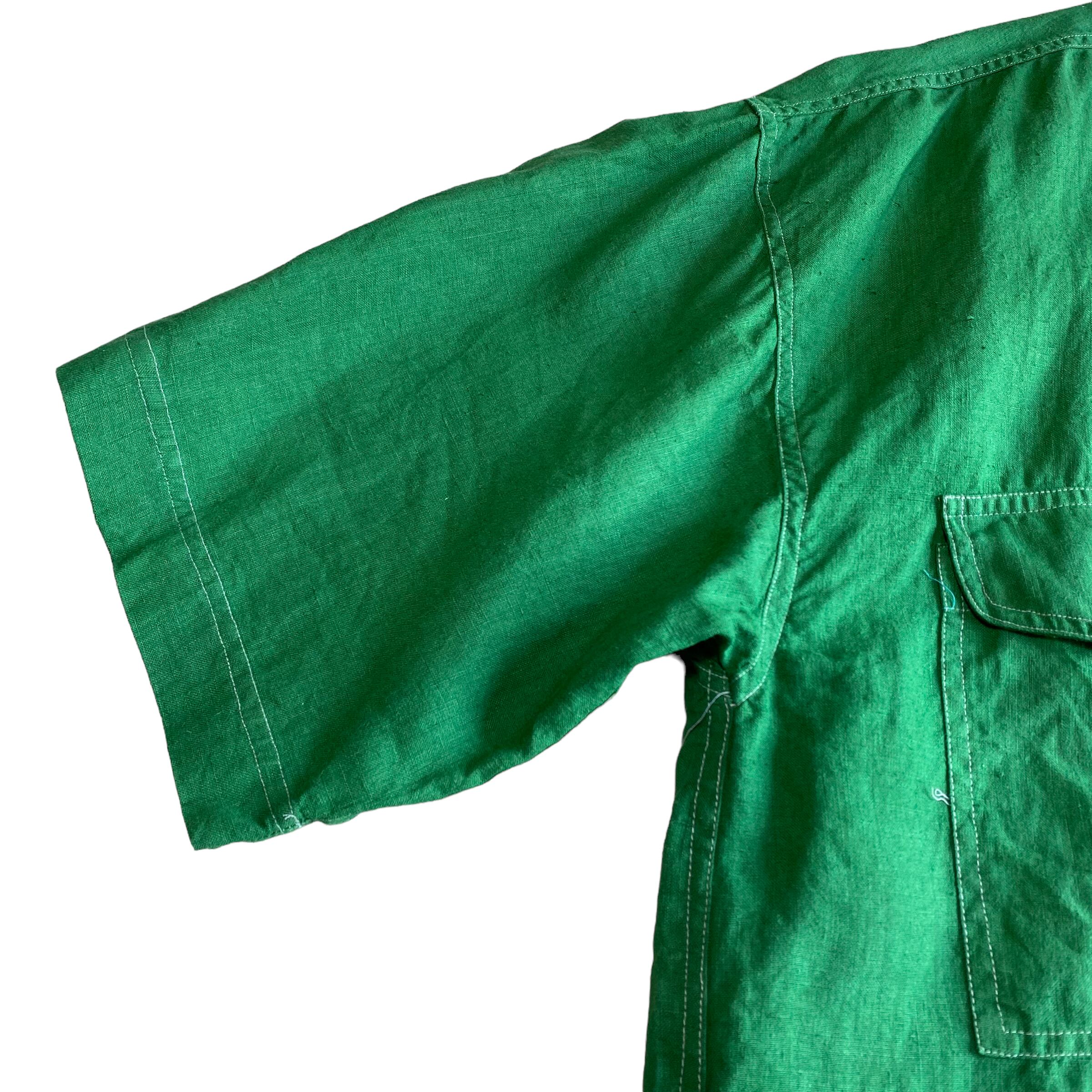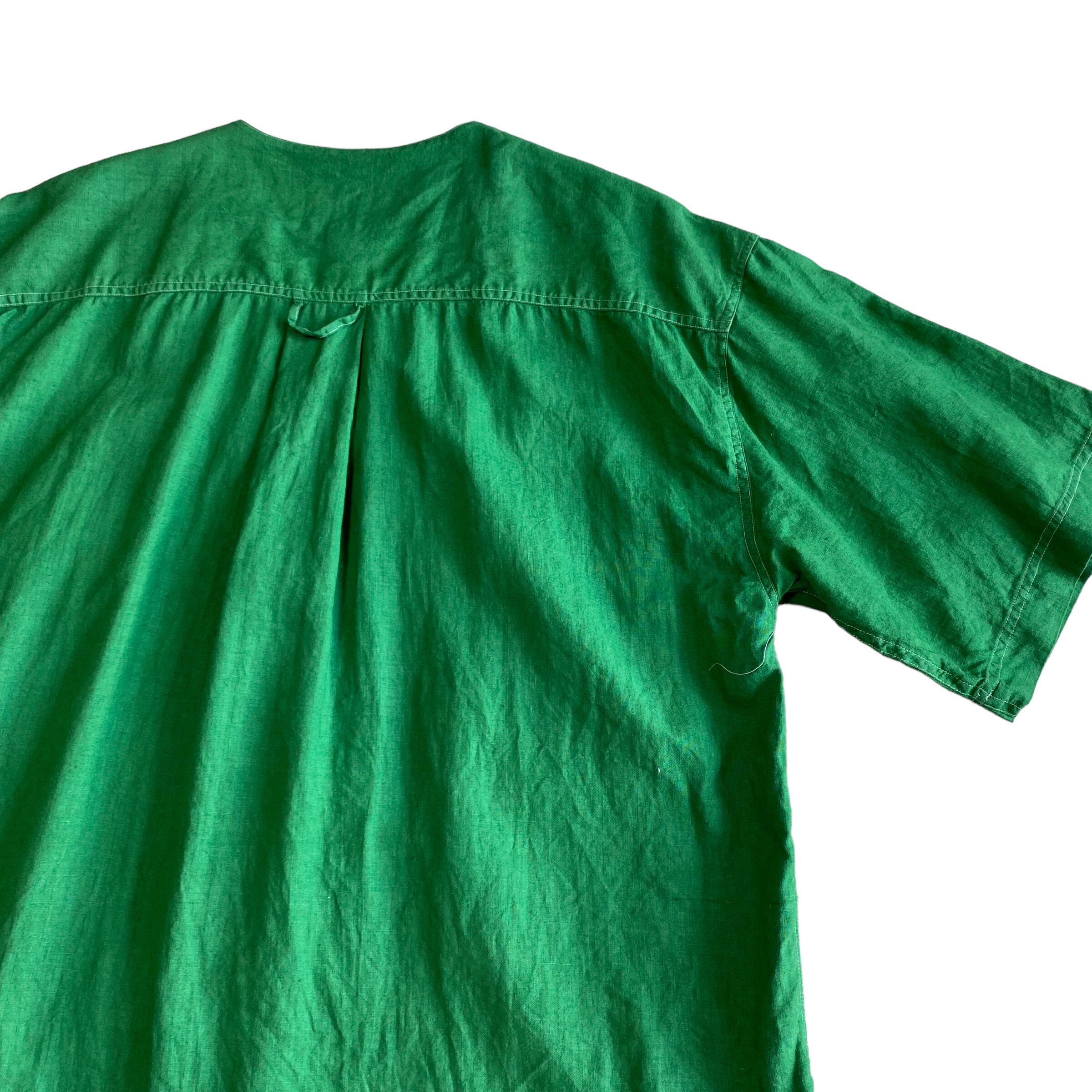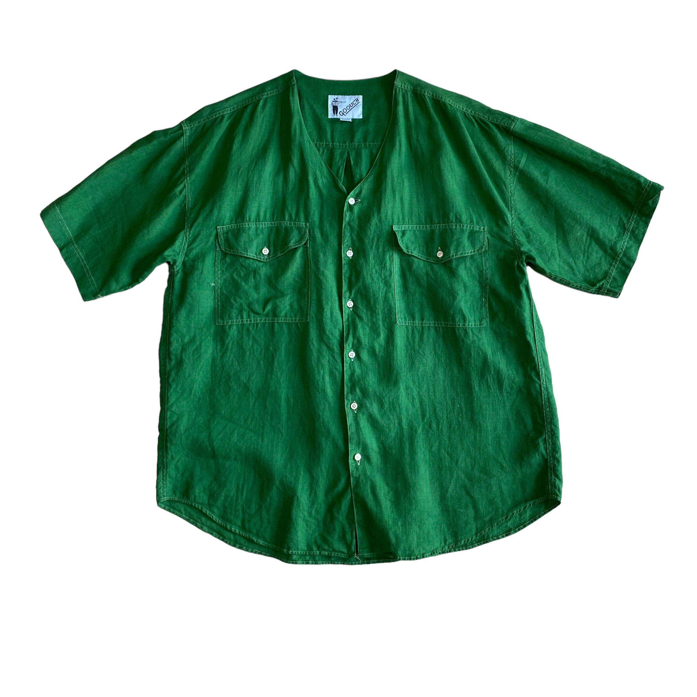 フォトグラファー出身ということもあり、洗練されたグラフィックを落とし込んだ柄シャツが多いですが、こちらは発色の良いグリーン一色のシャツです。