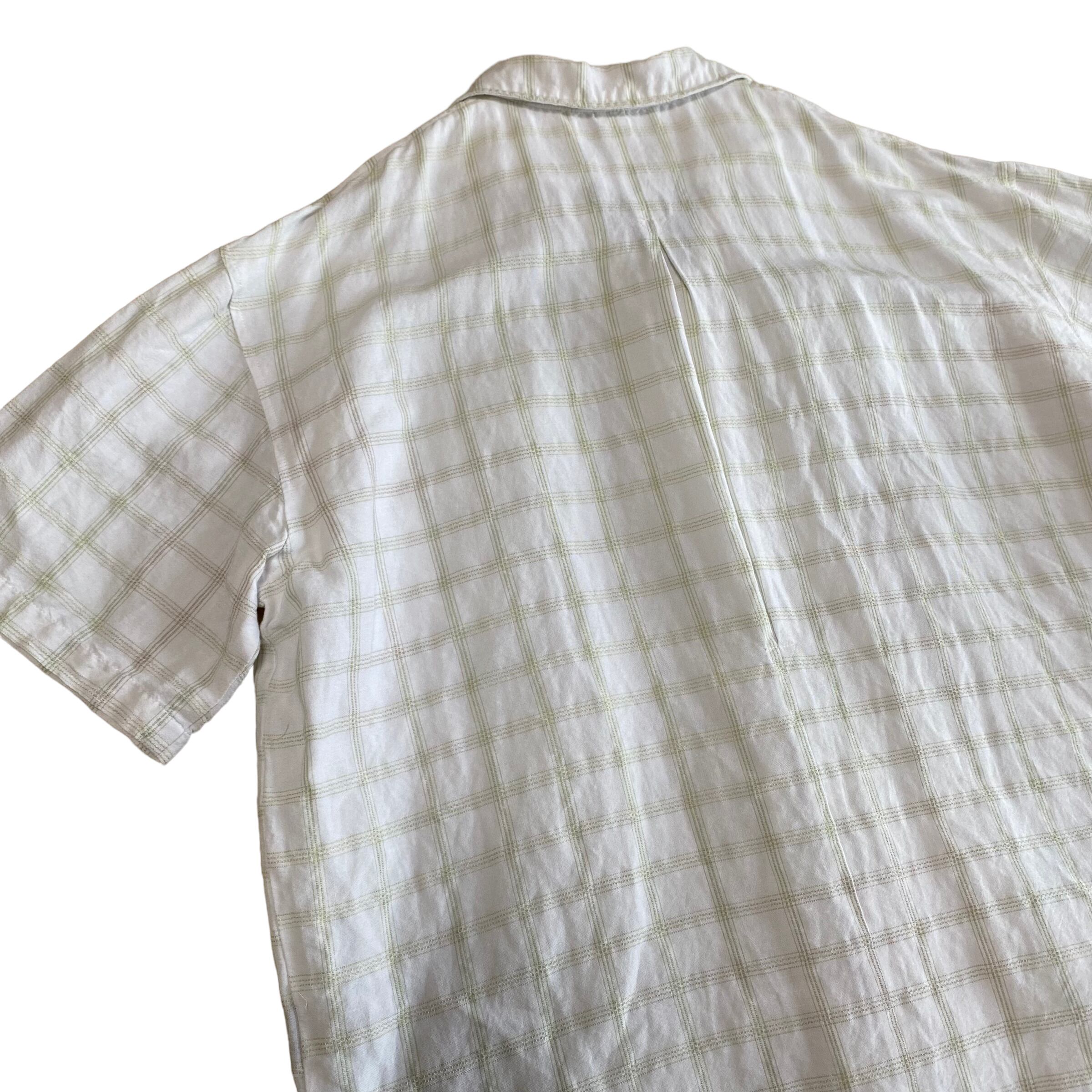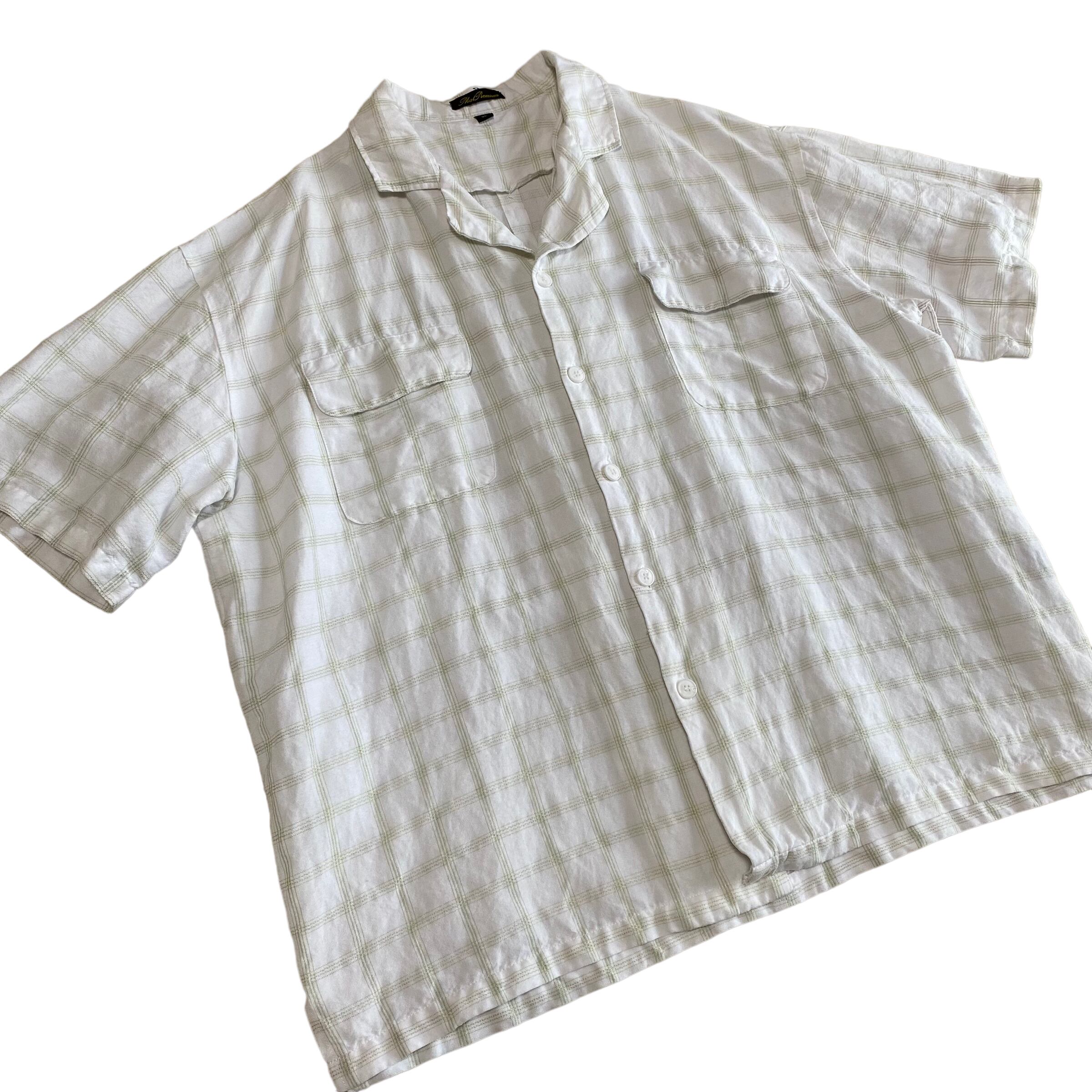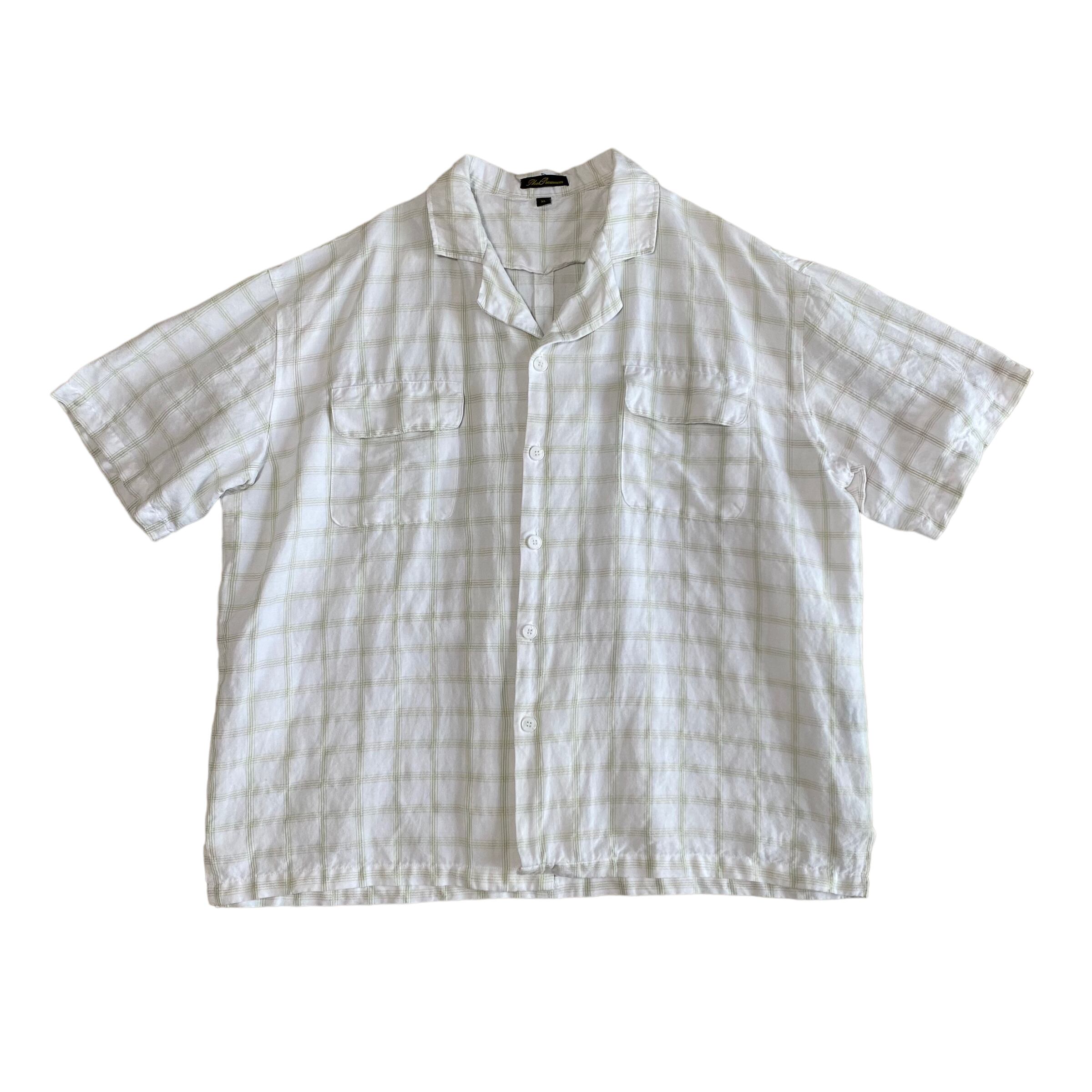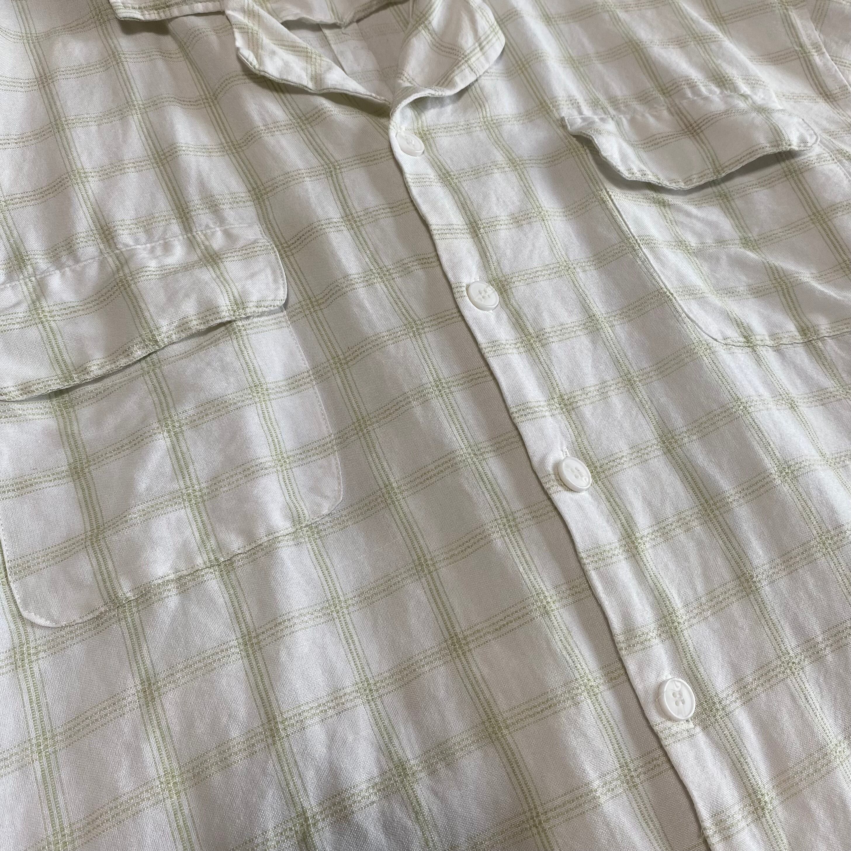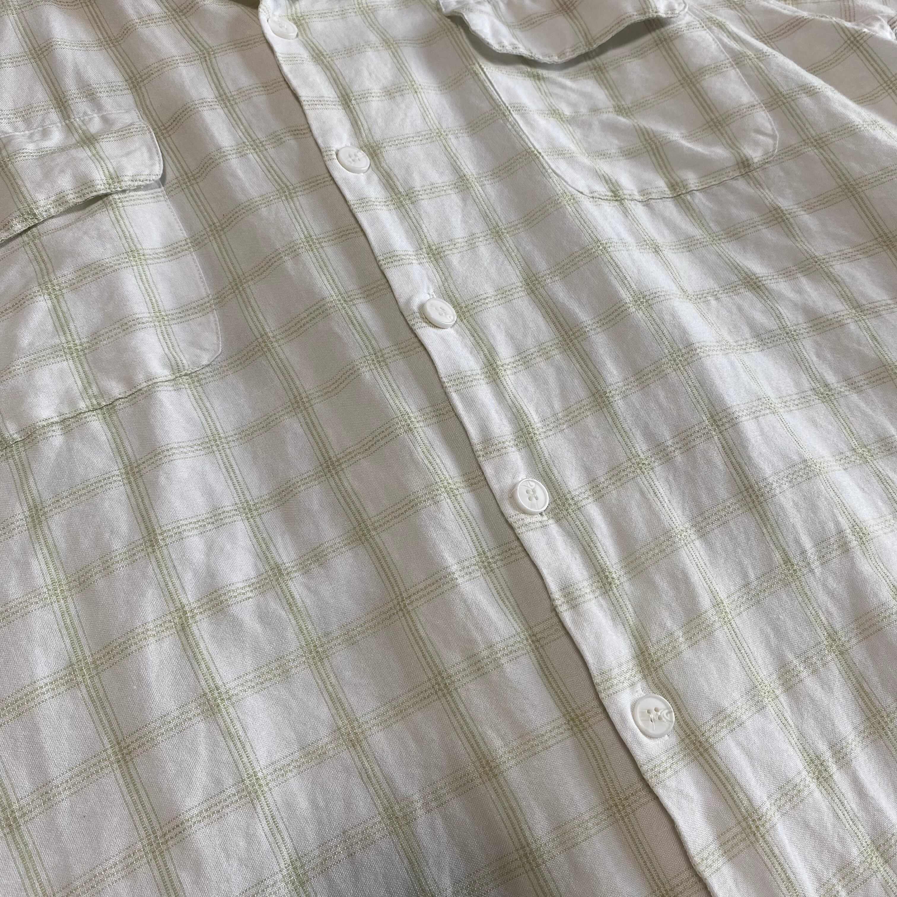この、ベージュカラーのうっすらとしたチェックパターンもとても良く、白無地のテンションで着たい方にもオススメです。