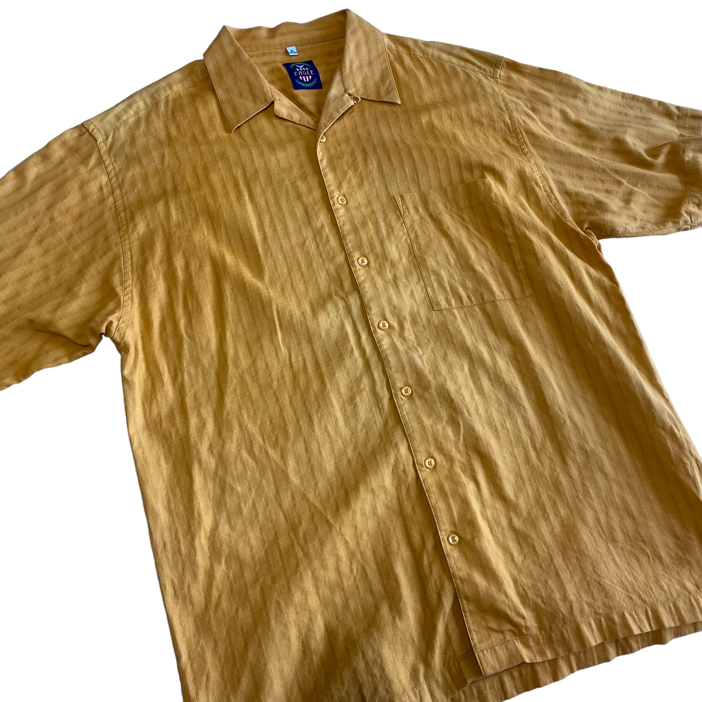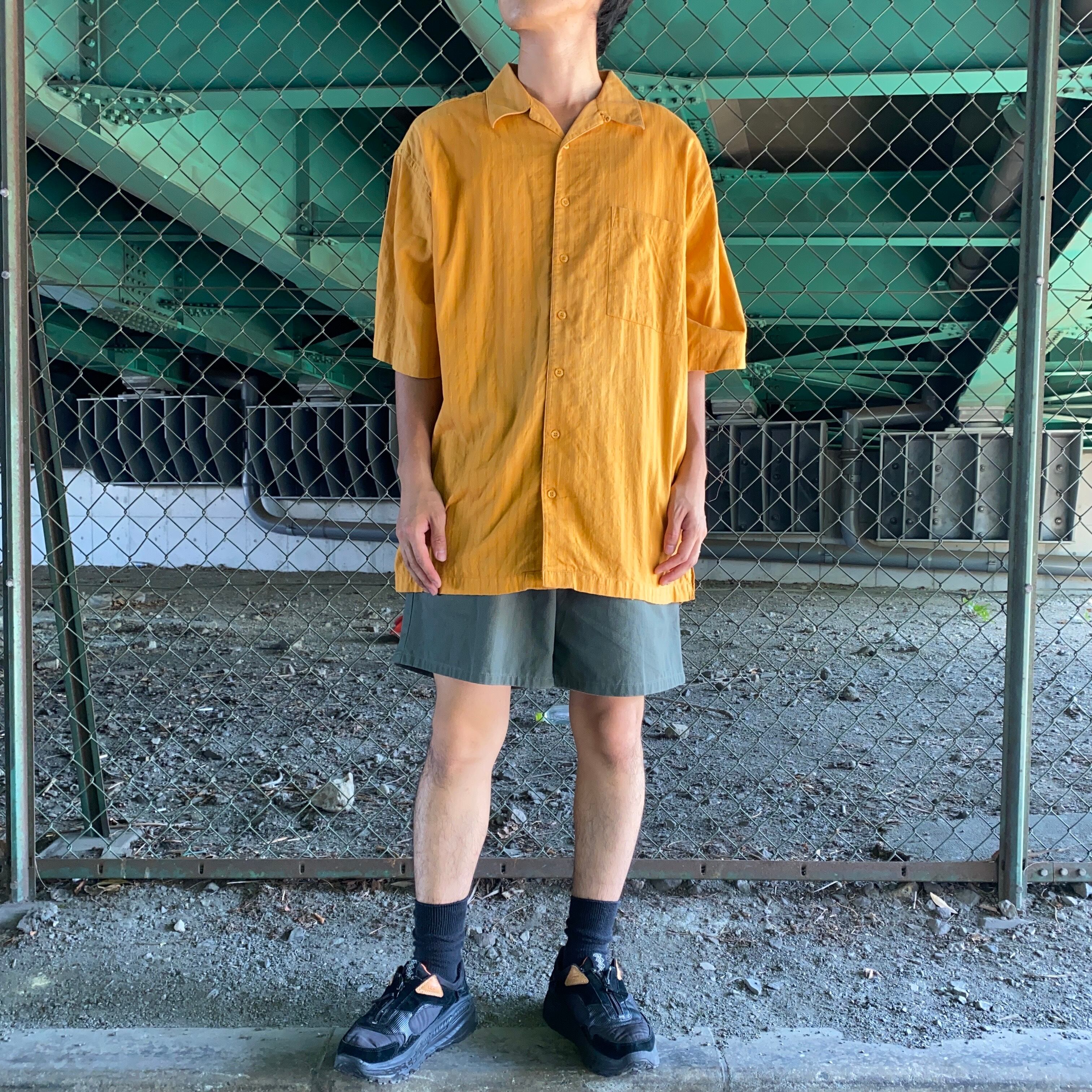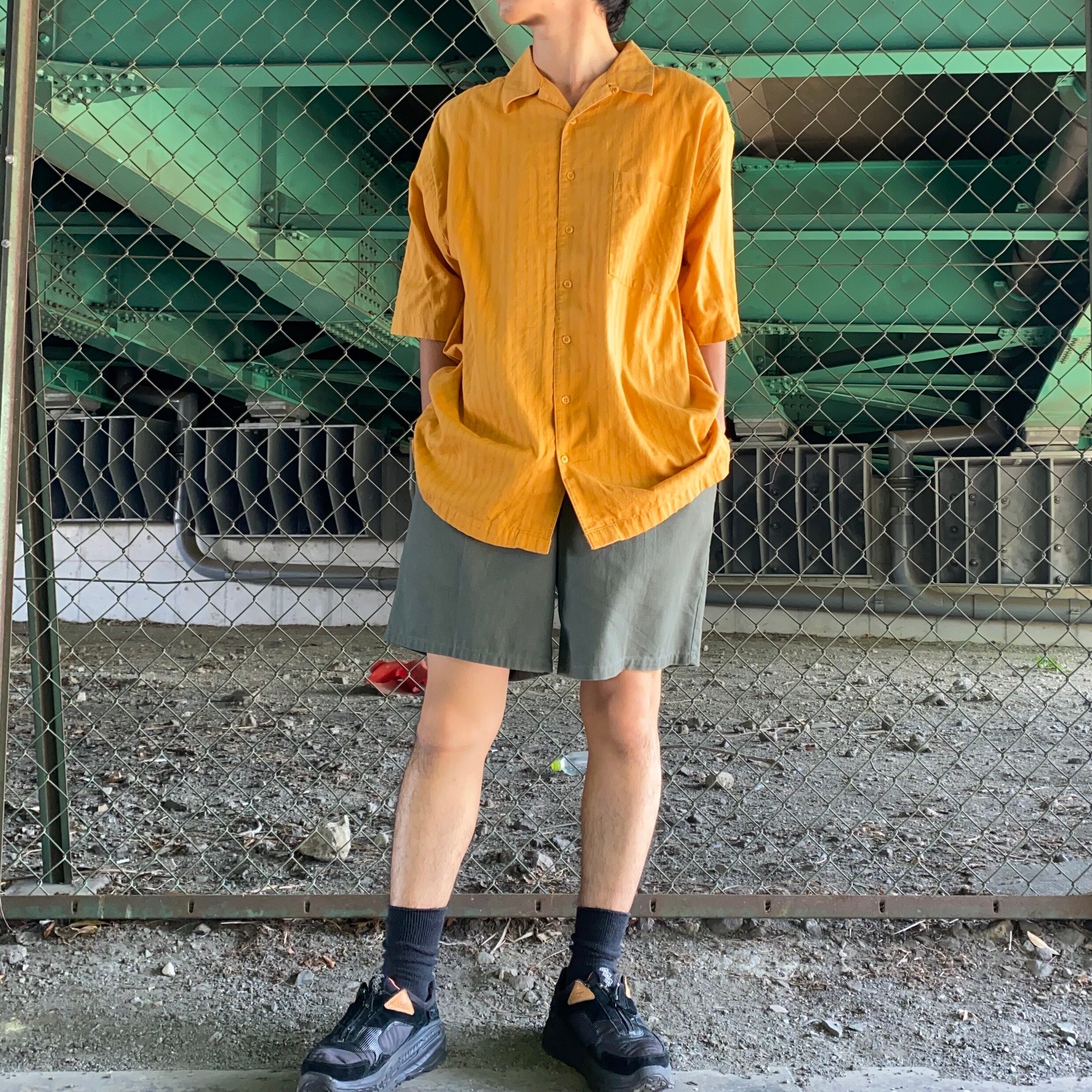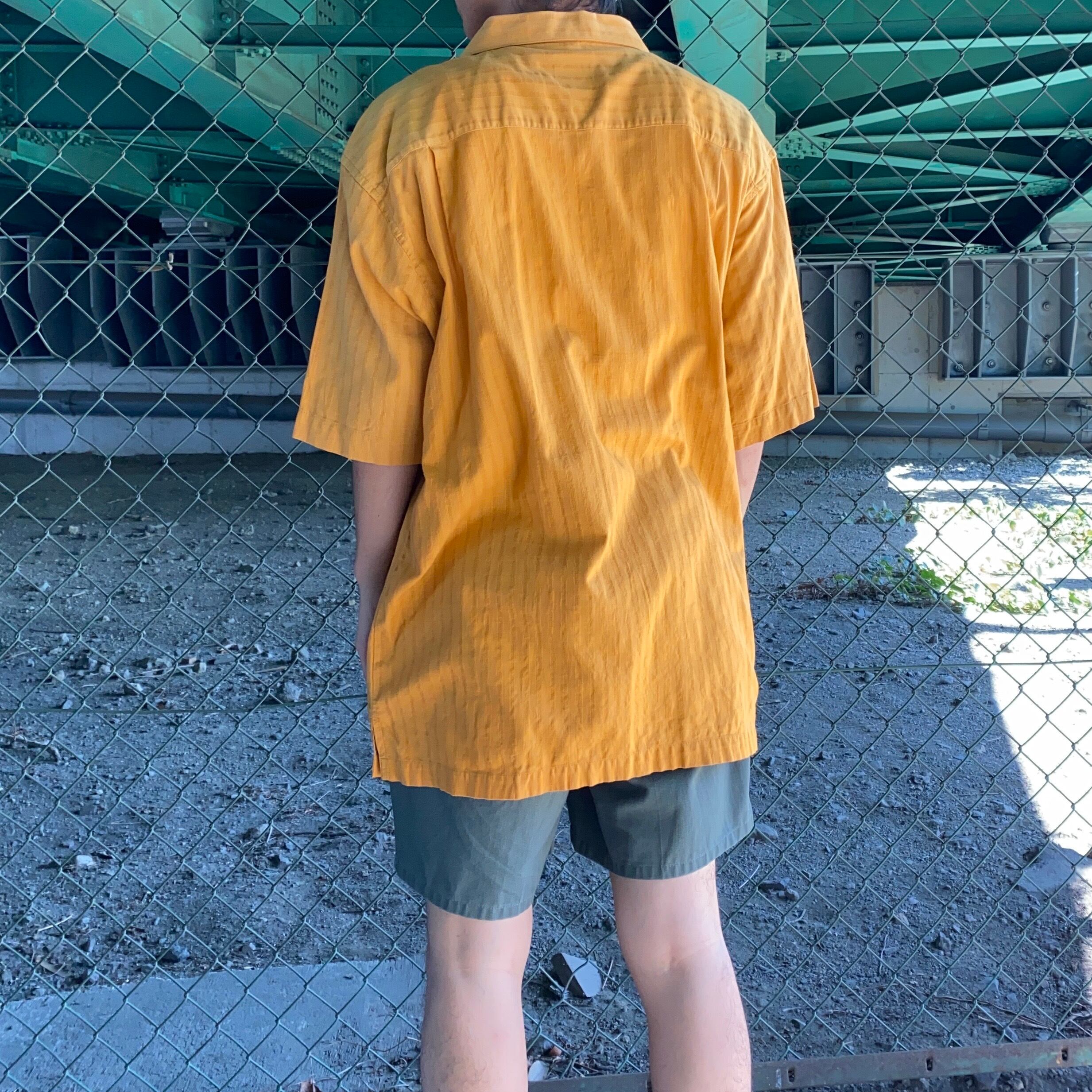 パキッとしたオレンジが印象的なこちらのシャツ。