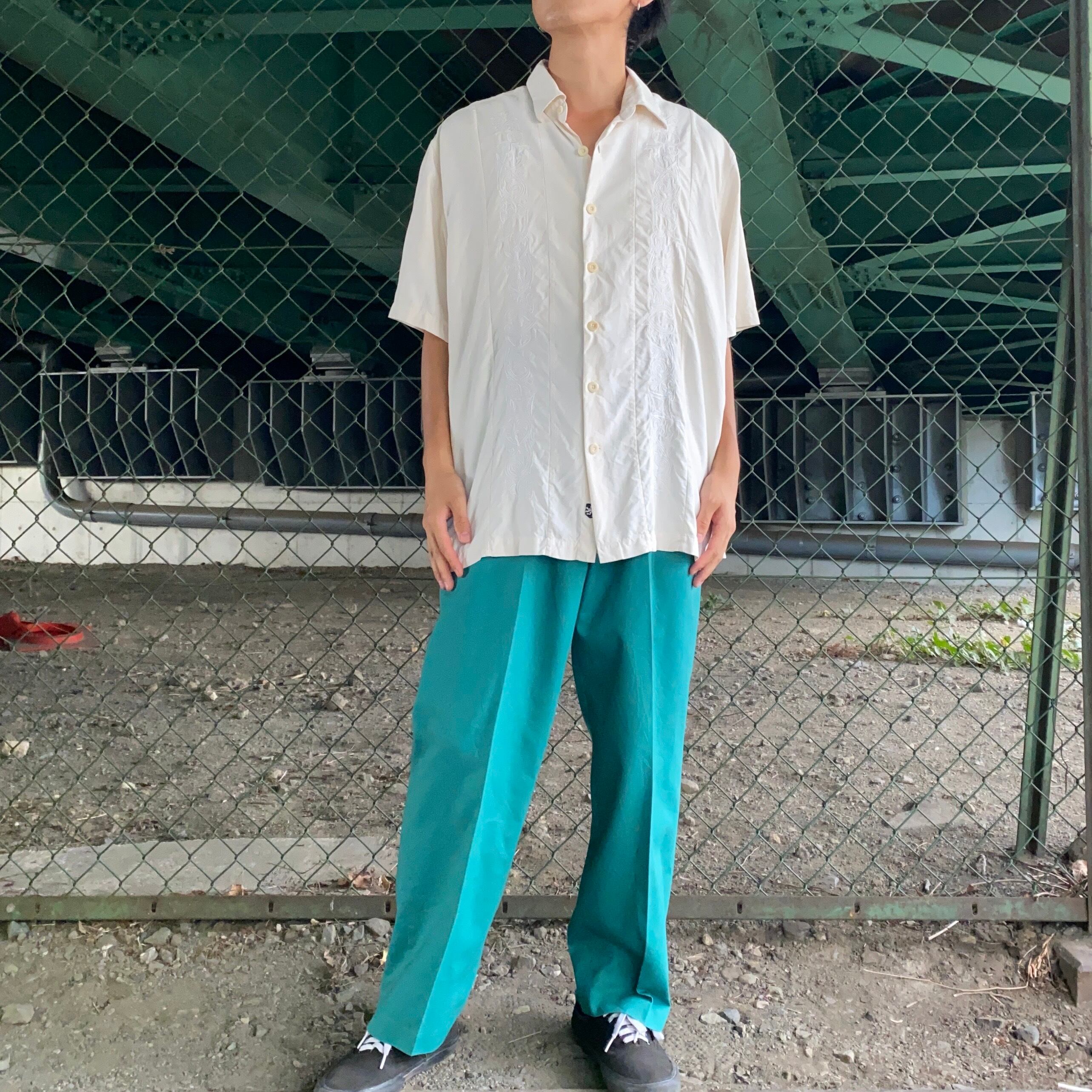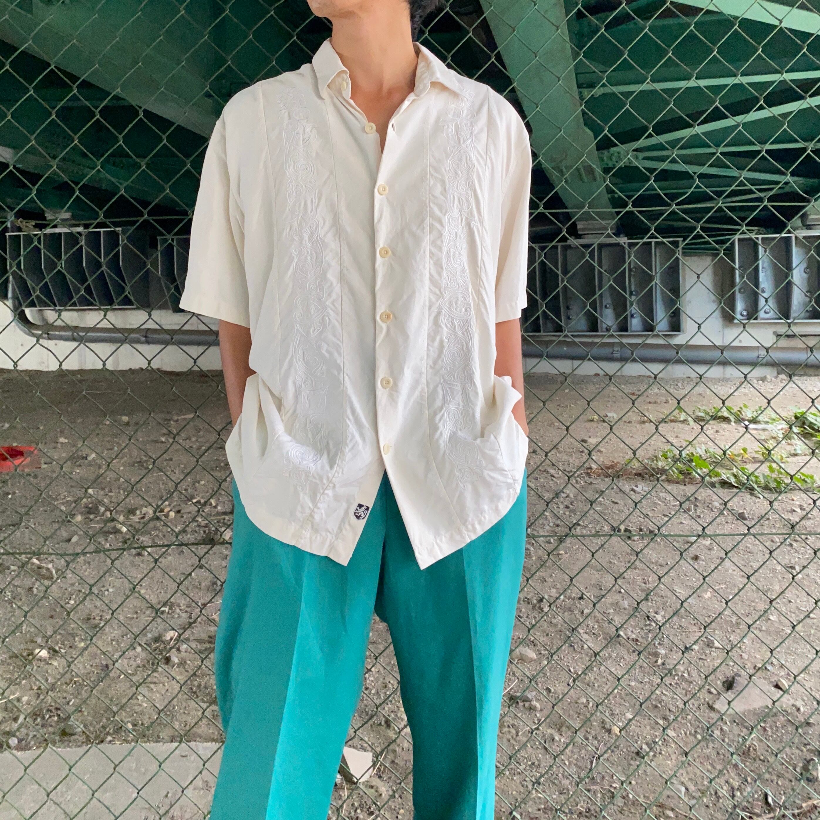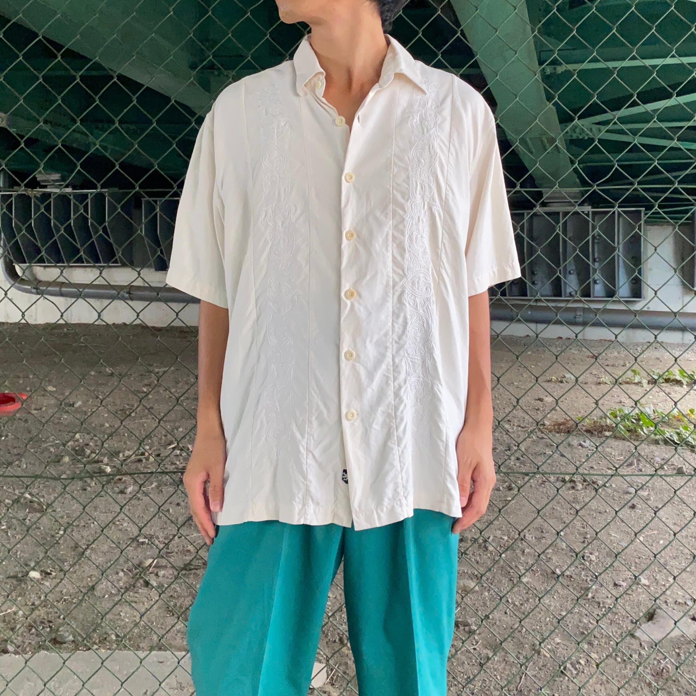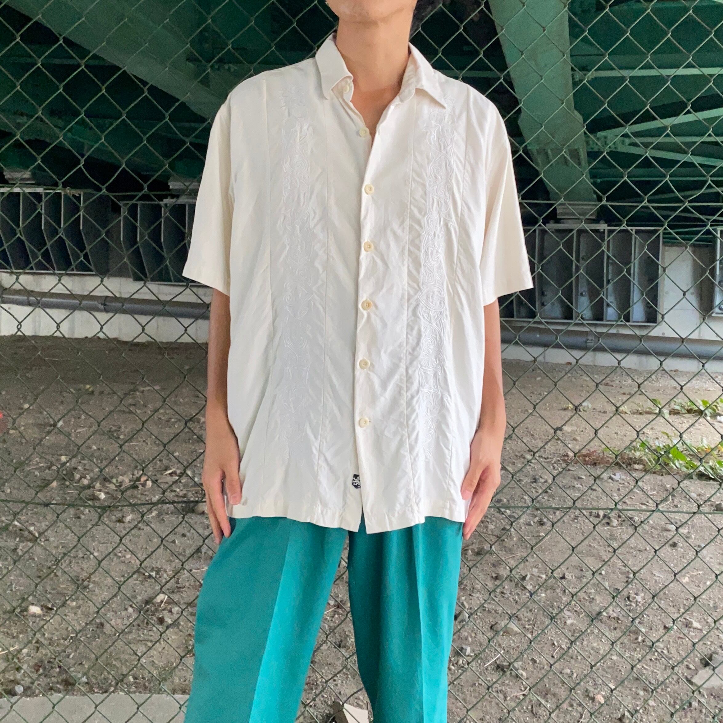 フロントには同系色でキューバシャツよろしくな刺繍のデザインが入っている、珍しいアイテムです。