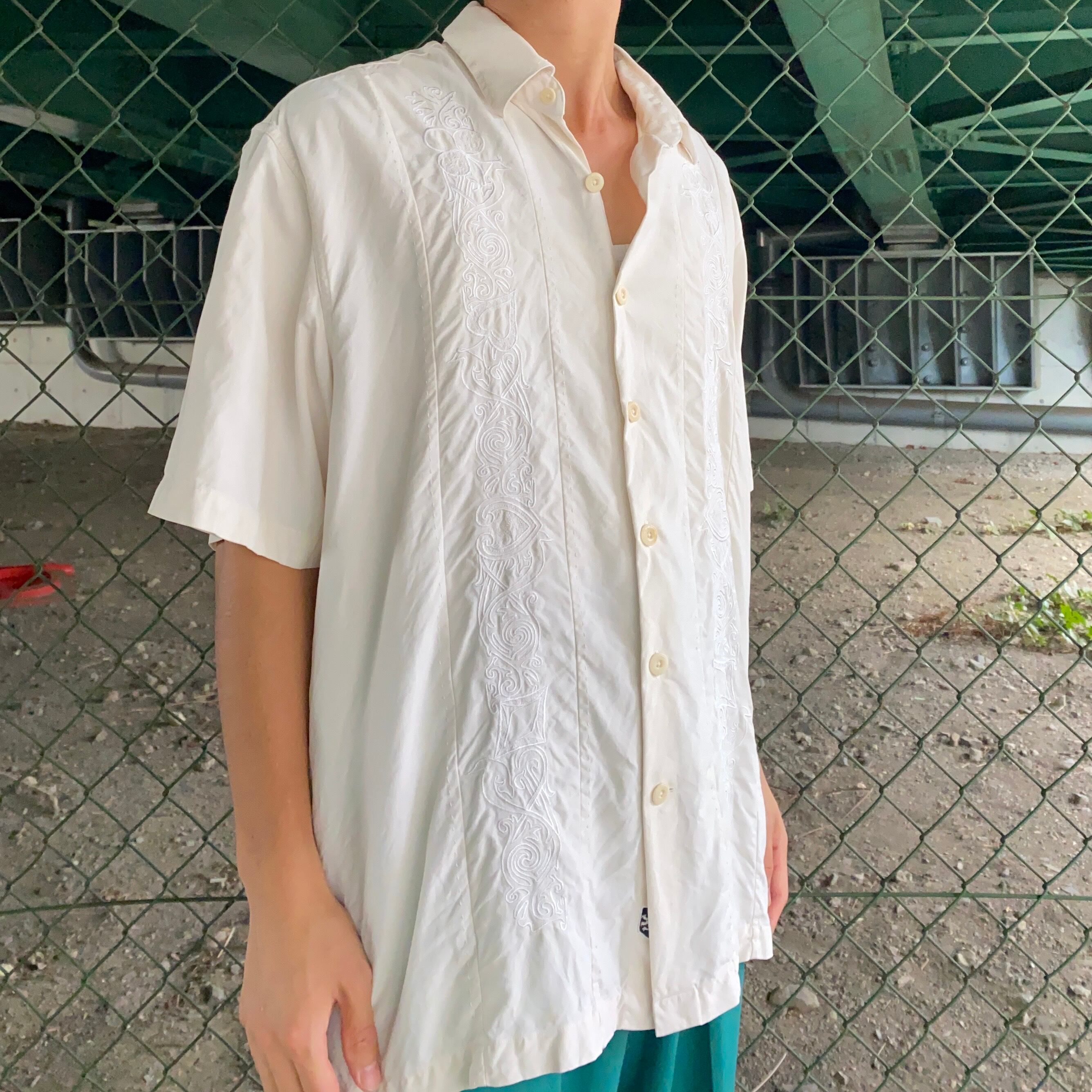 00's / 《Nat Nast》embroidery white silk shirt