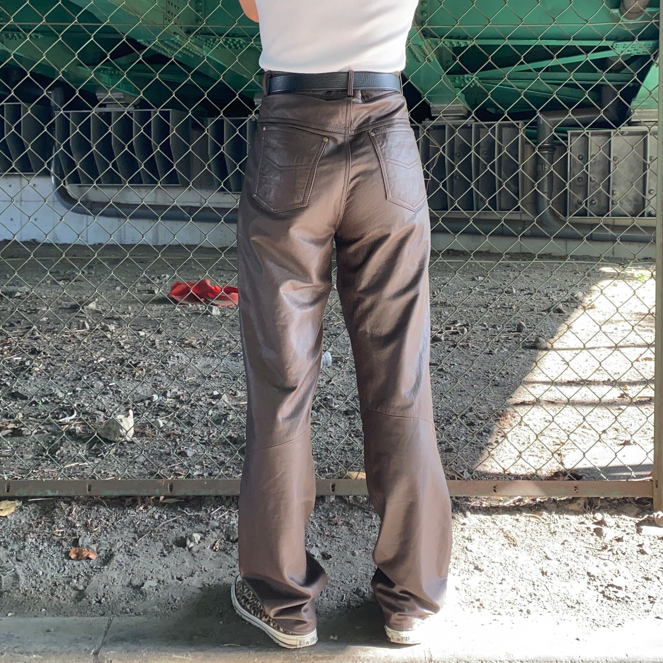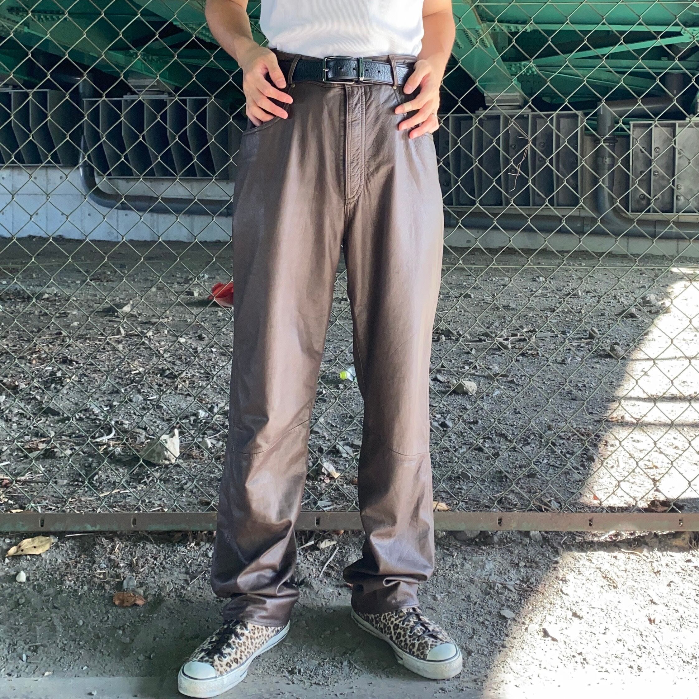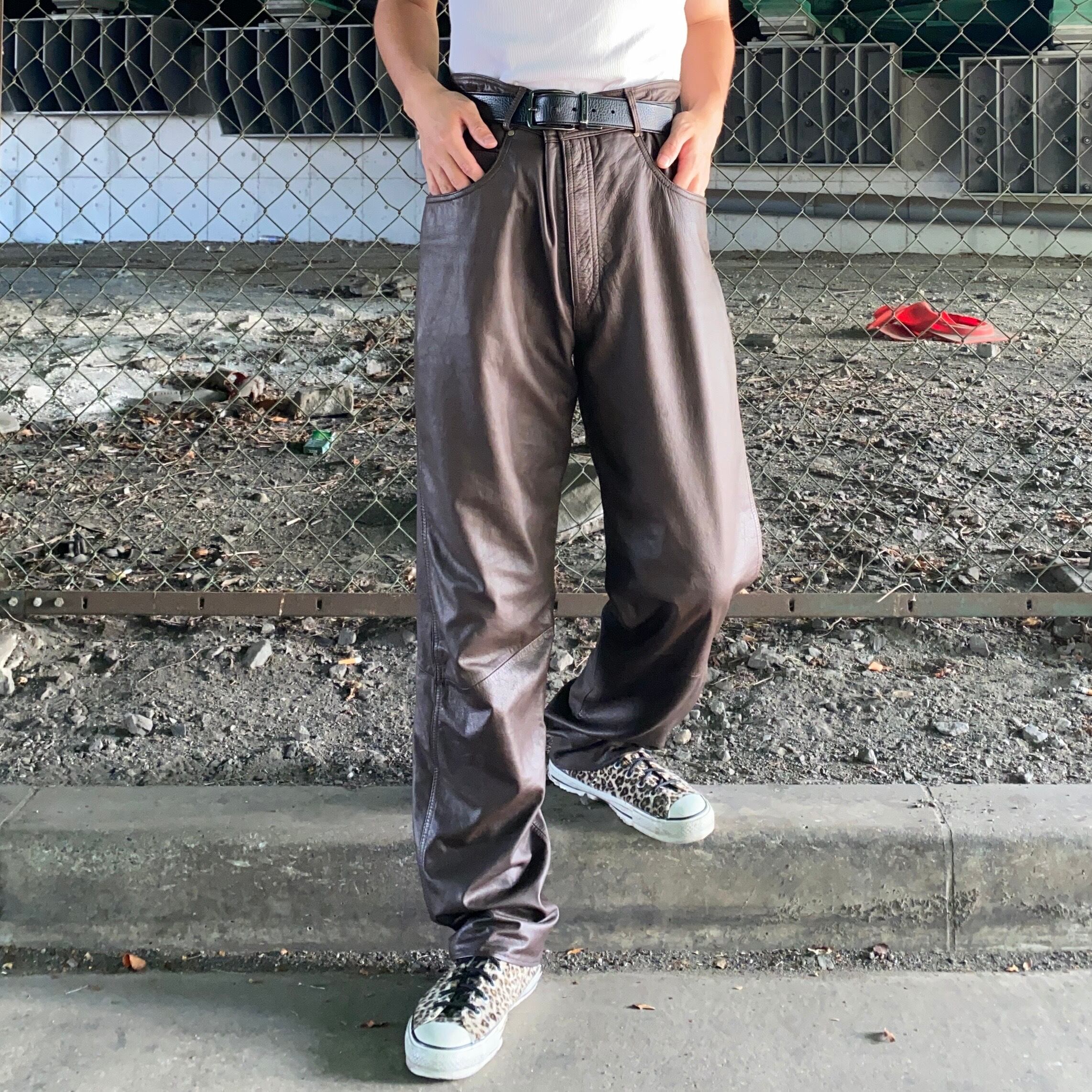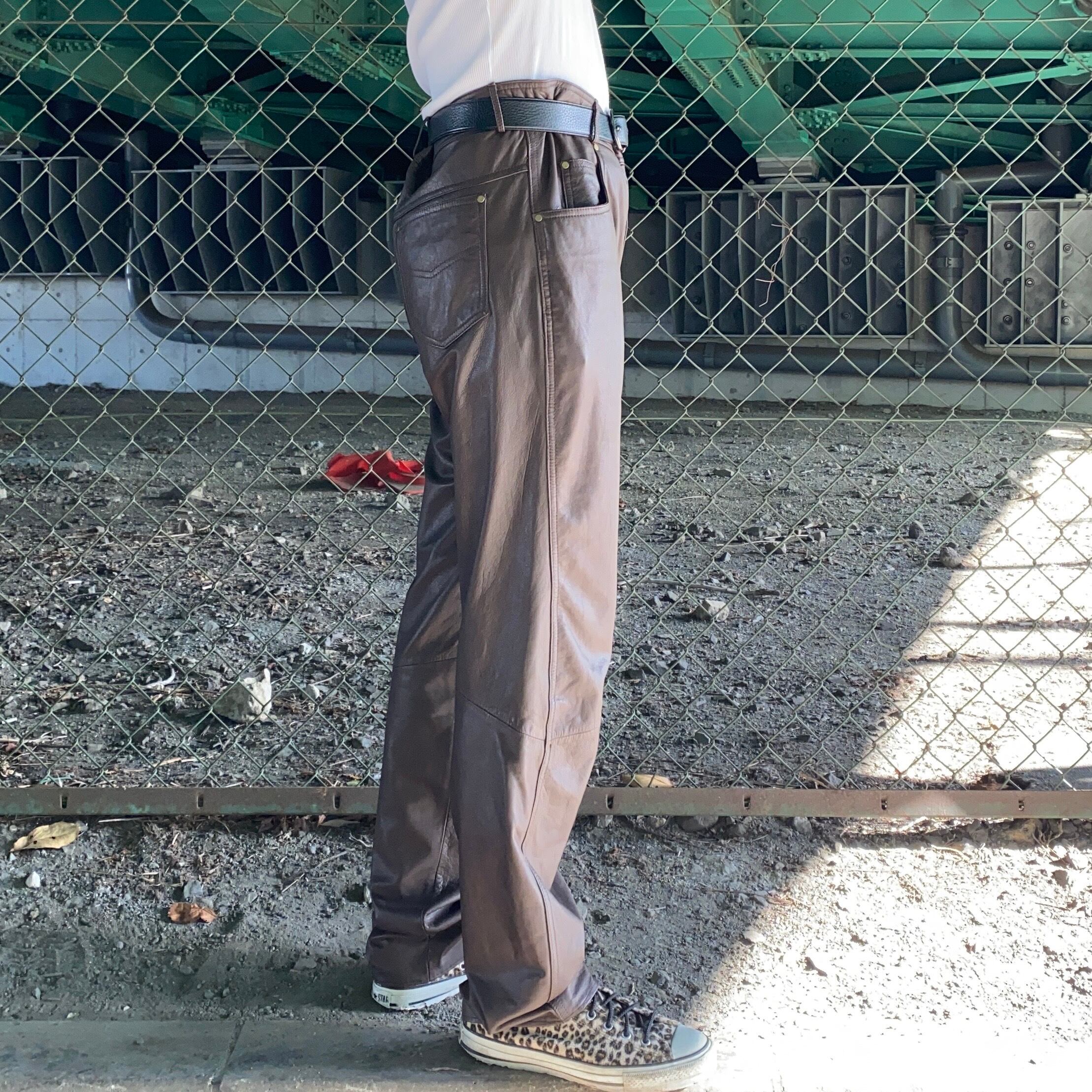 レザーパンツらしい少しハードな印象を与えるブラックと比較して、ブラウンですと温かみがあり、着やすい感じがします。
