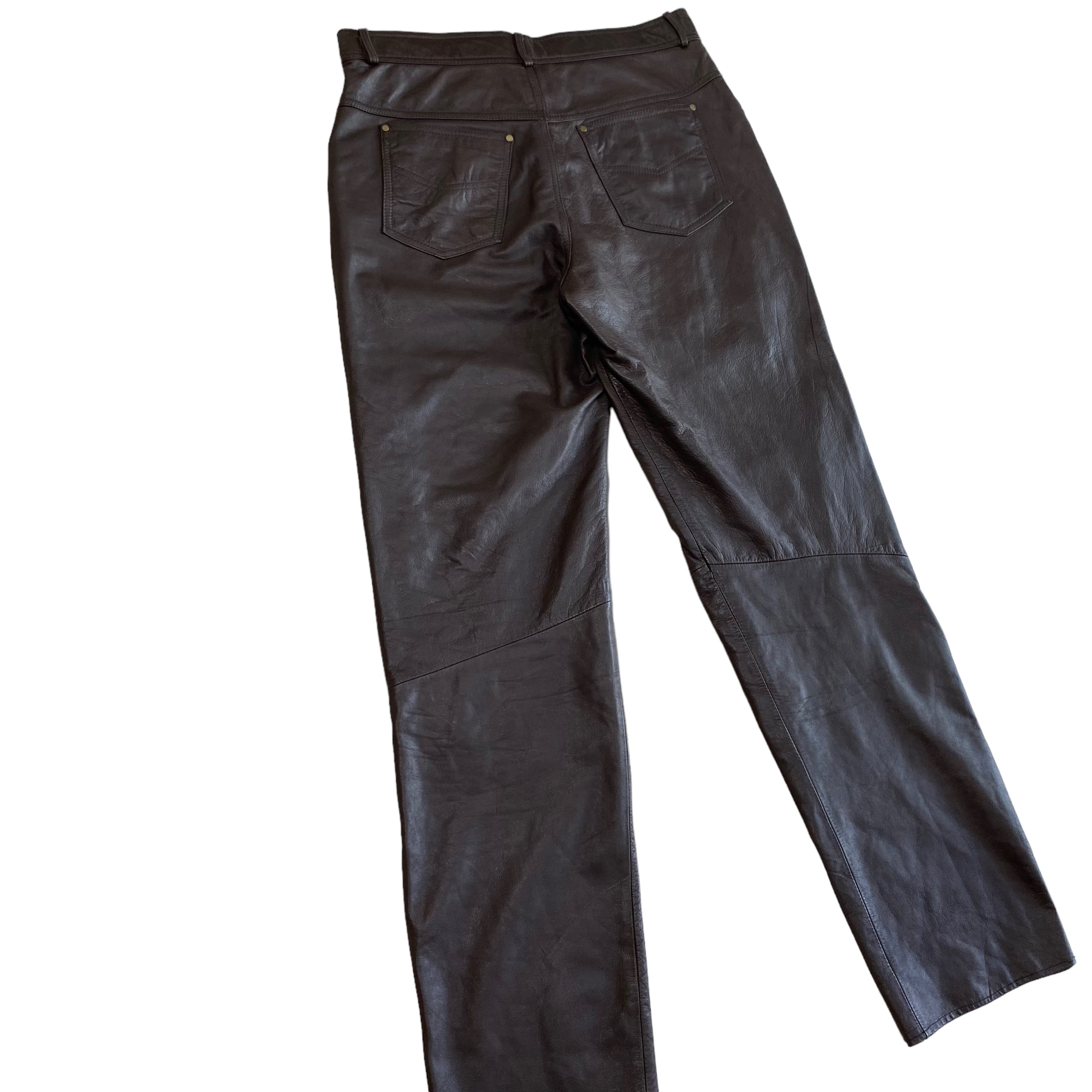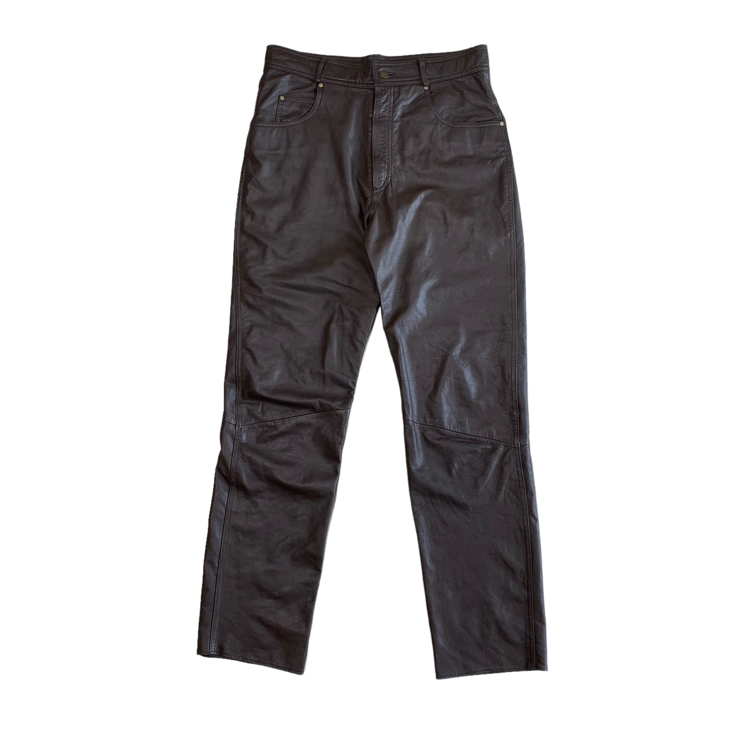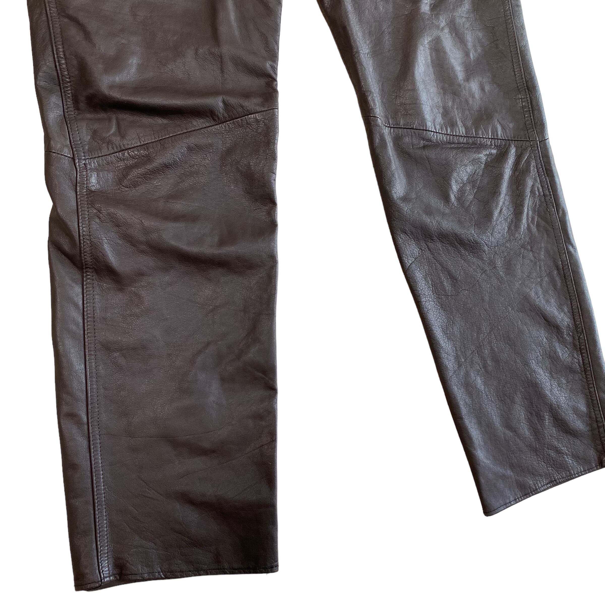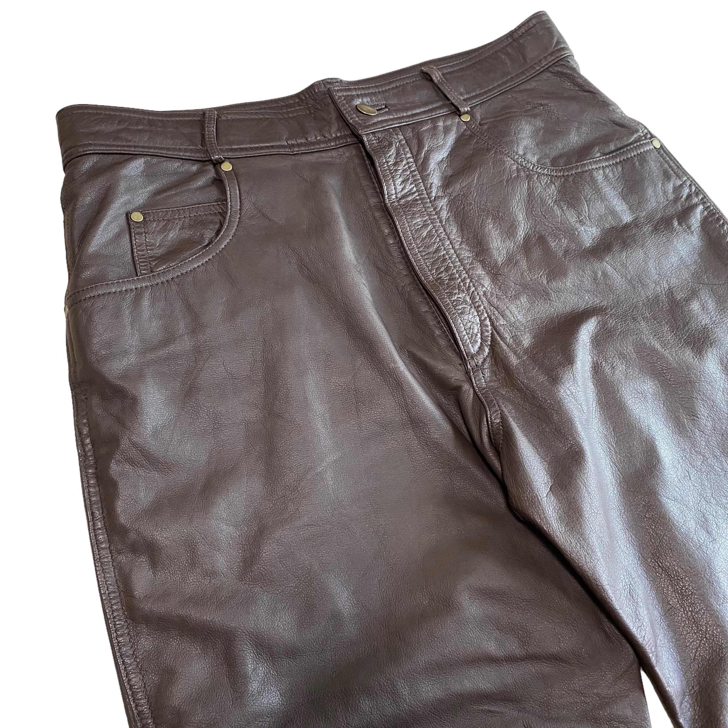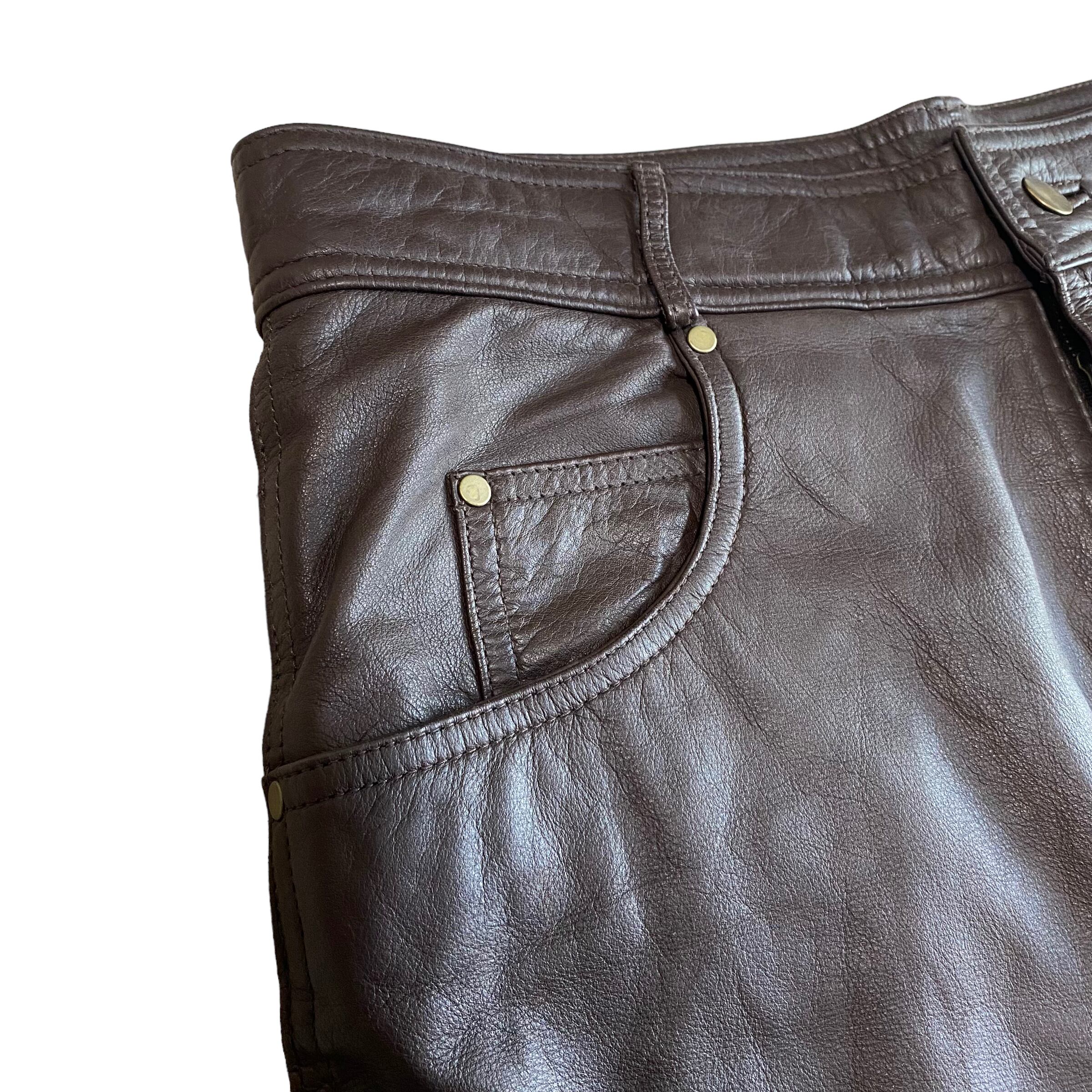 レザーパンツらしい少しハードな印象を与えるブラックと比較して、ブラウンですと温かみがあり、着やすい感じがします。