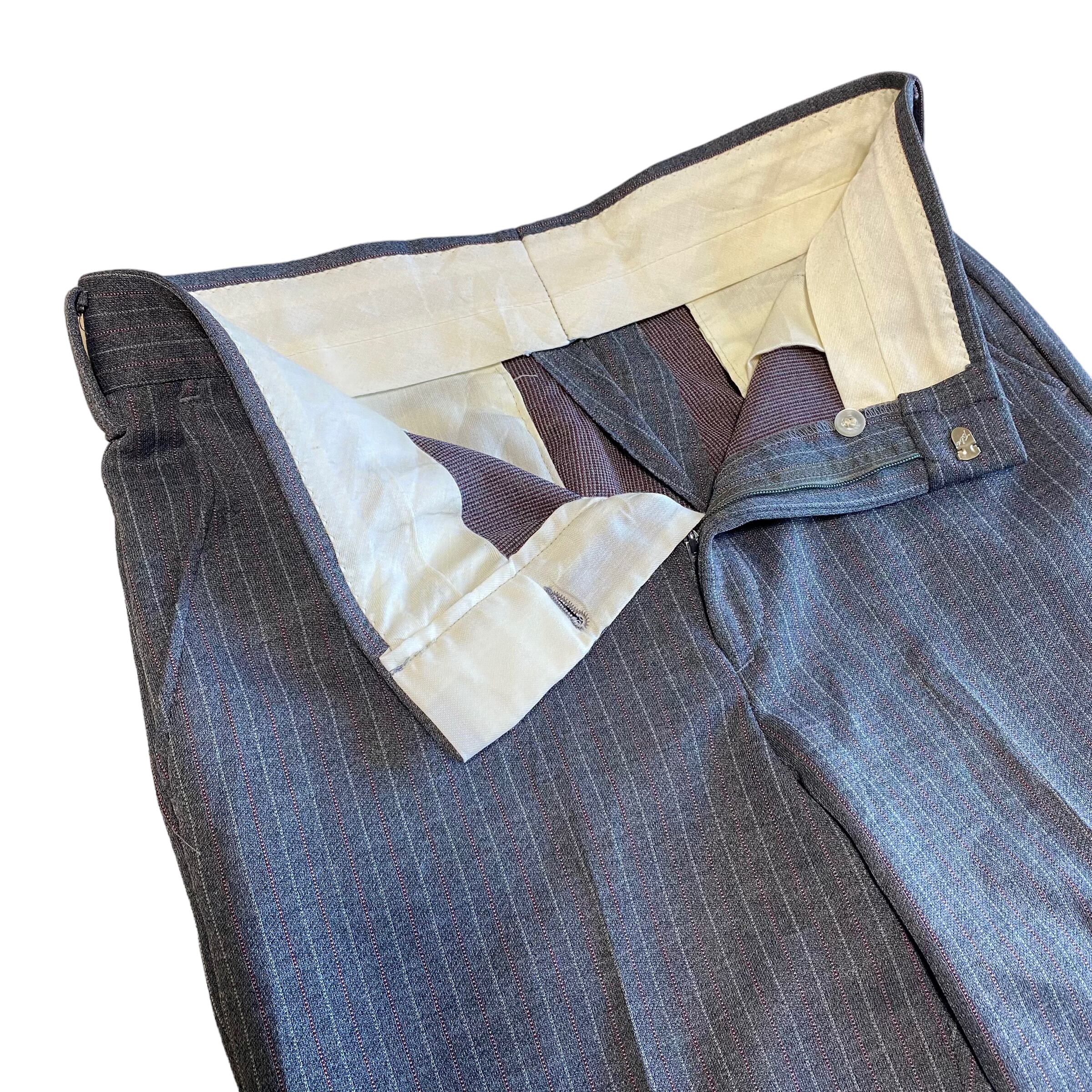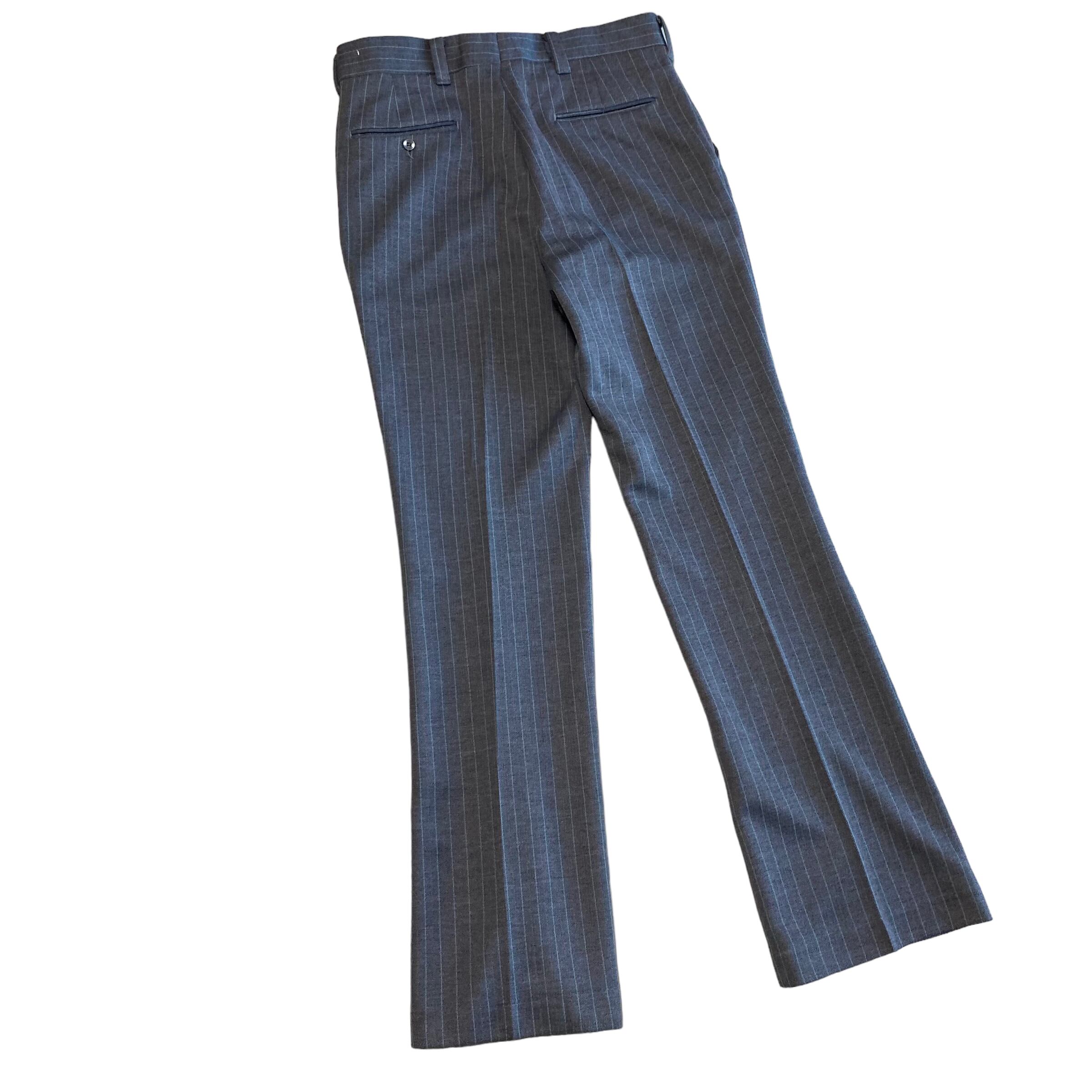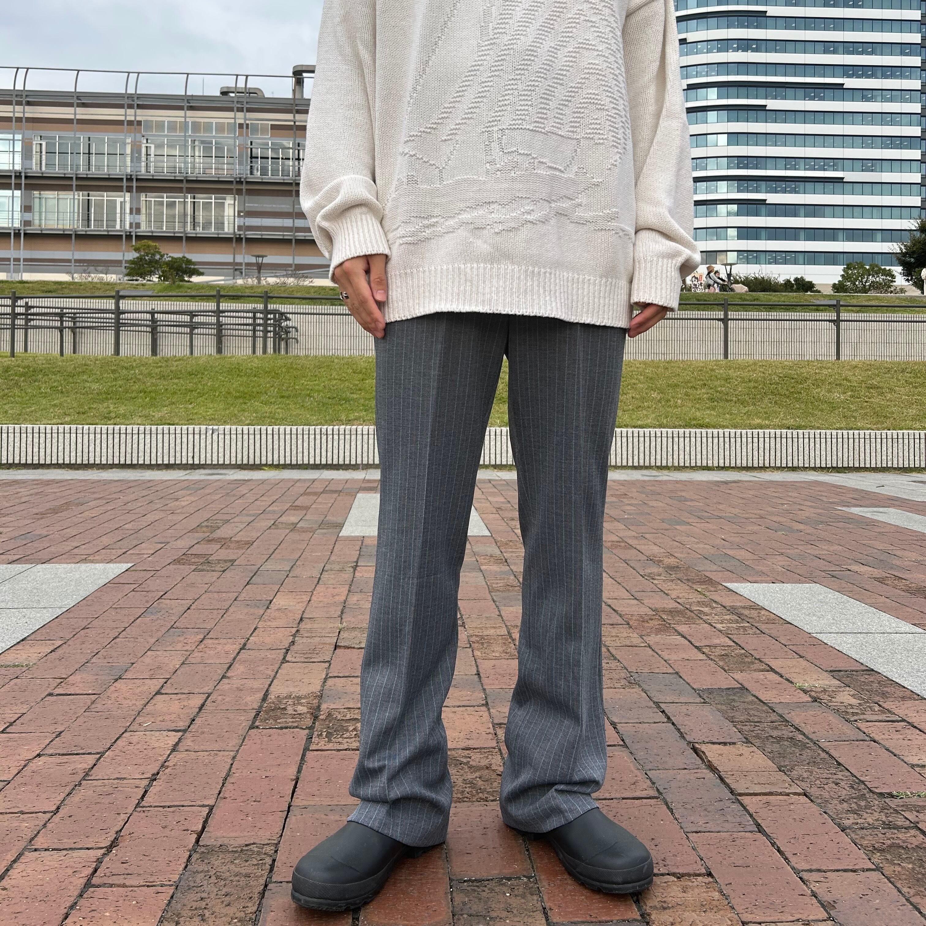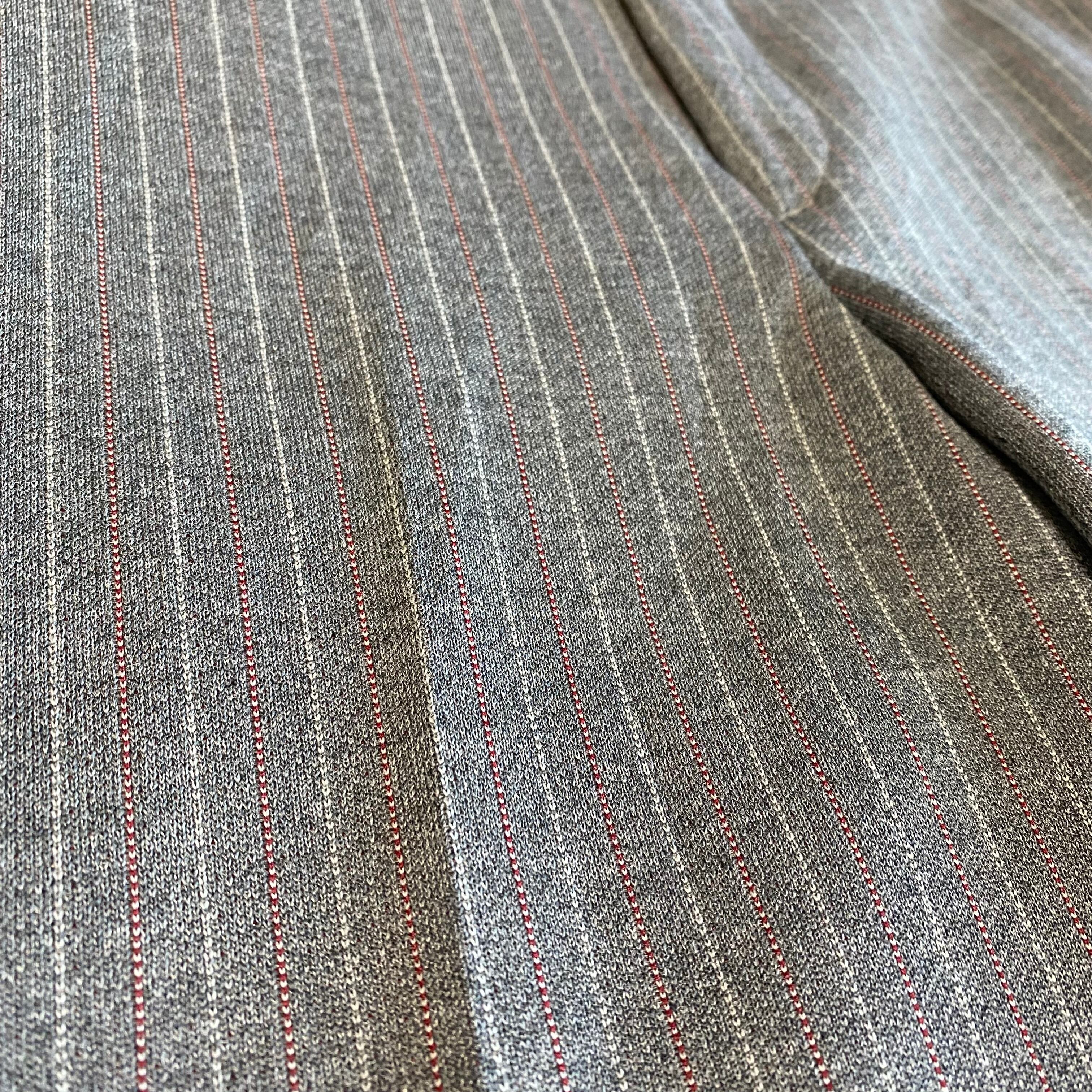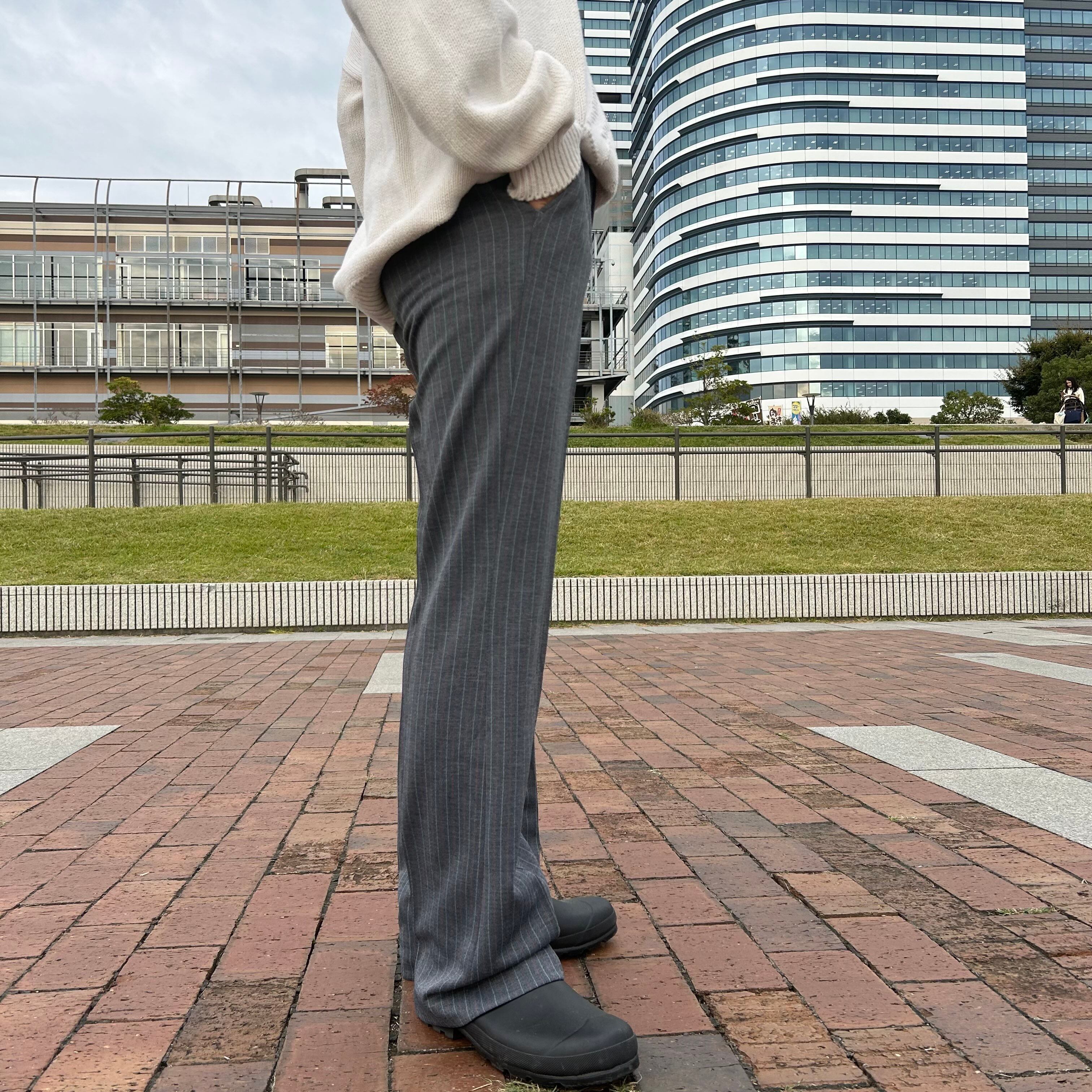 グレーをベースに赤や白のステッチでストライプになっており、足を綺麗に見せてくれるフレアシルエットも魅力的です。