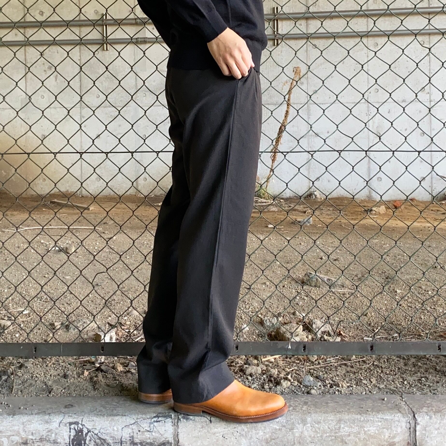 キレイなストレートシルエットで、太さはジャストくらいですので、他のアイテムと非常に合わせやすいパンツかと思います。