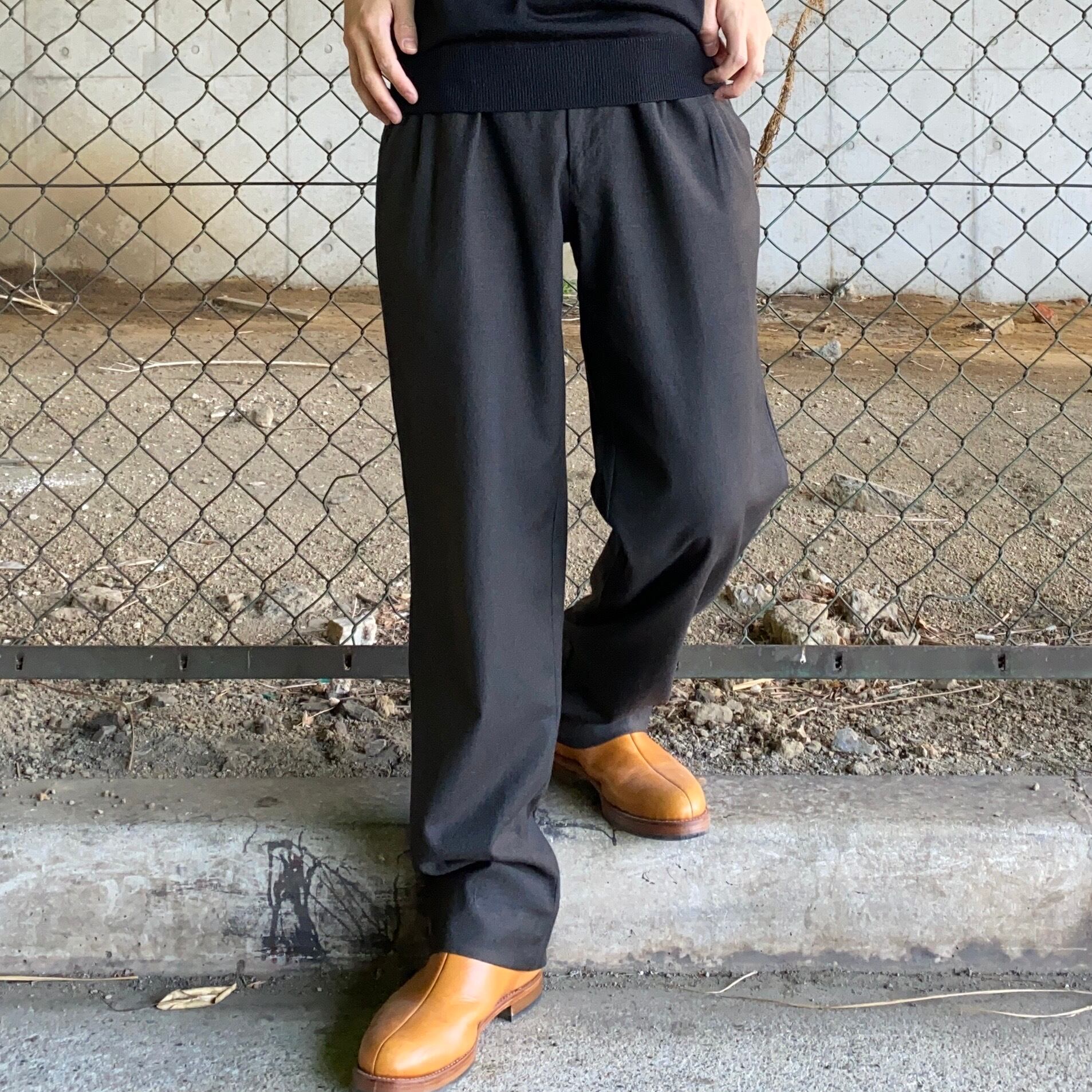 ウールを中心に、上質な素材を用いた美しい生地で知られているブランドで、こちらのパンツも例に漏れず100%ウールのクオリティの高い1着。