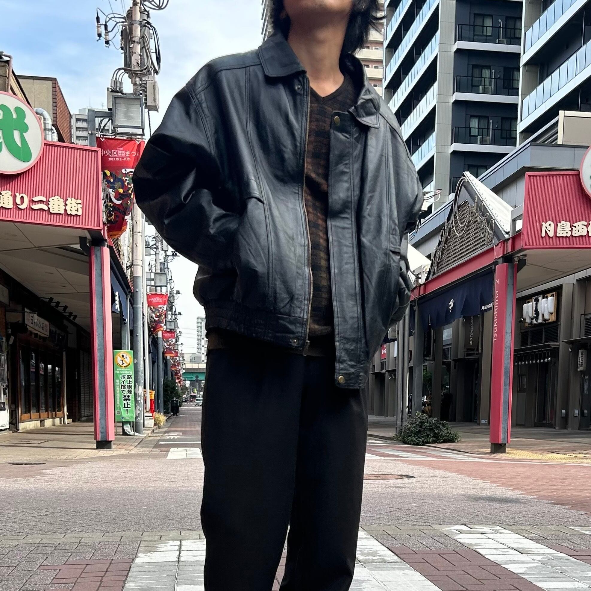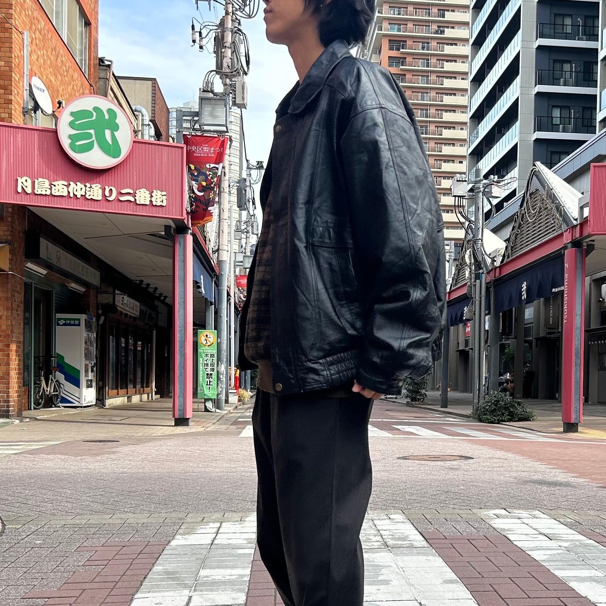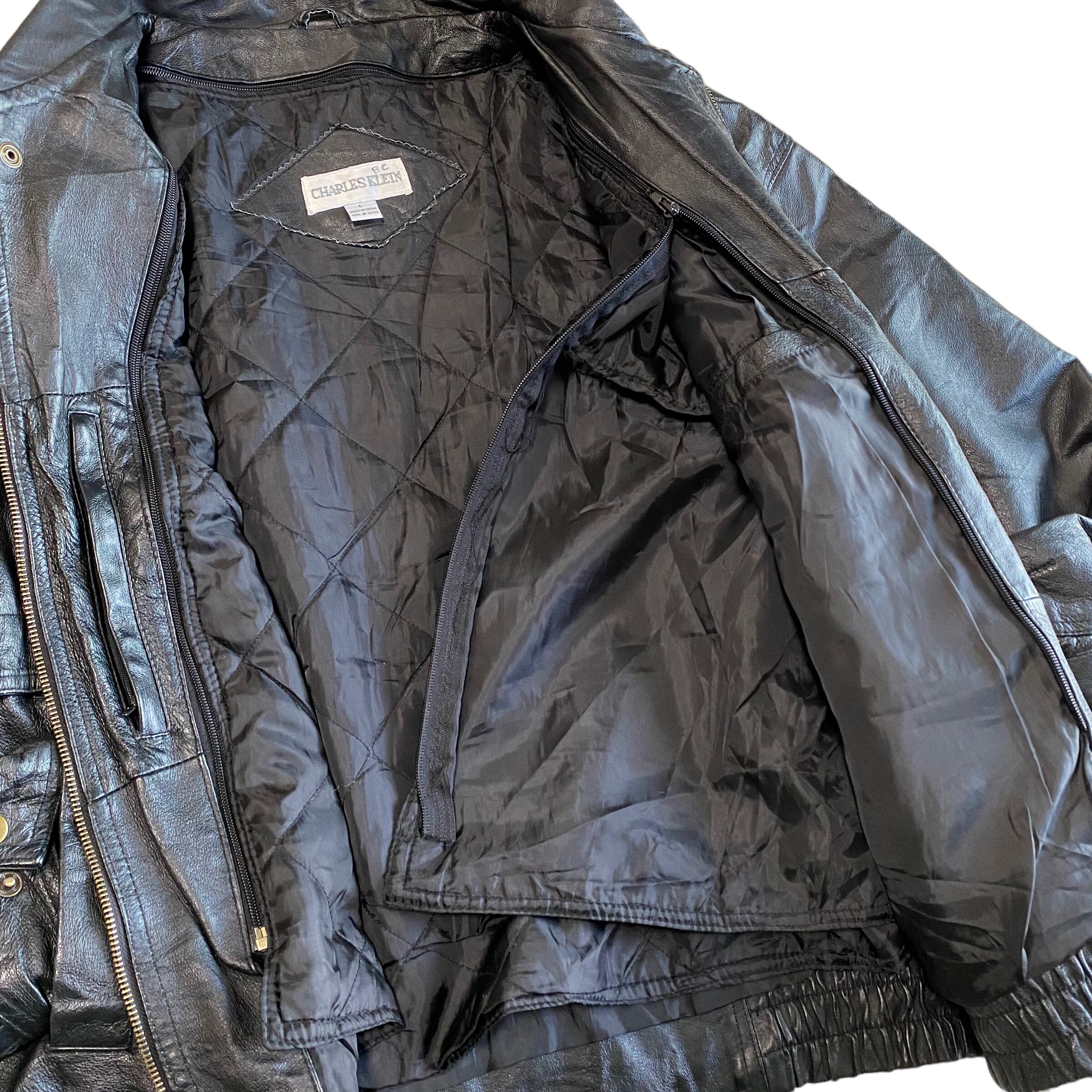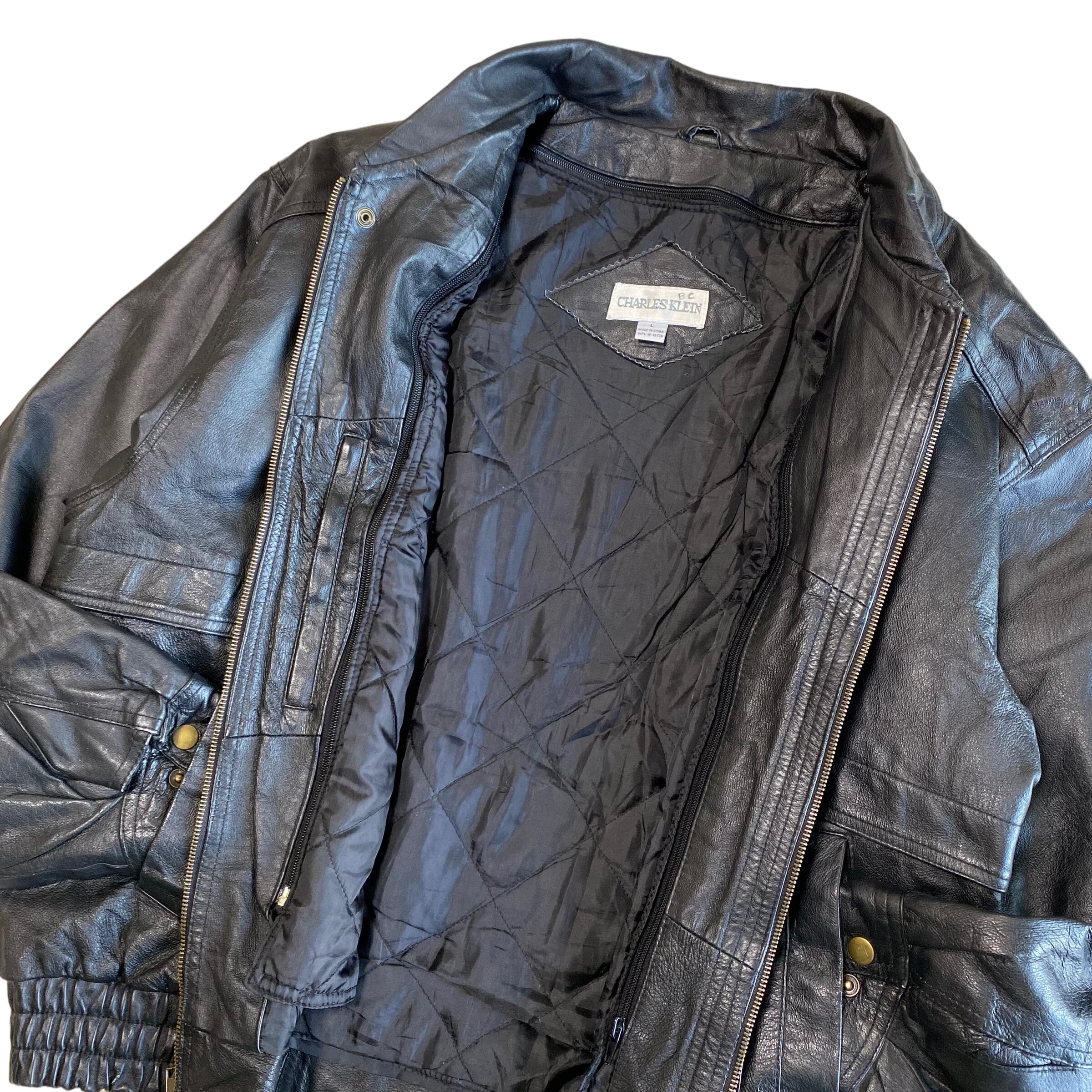90's〜 / zip up leather jacket with liner