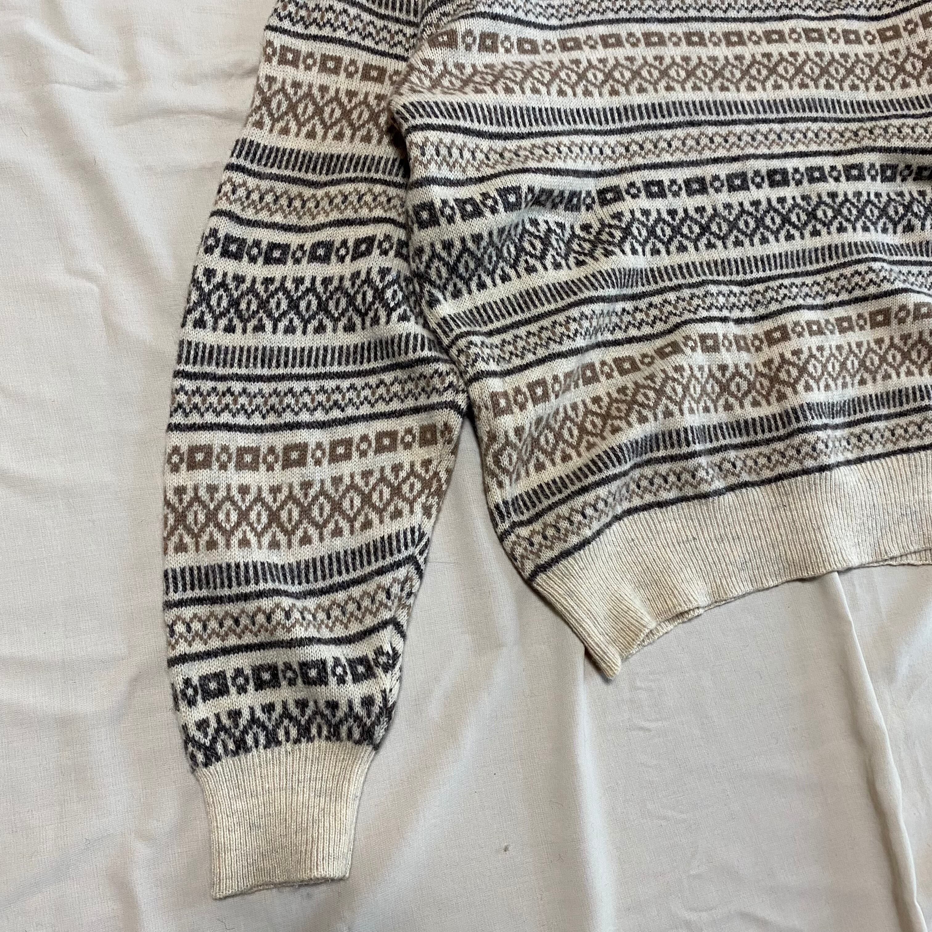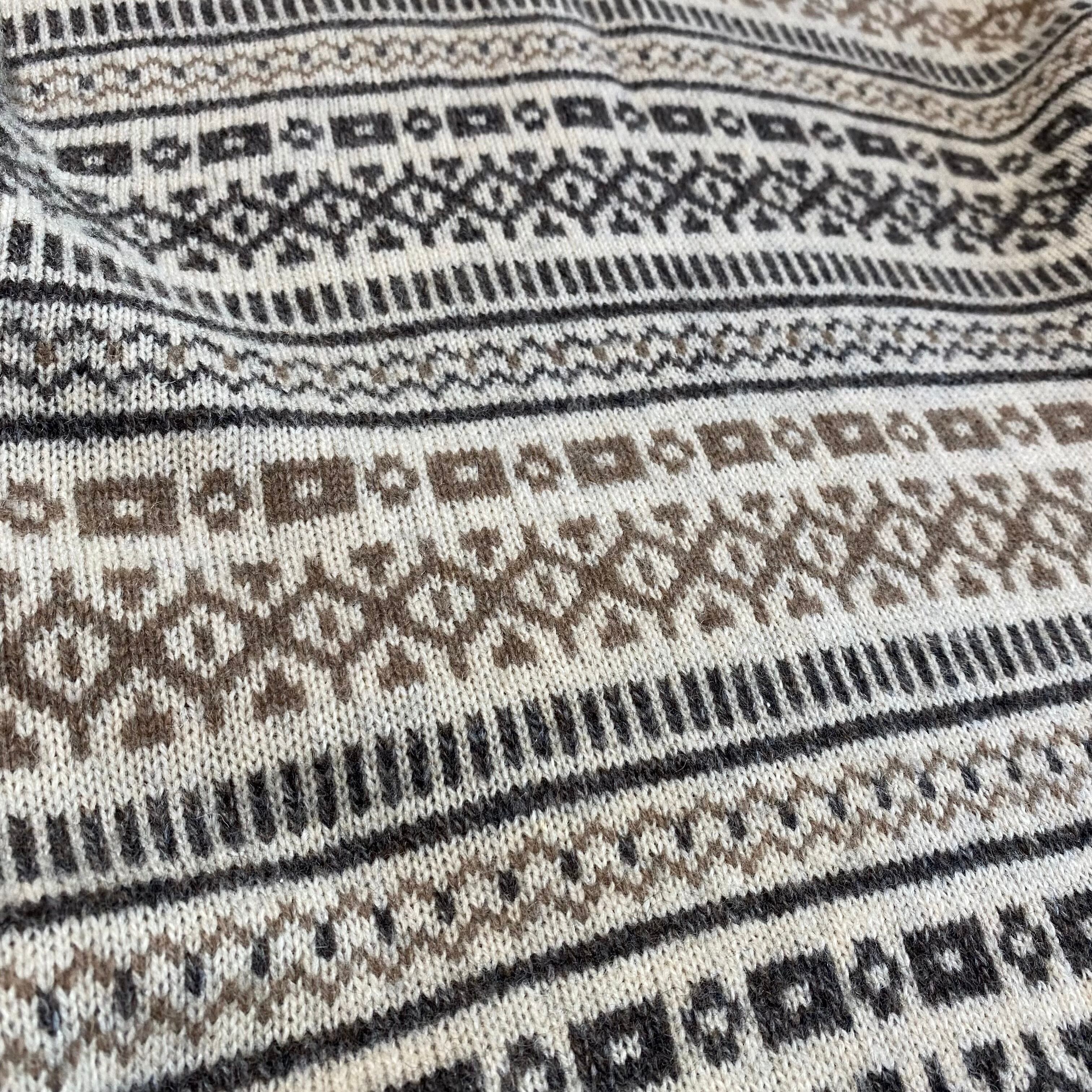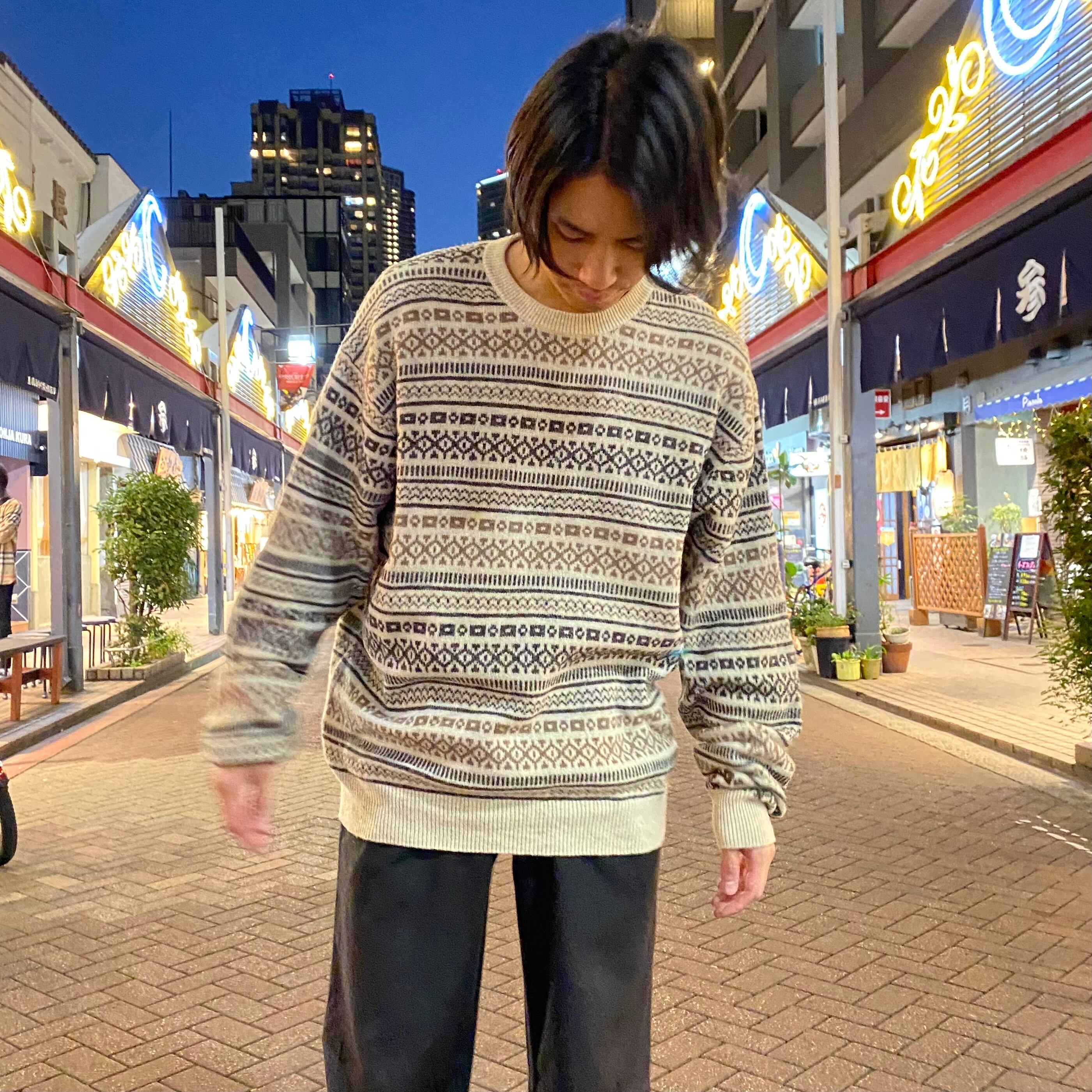 ベージュやブラウンをベースとした、柔らかい印象を与えるこちら。ノルディック柄のような雰囲気もあるので、秋冬に袖を通したくなる1着かと思います。