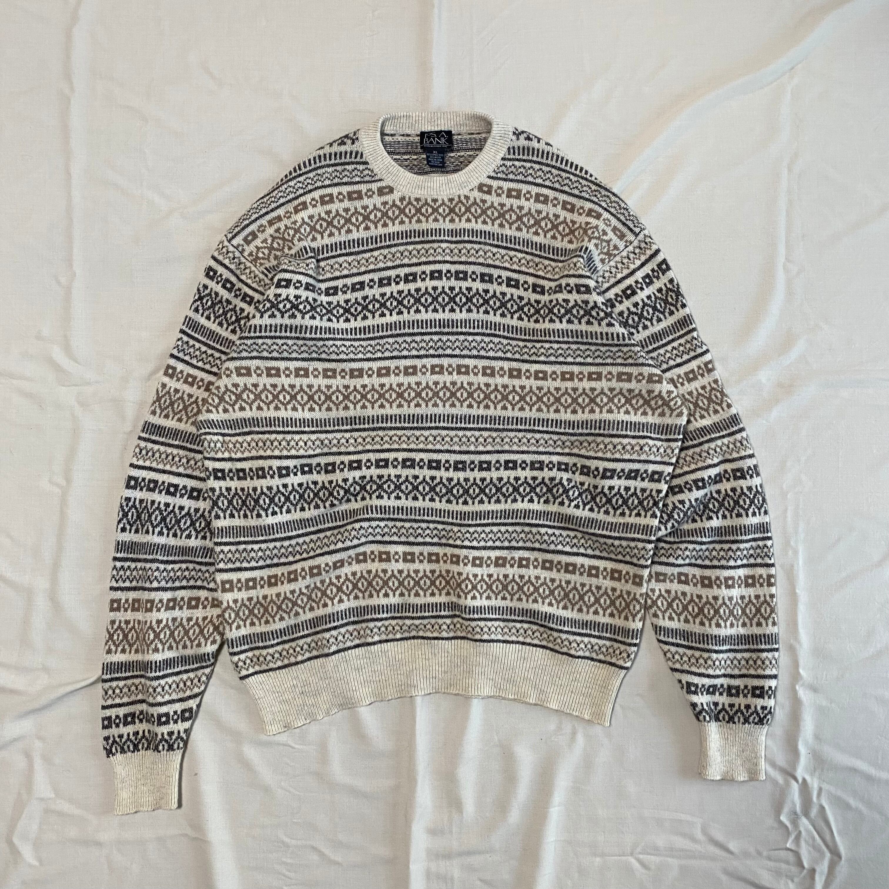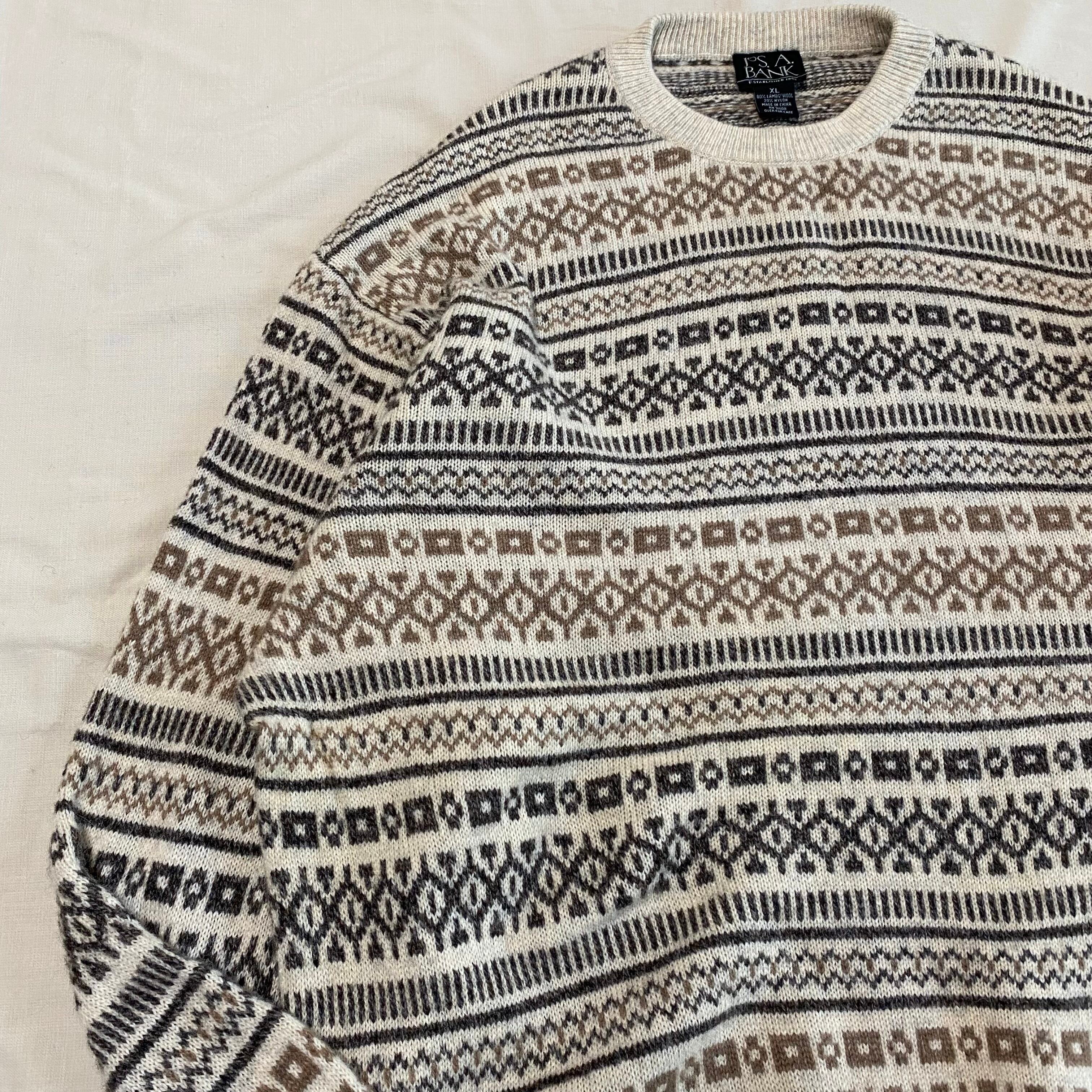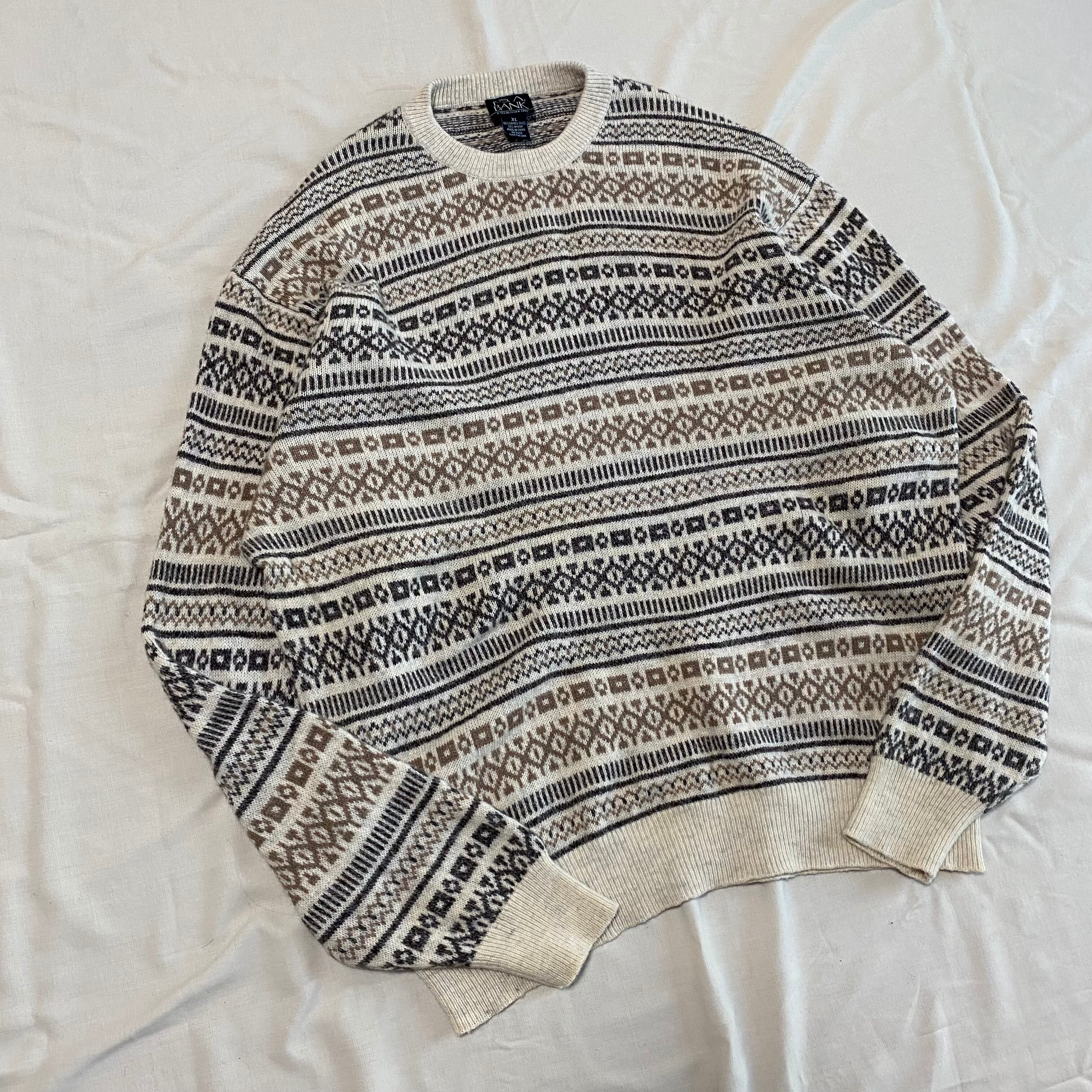 ベージュやブラウンをベースとした、柔らかい印象を与えるこちら。ノルディック柄のような雰囲気もあるので、秋冬に袖を通したくなる1着かと思います。
