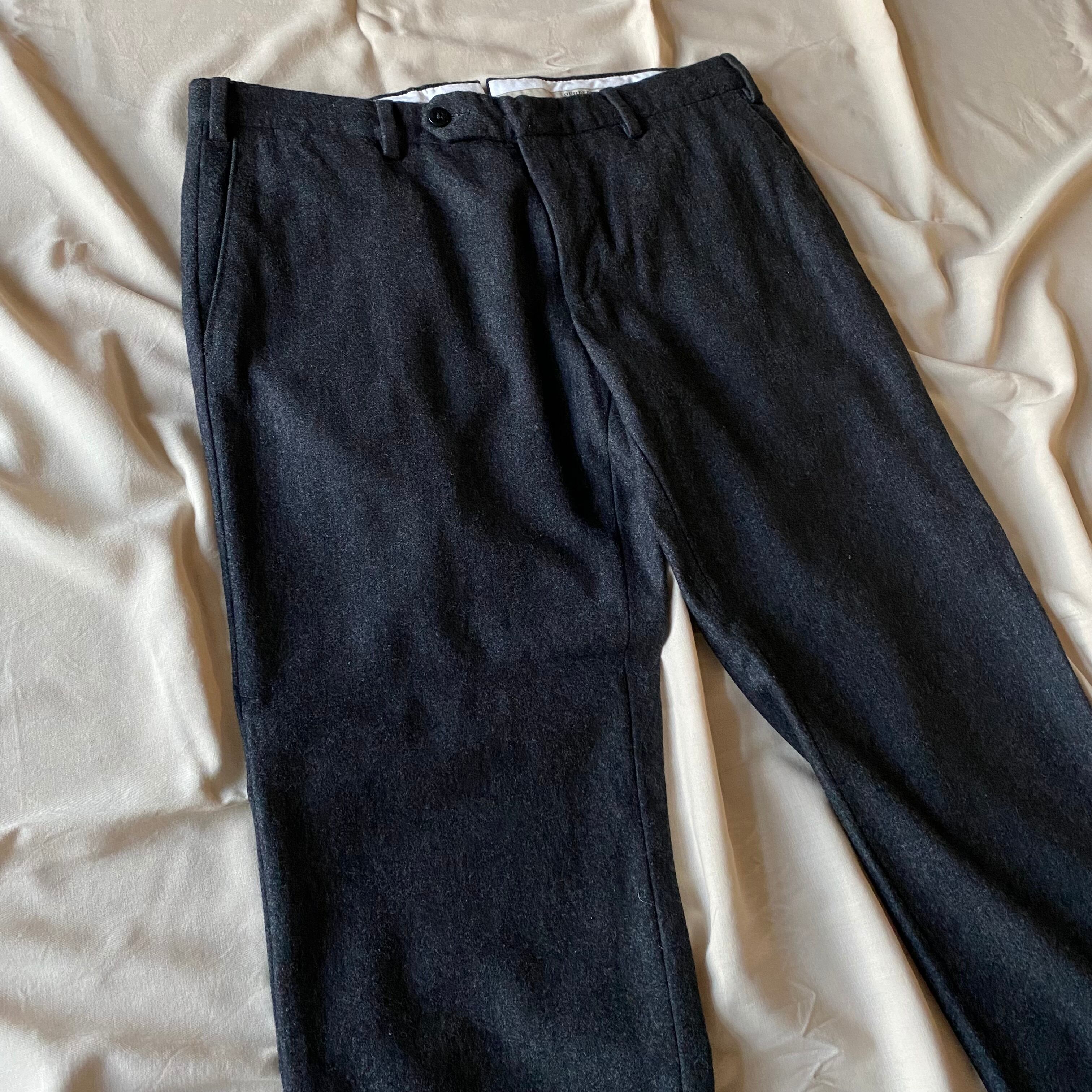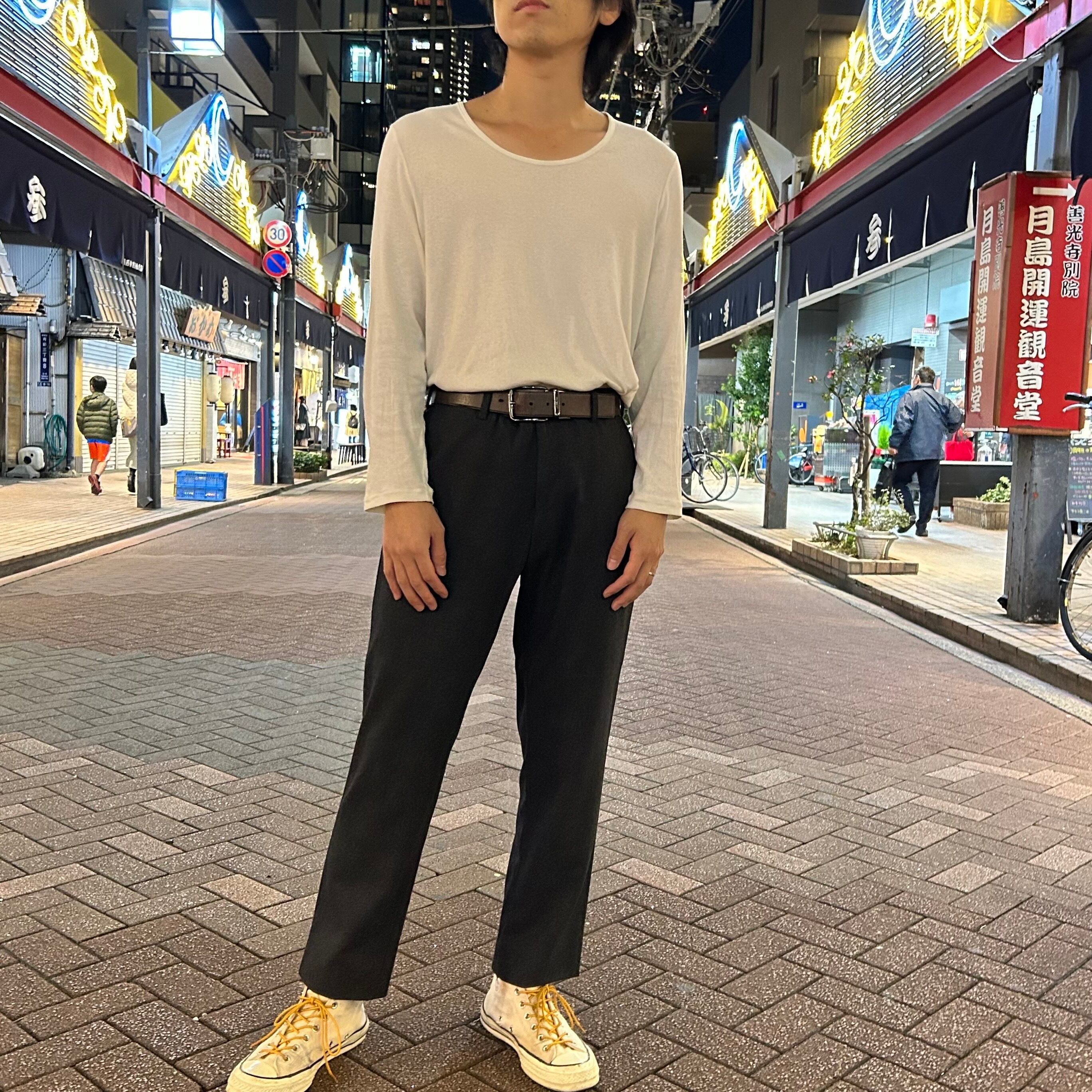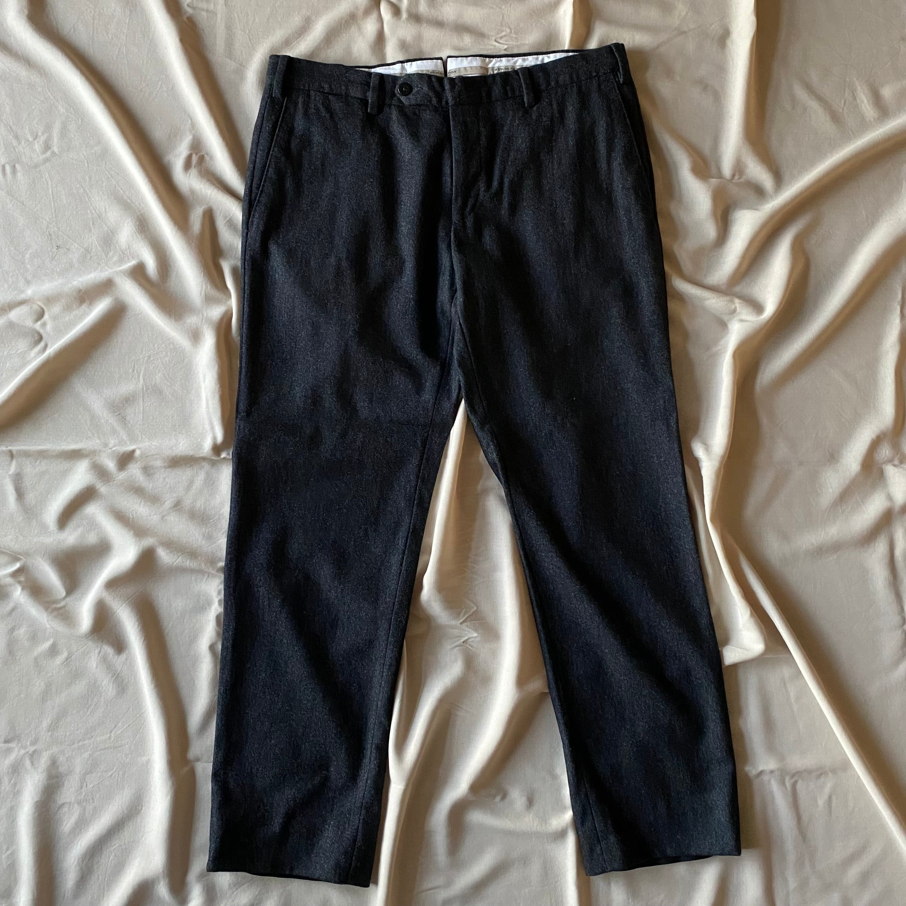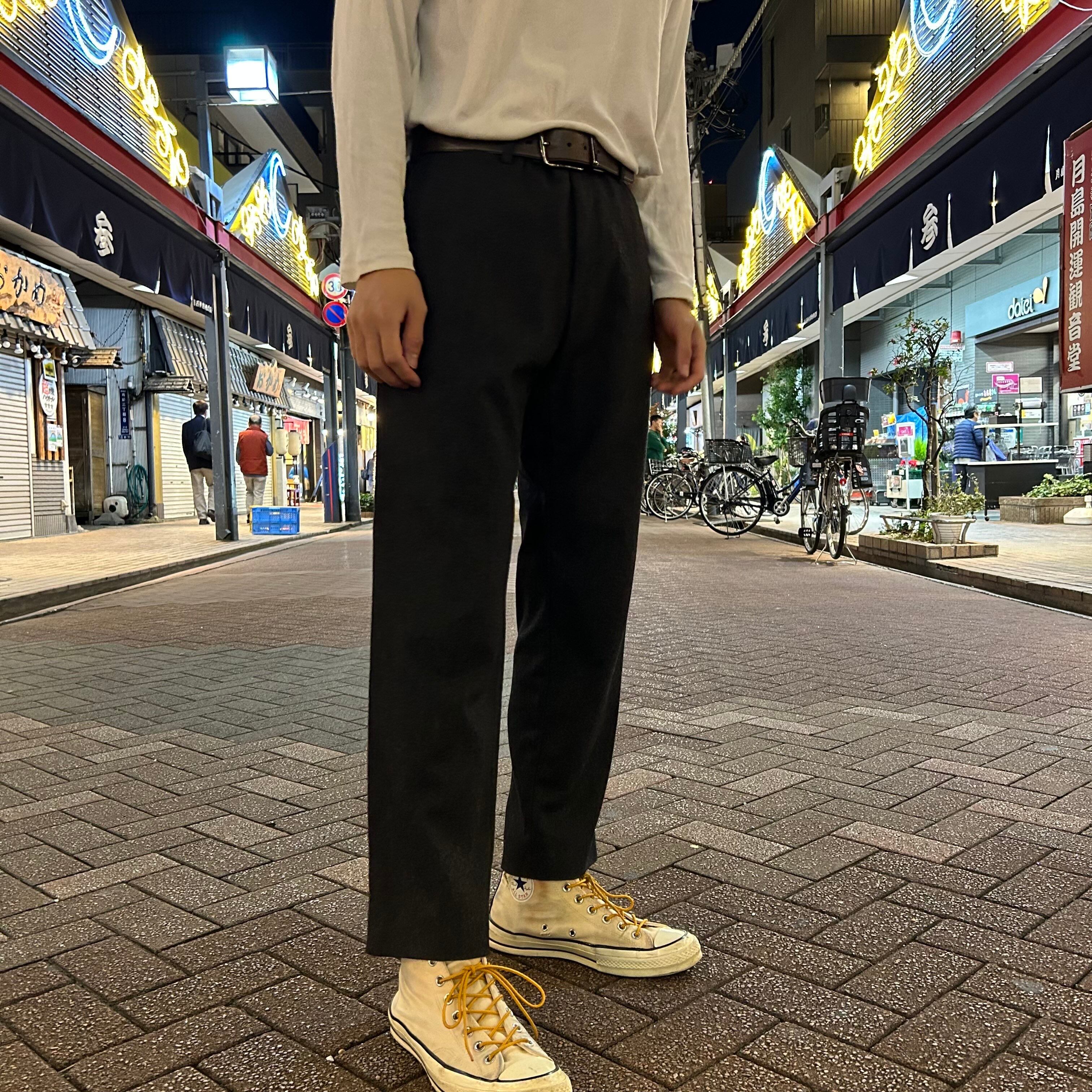カラーはブラックに程近いチャコールで、とても落ち着いた色合い。スウェットで着崩したり、綺麗めなジャケットに合わせたり、様々なトップスにお供できるかと思います。着回し力◎です。