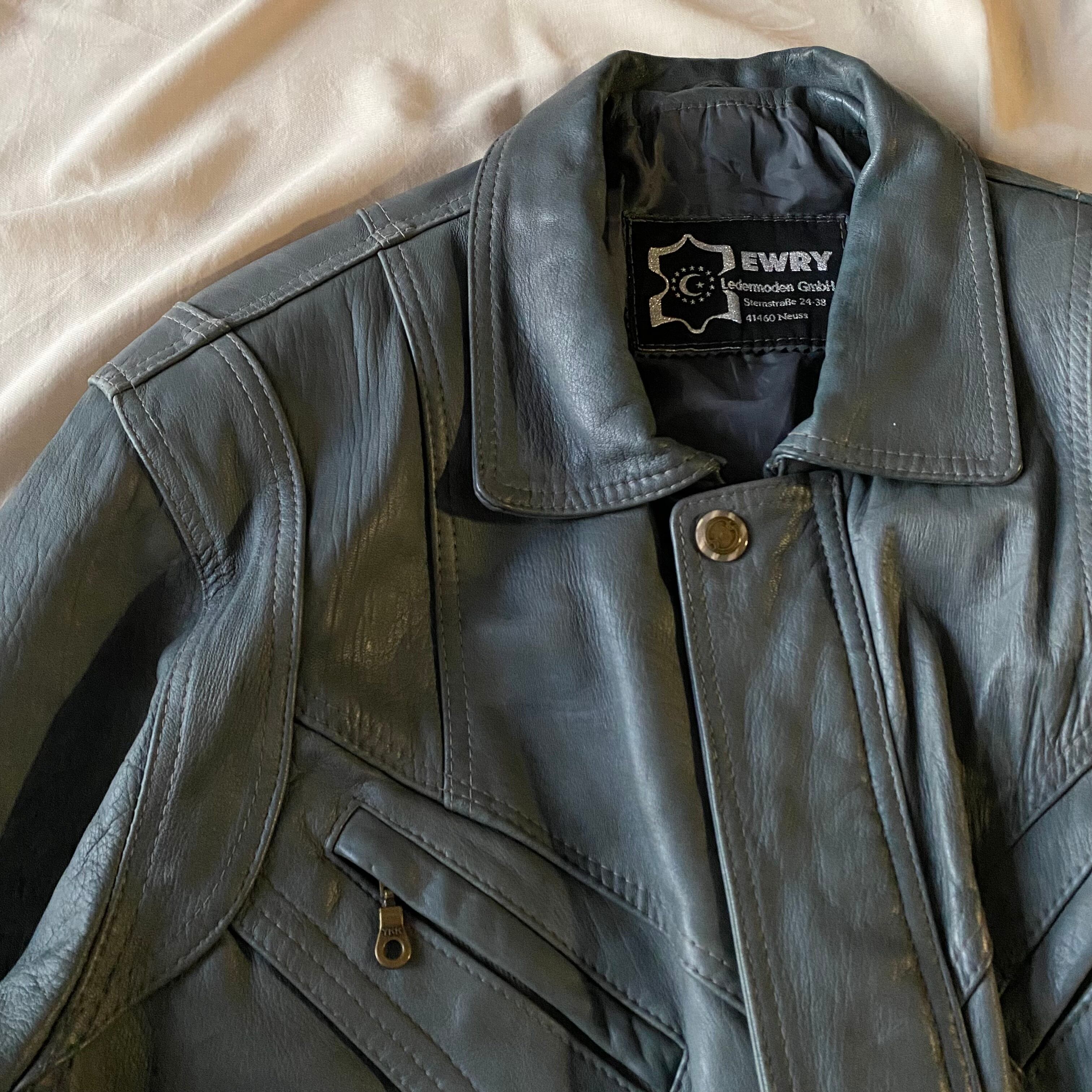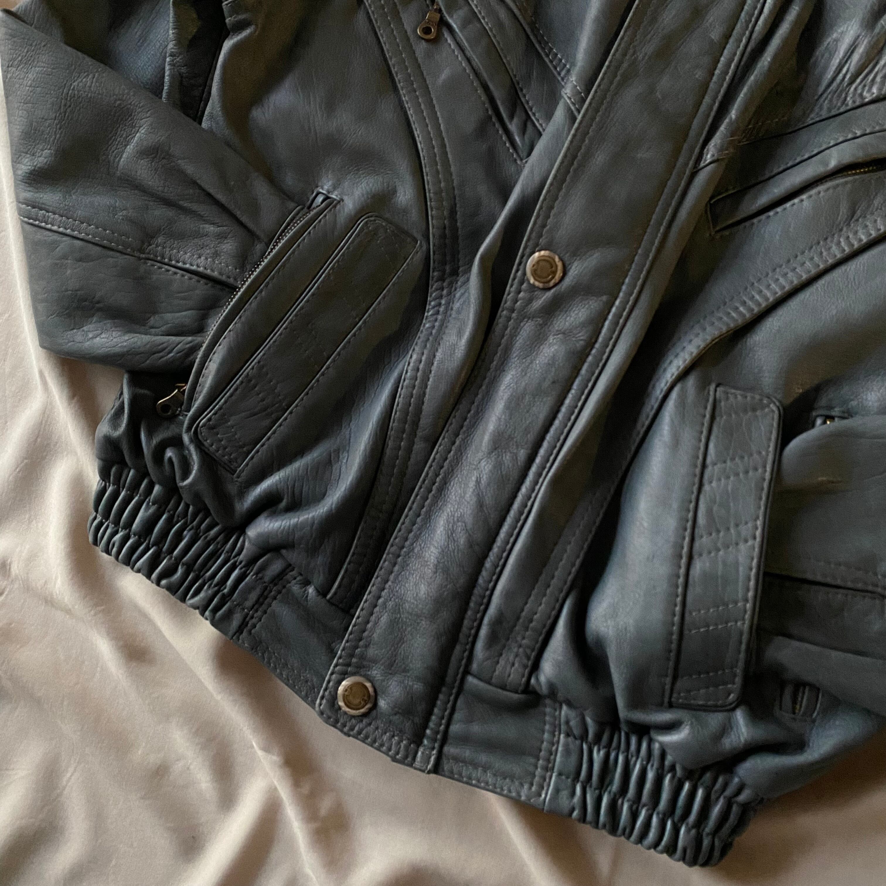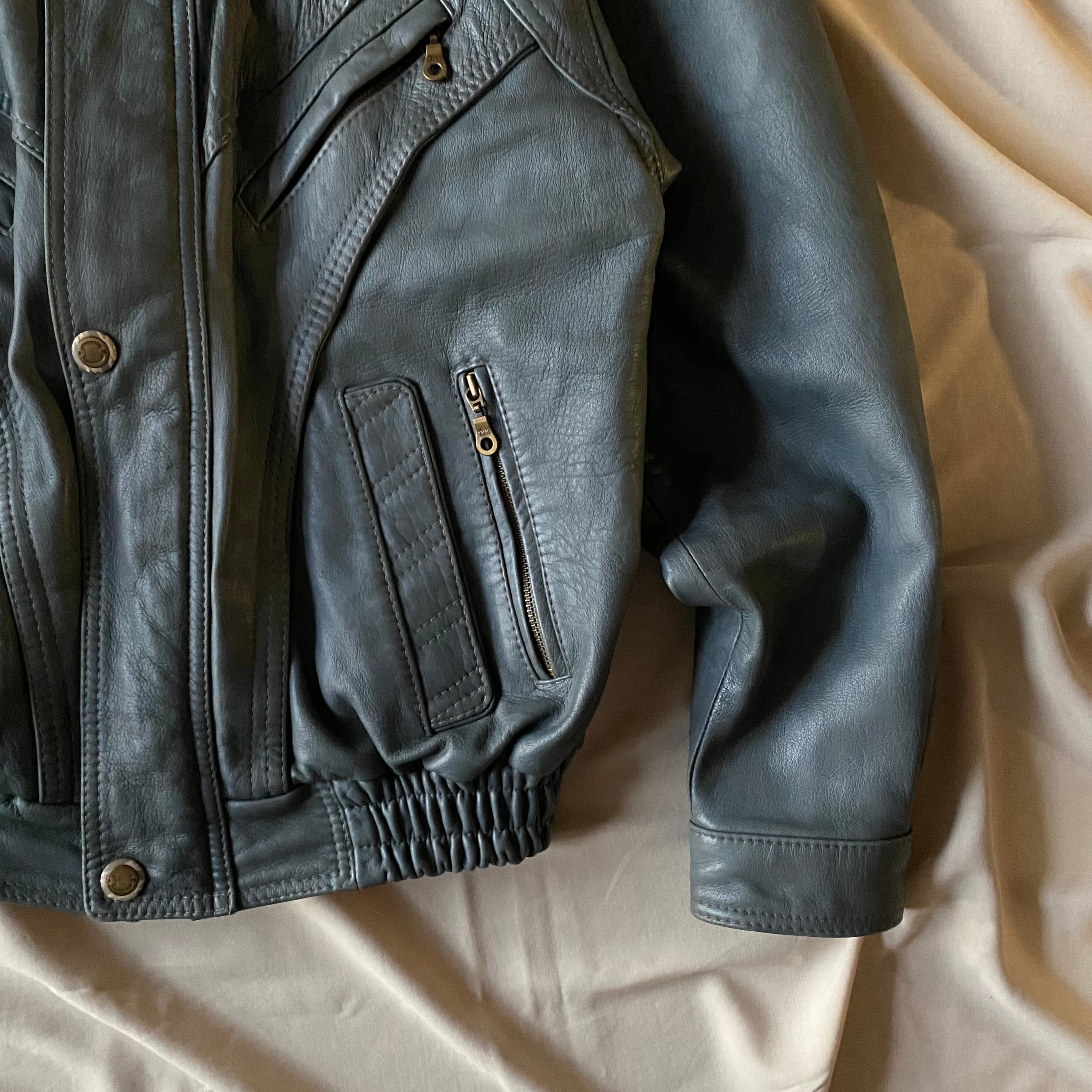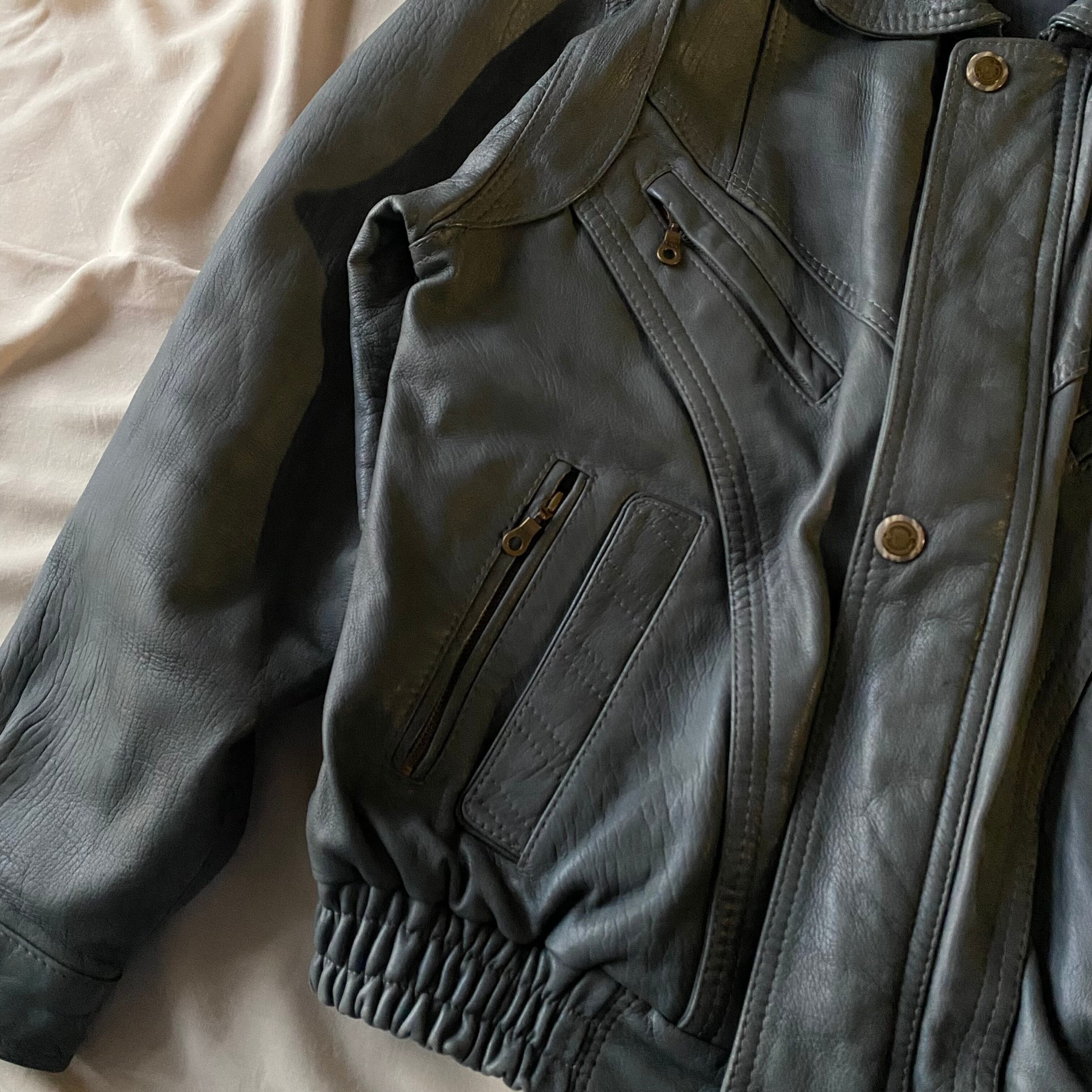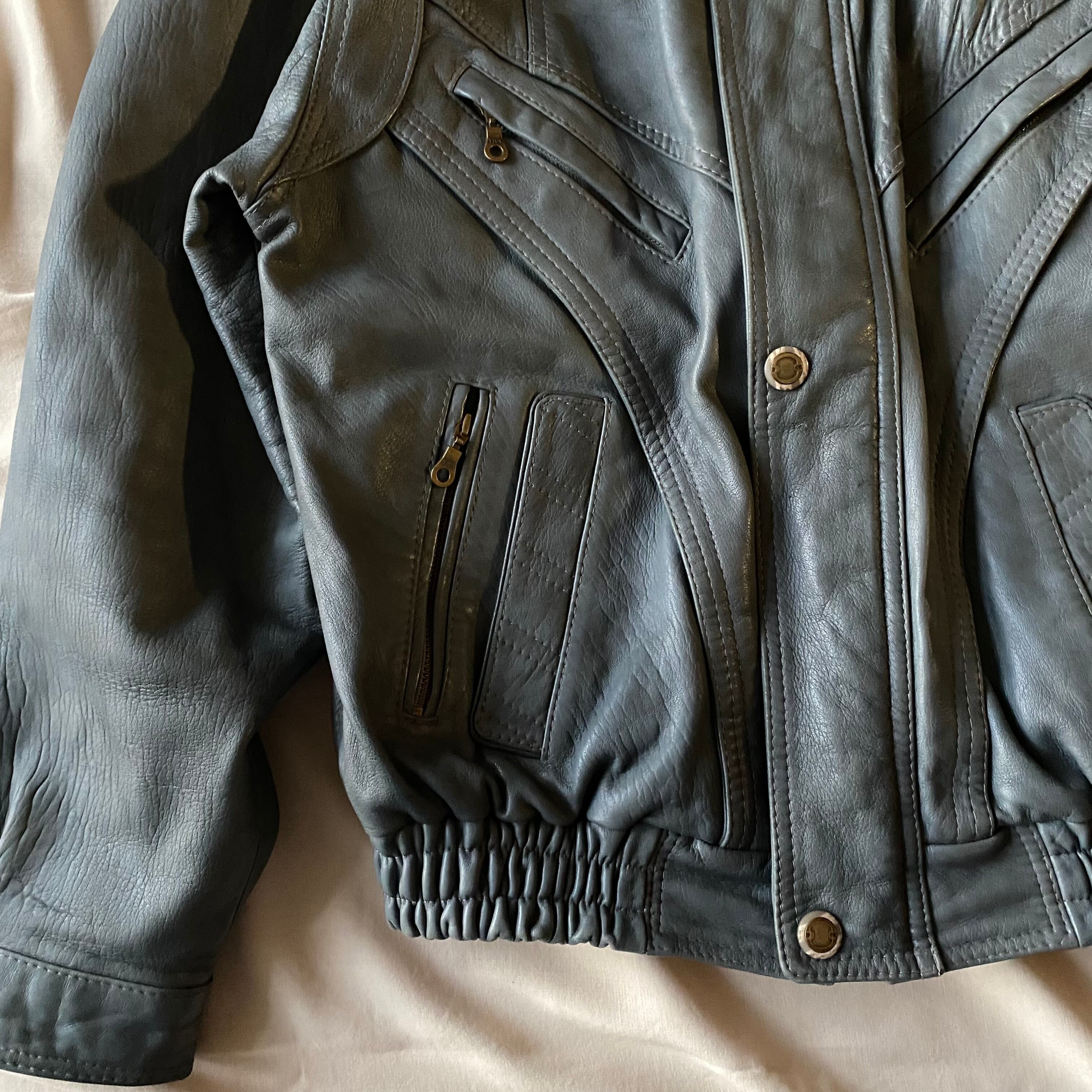 80's / grey zip up leather jacket