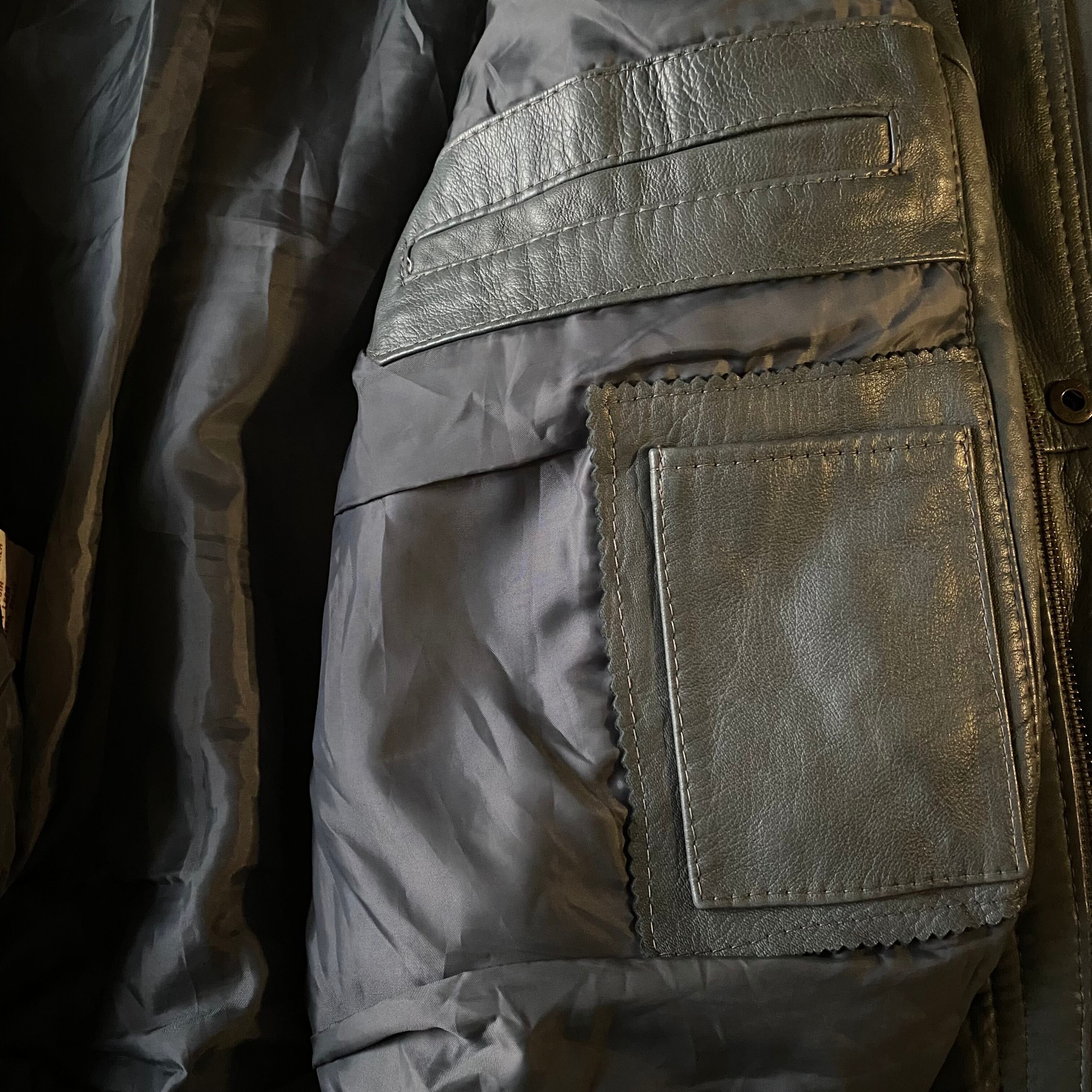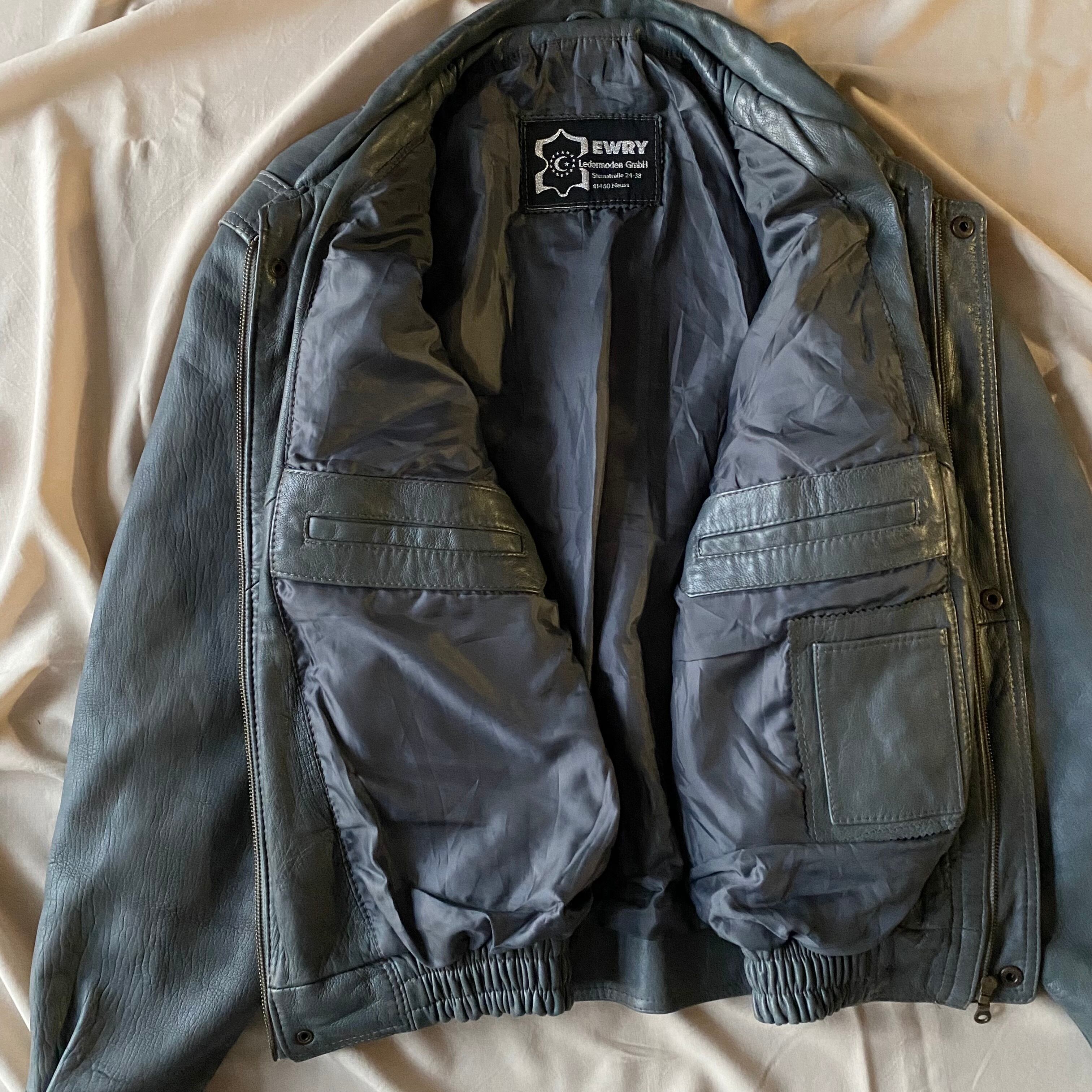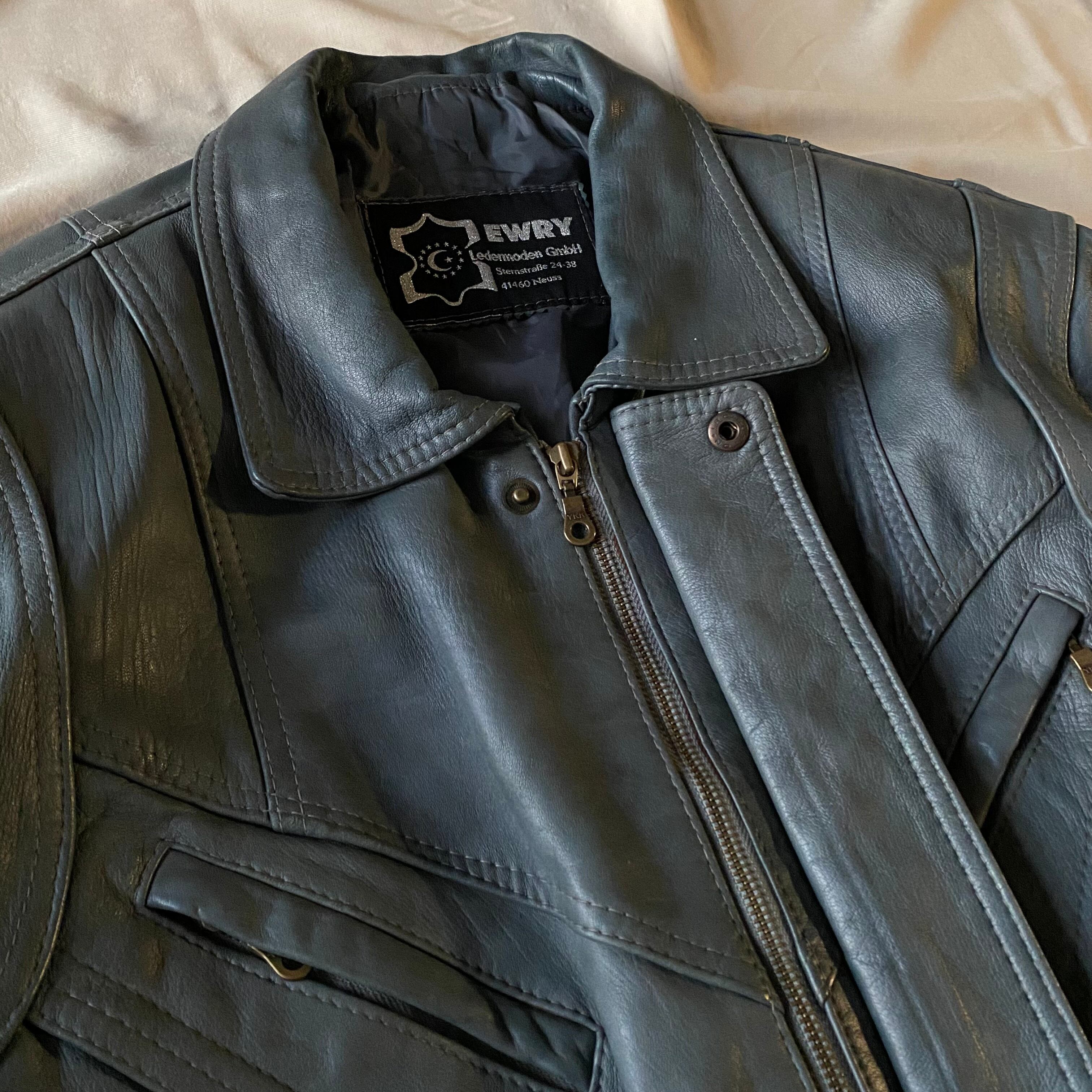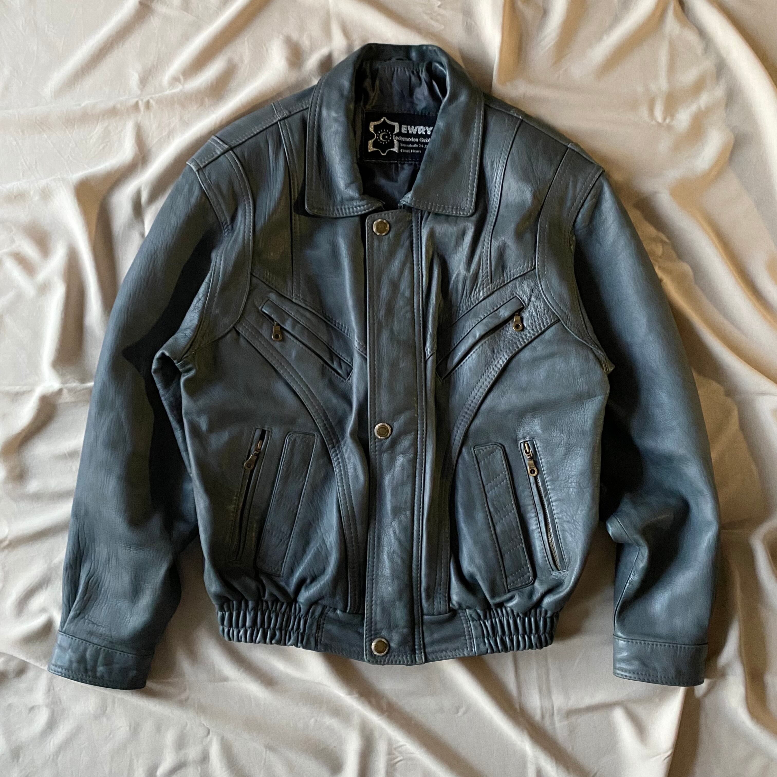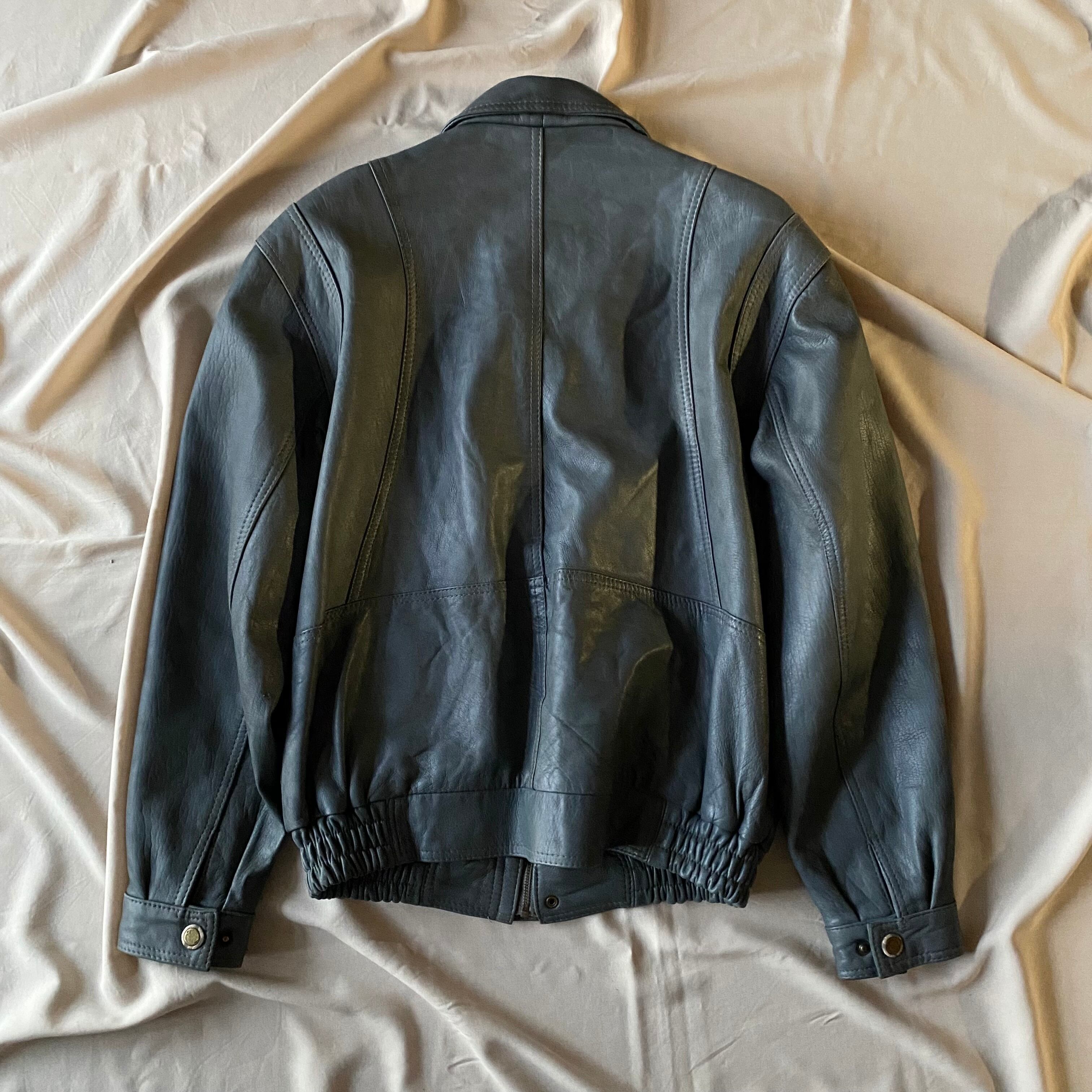80's / grey zip up leather jacket