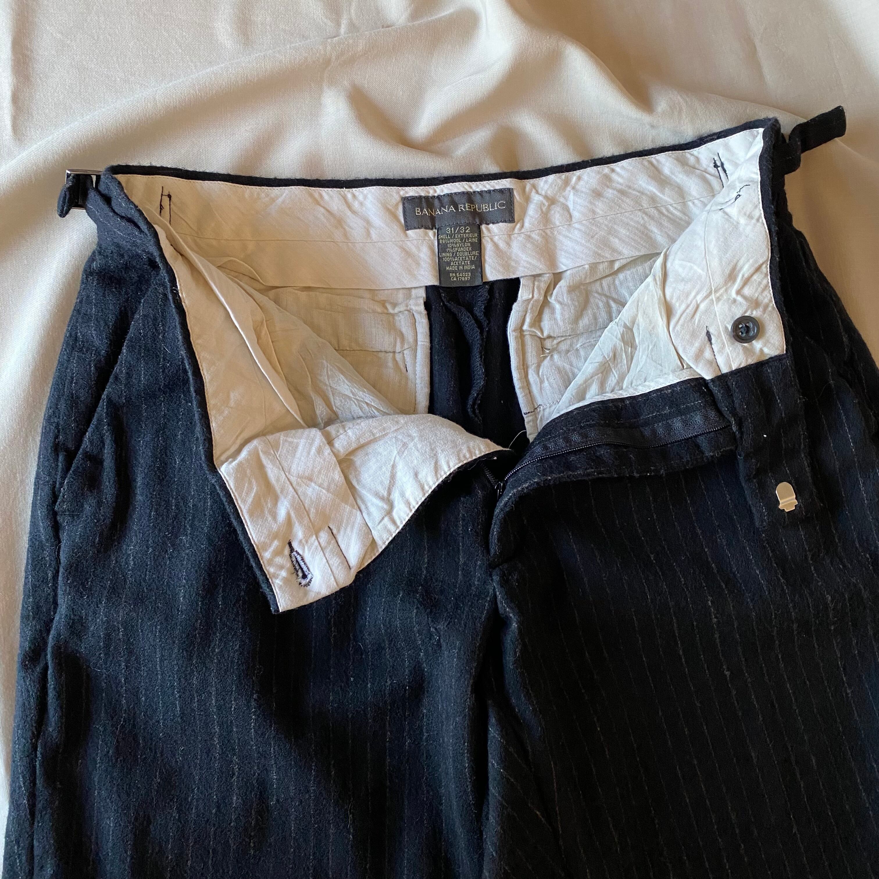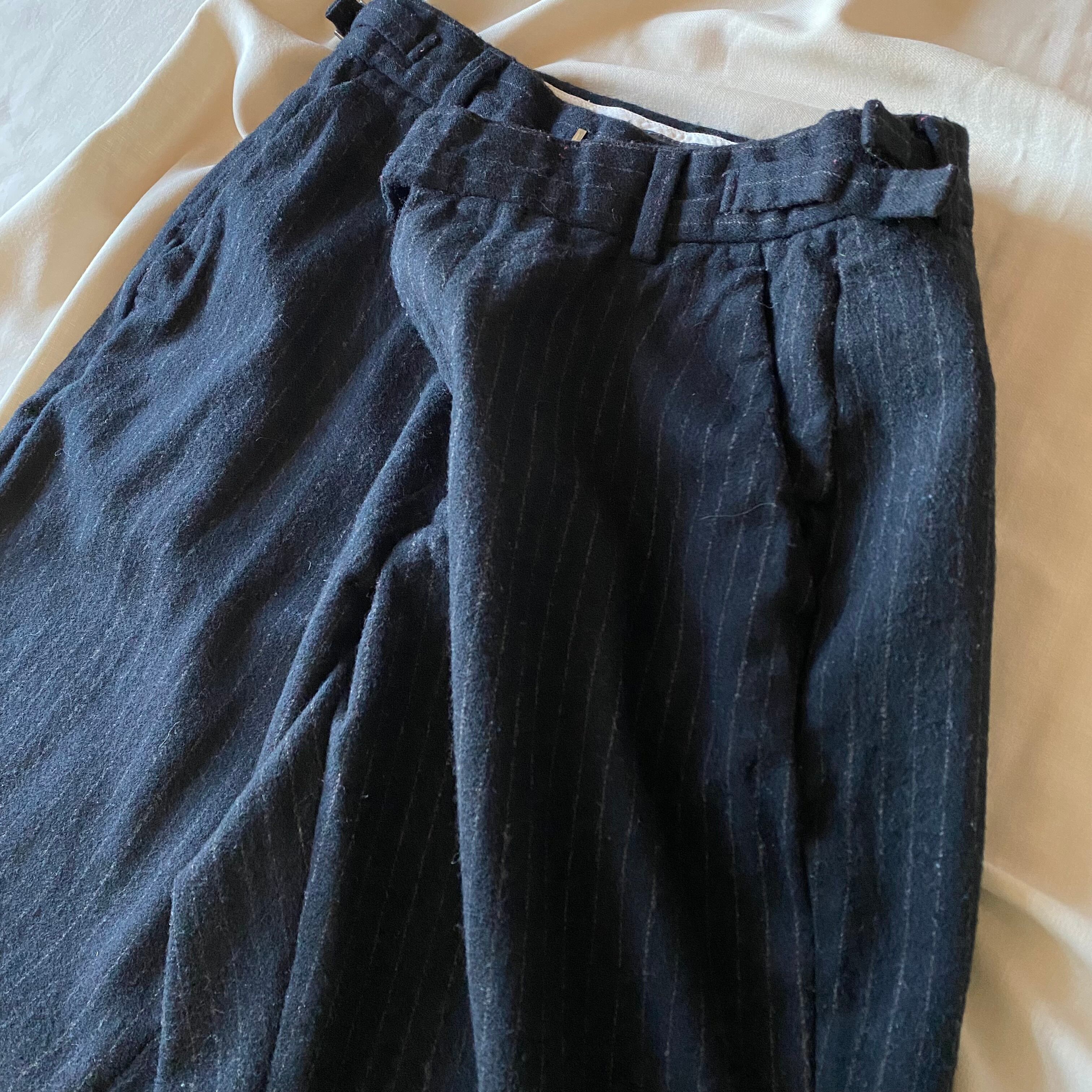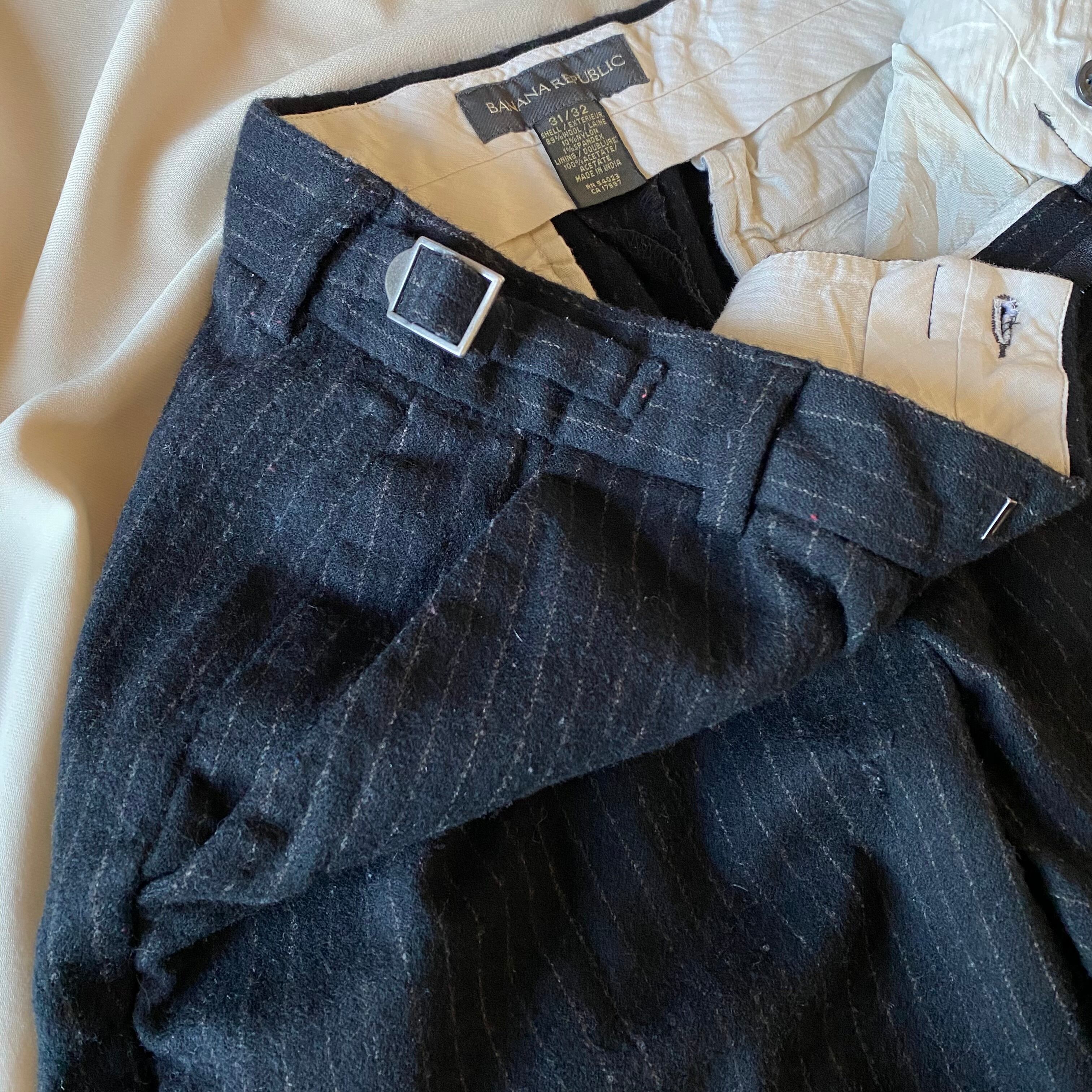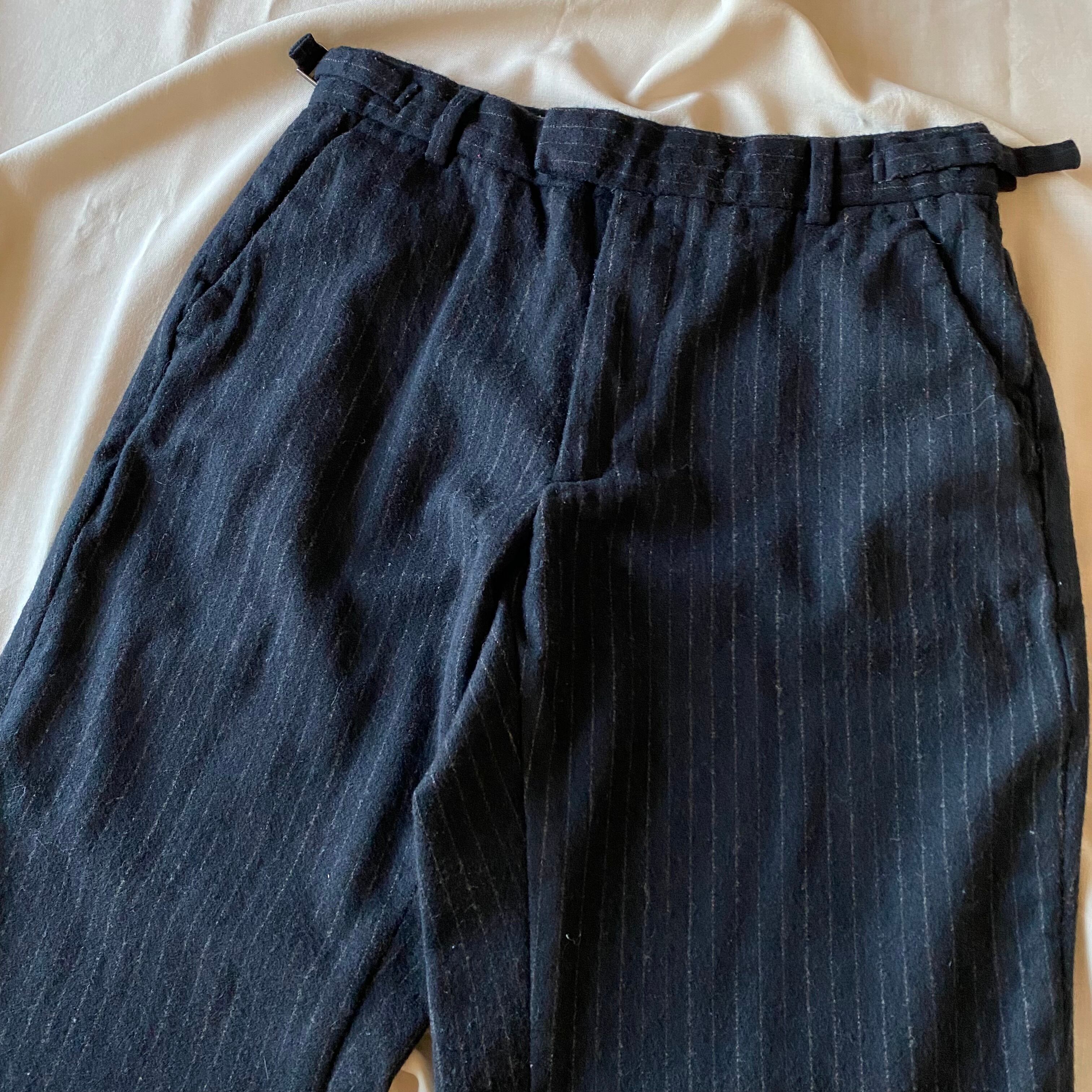 こちらはほぼ真っ黒(気持ちチャコールがかった感じです)をベースに、うっすらとホワイトのストライプがかかったシンプルなスラックス。シンプルなアイテムだからこそ、いい年代、いいブランドで持っておきたいと思えるカテゴリのやつです。