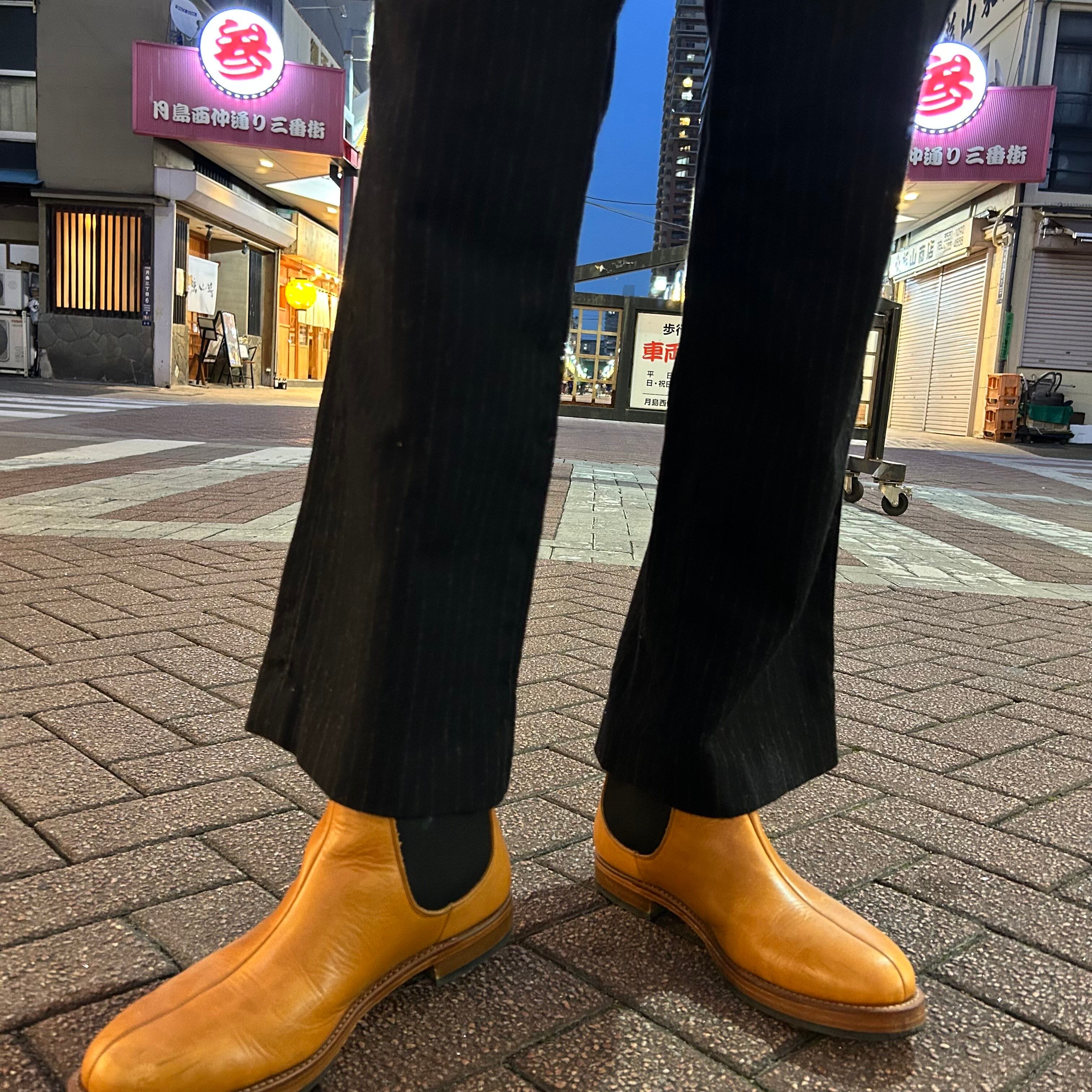 こういったストライプのウールスラックスは、飽きが来ず着ていただけるアイテムですので、とてもオススメです。