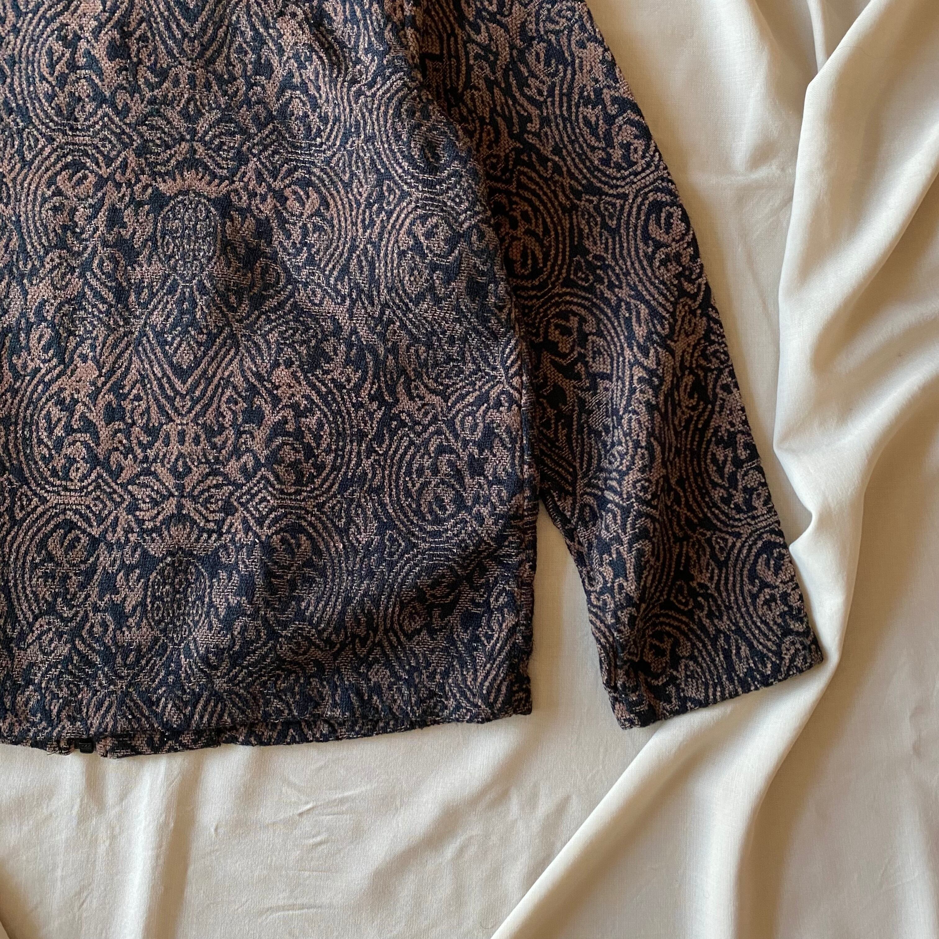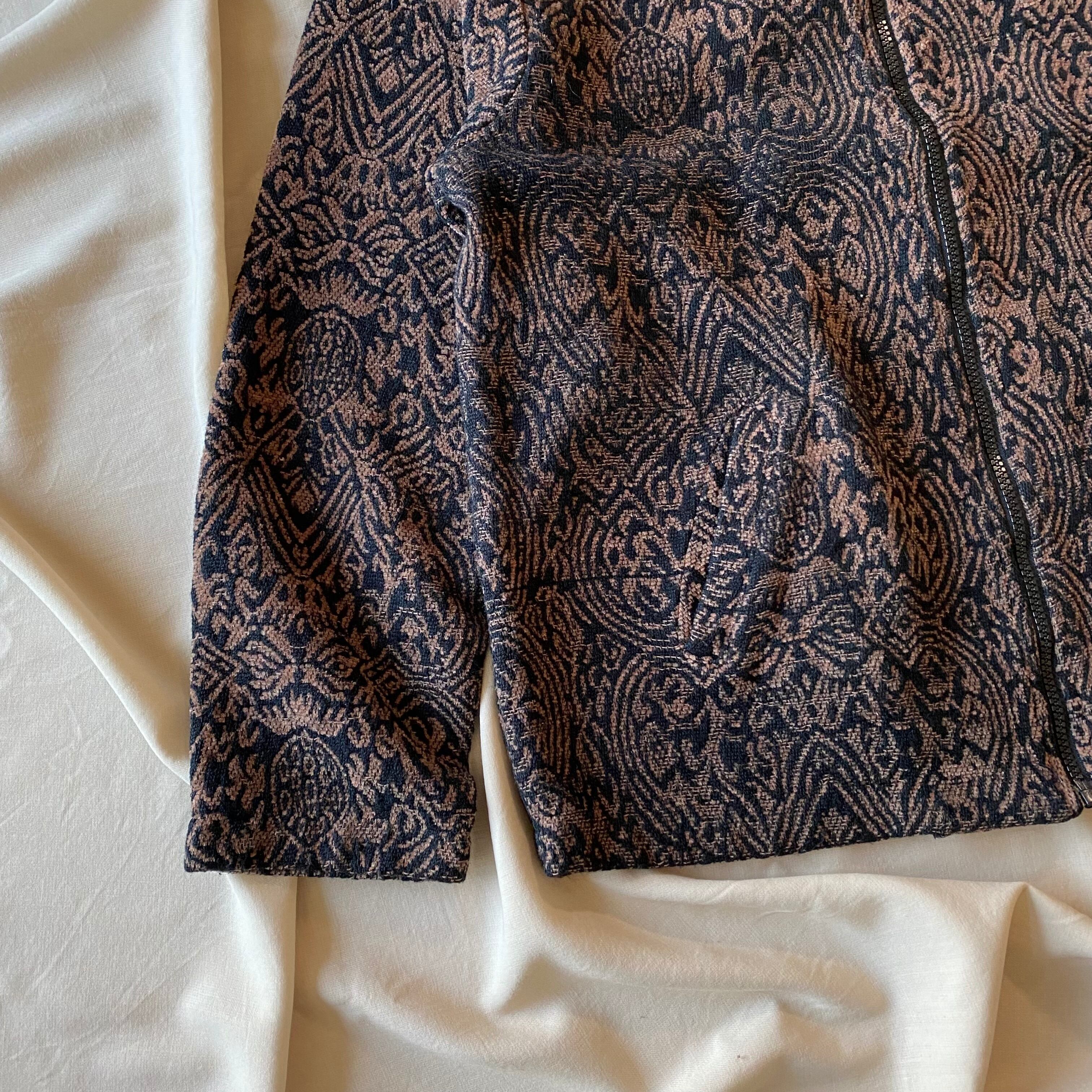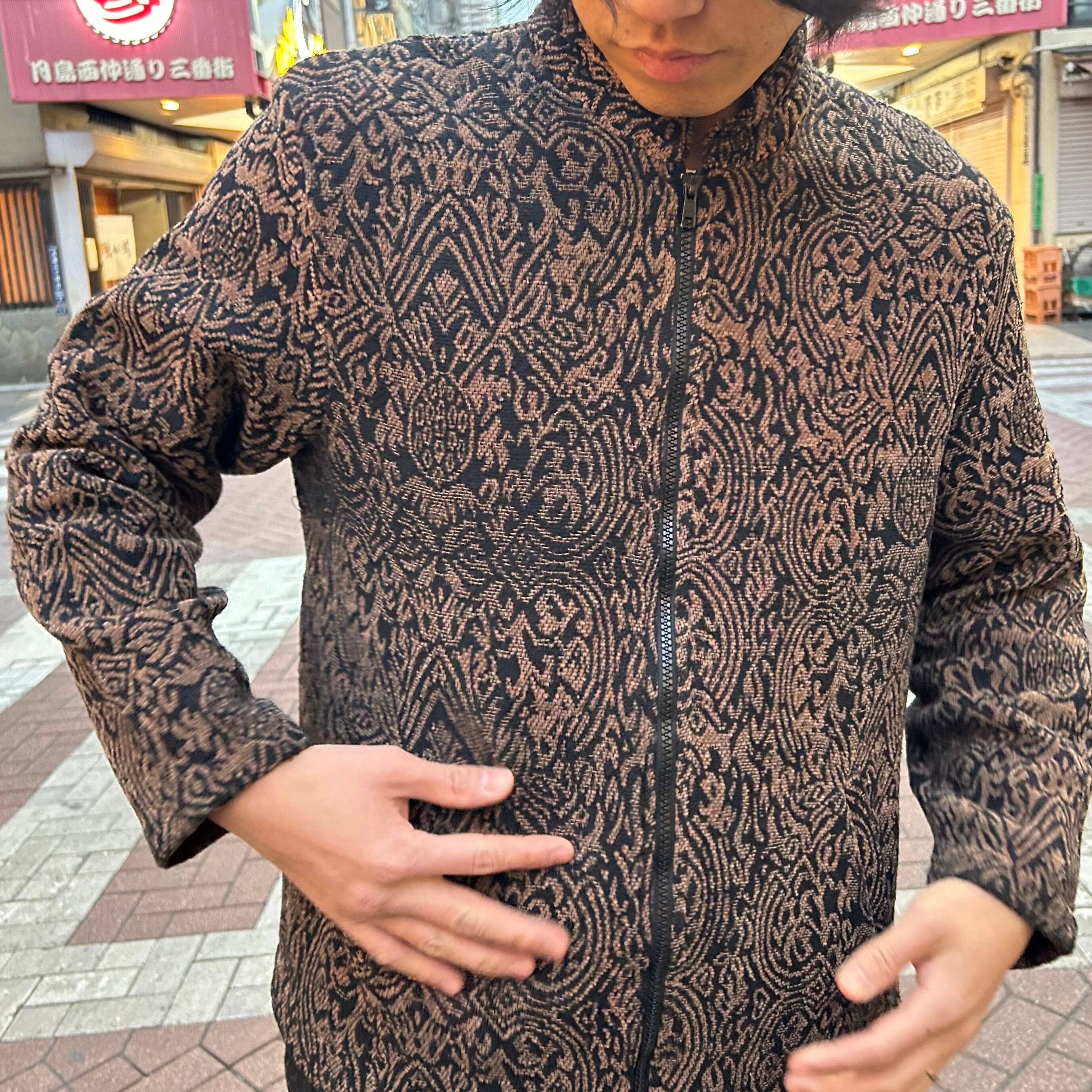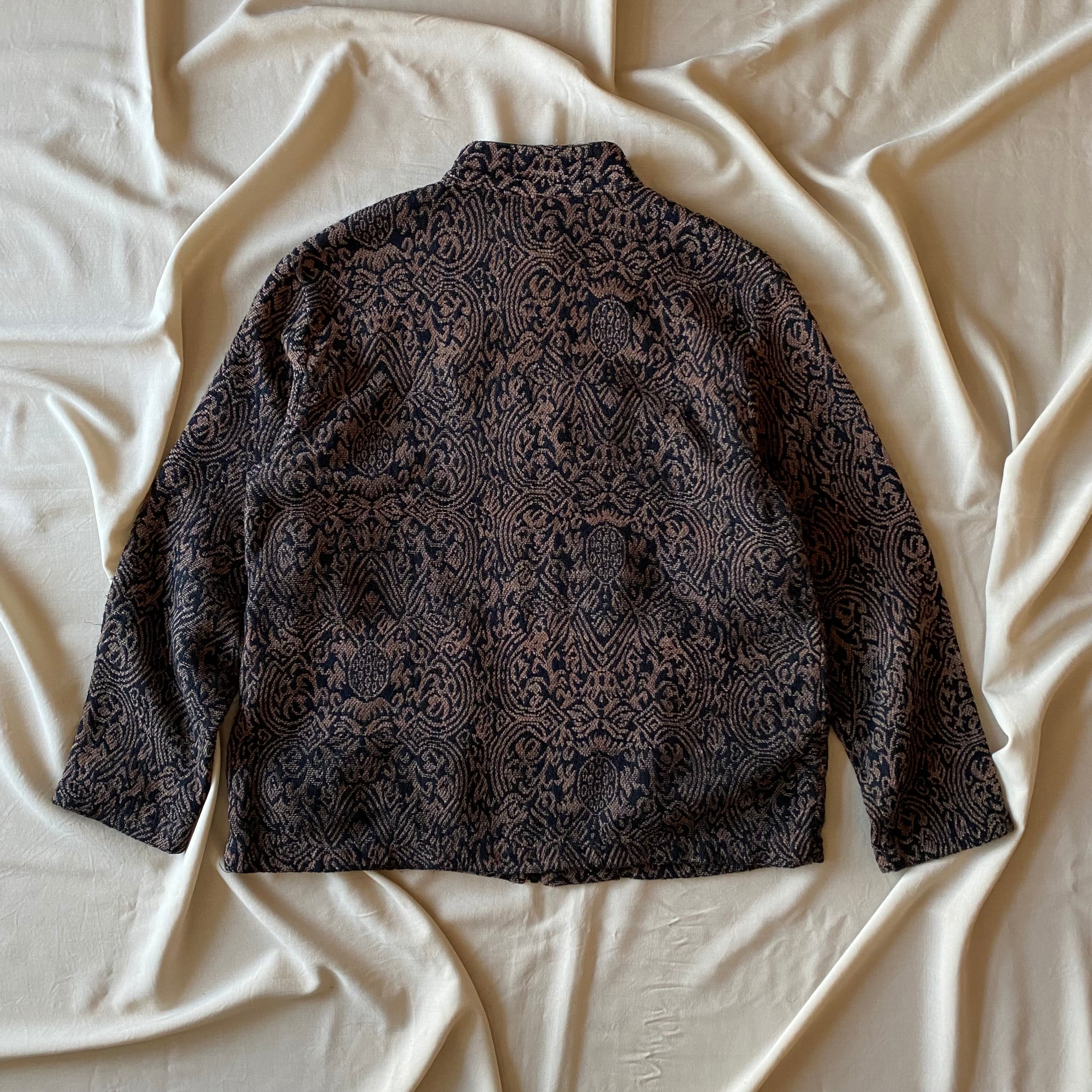 スタンドカラーになっており、ゴブラン調のデザインも相まってモードな雰囲気を感じます。