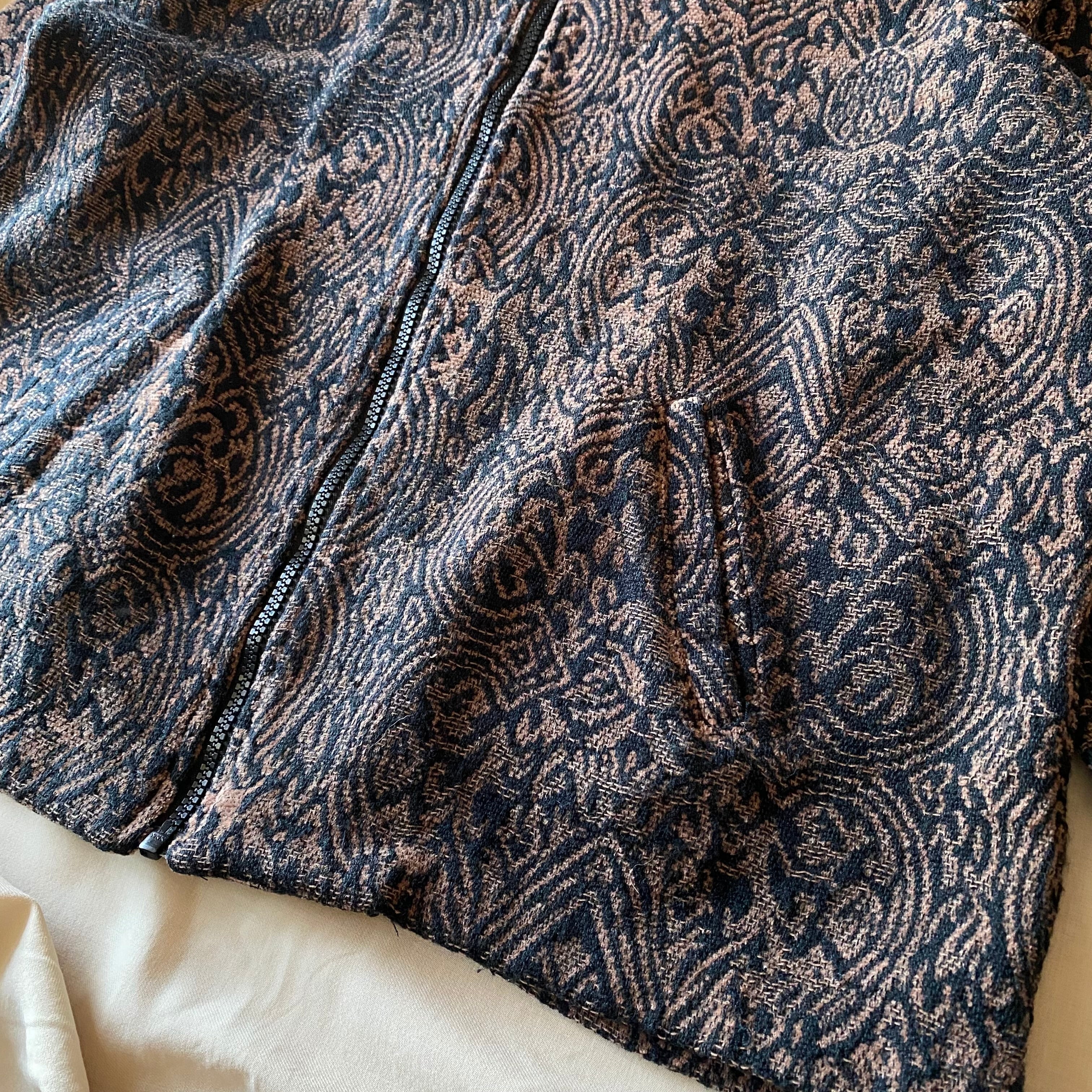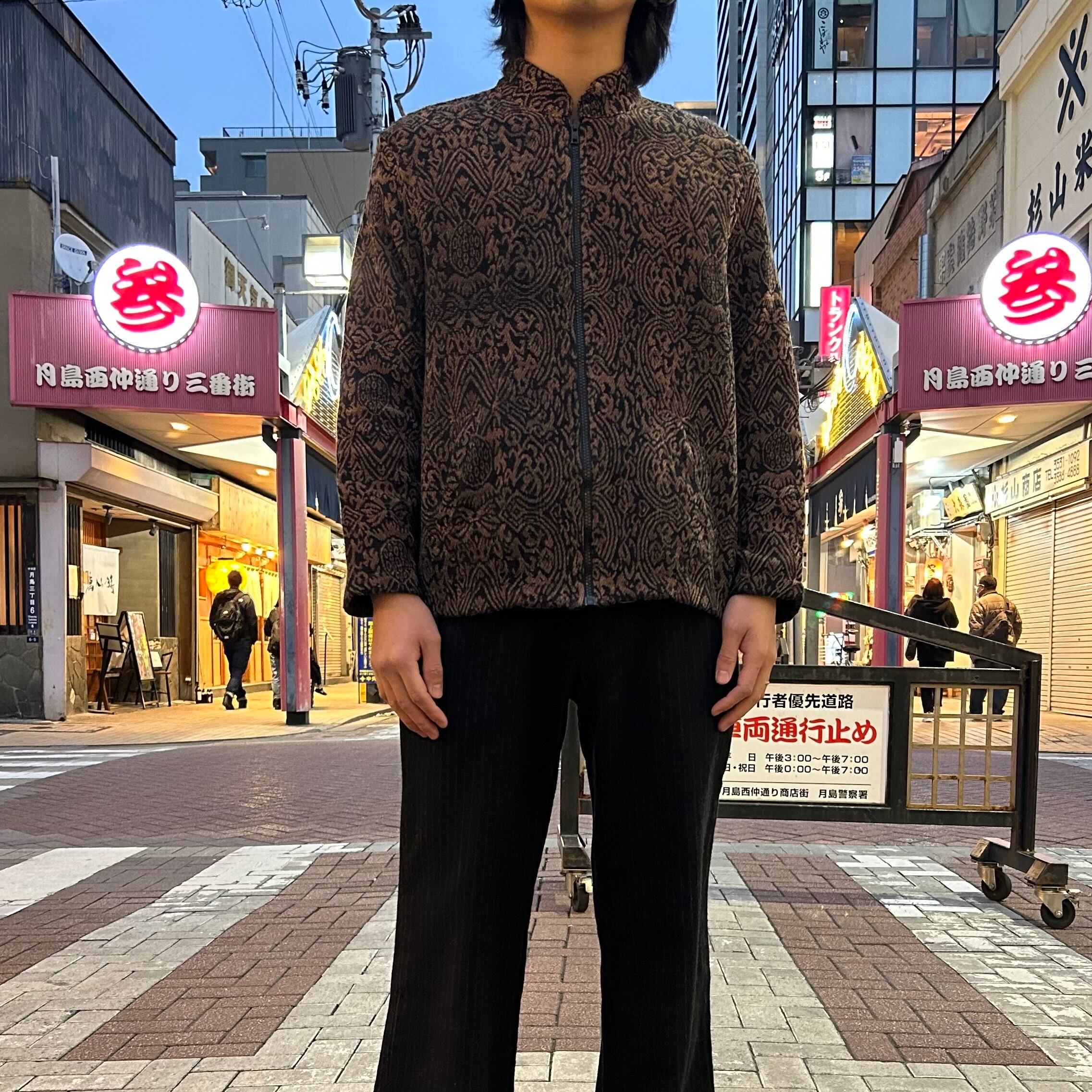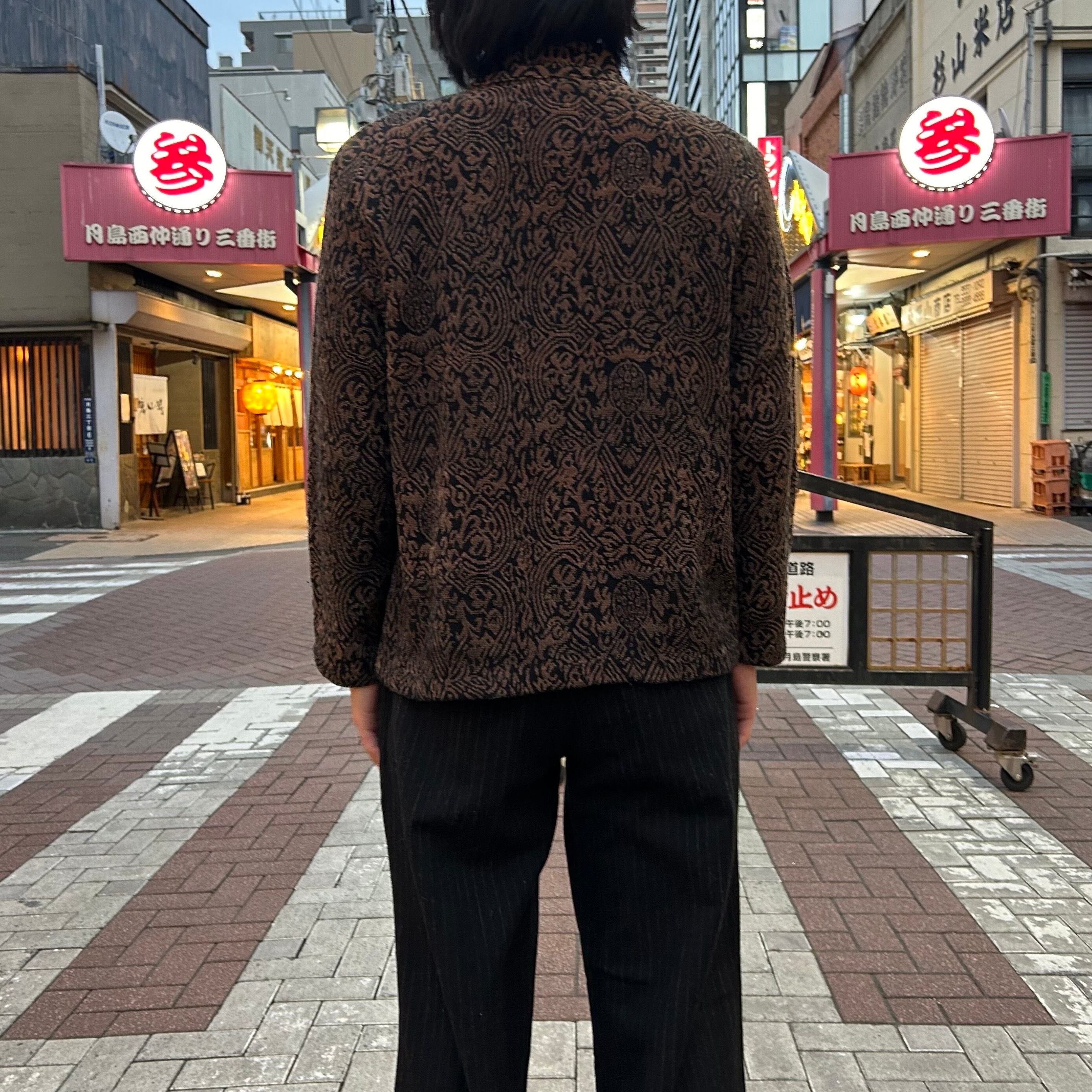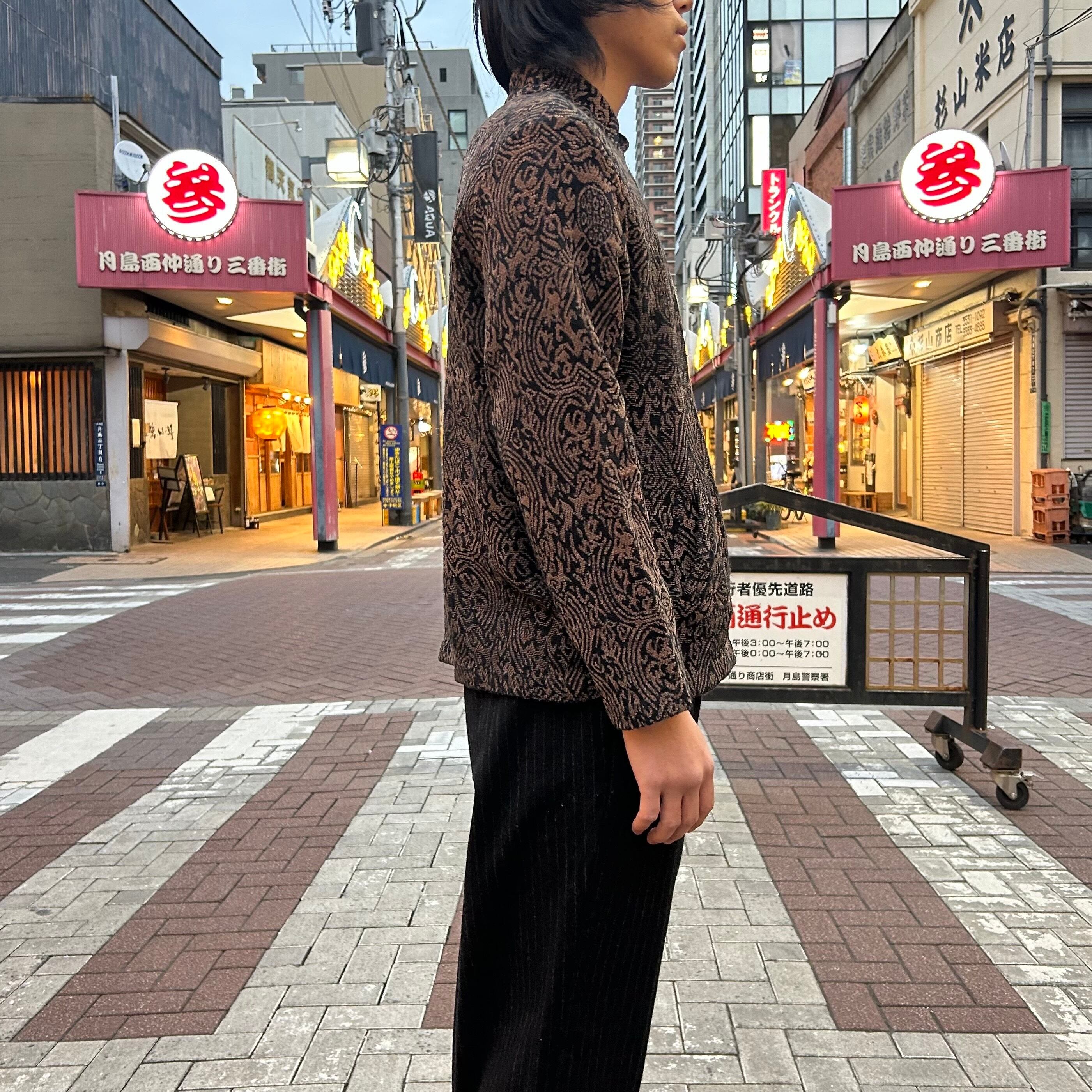スタンドカラーになっており、ゴブラン調のデザインも相まってモードな雰囲気を感じます。
