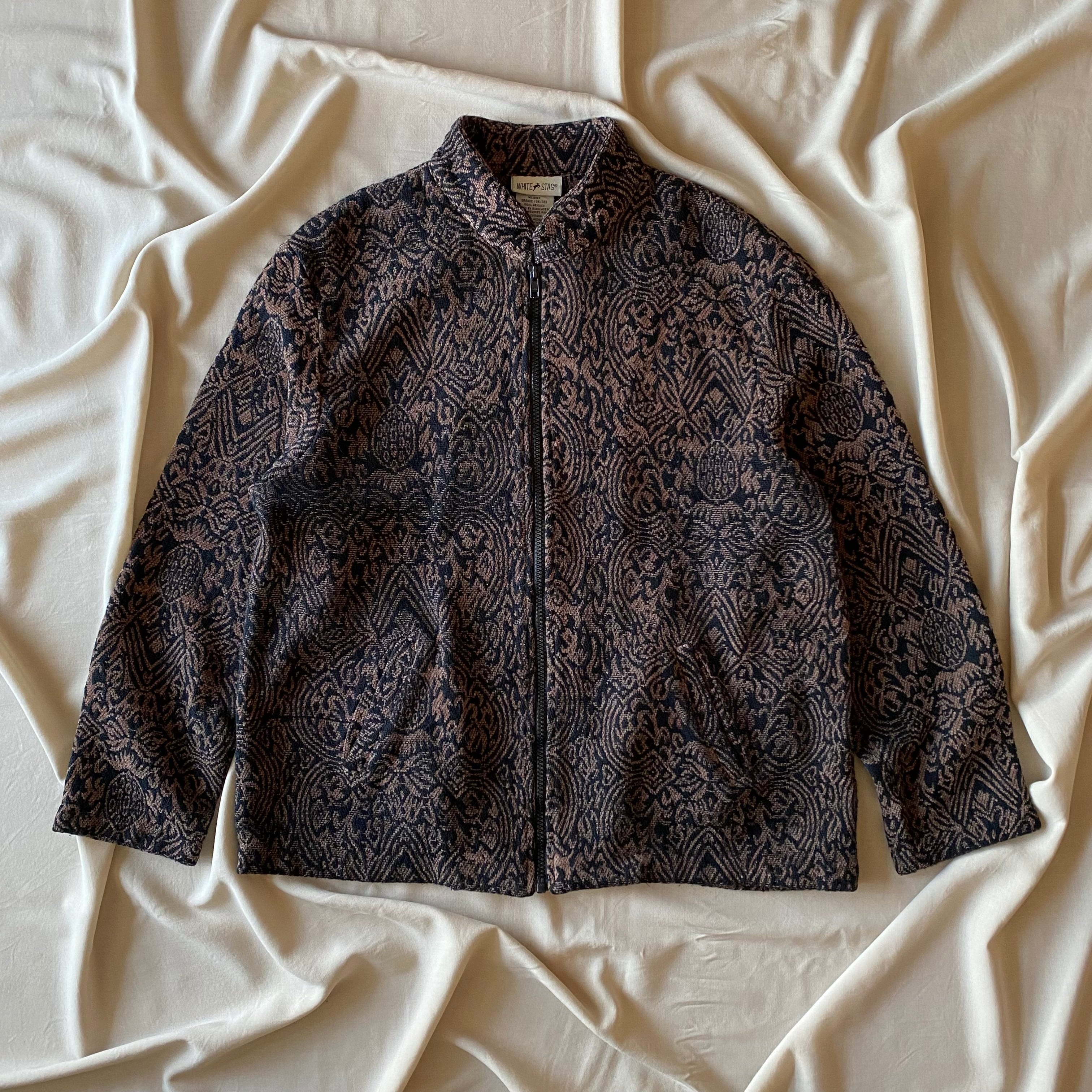 90's / 《WHITE STAG》stand collar zip up knit