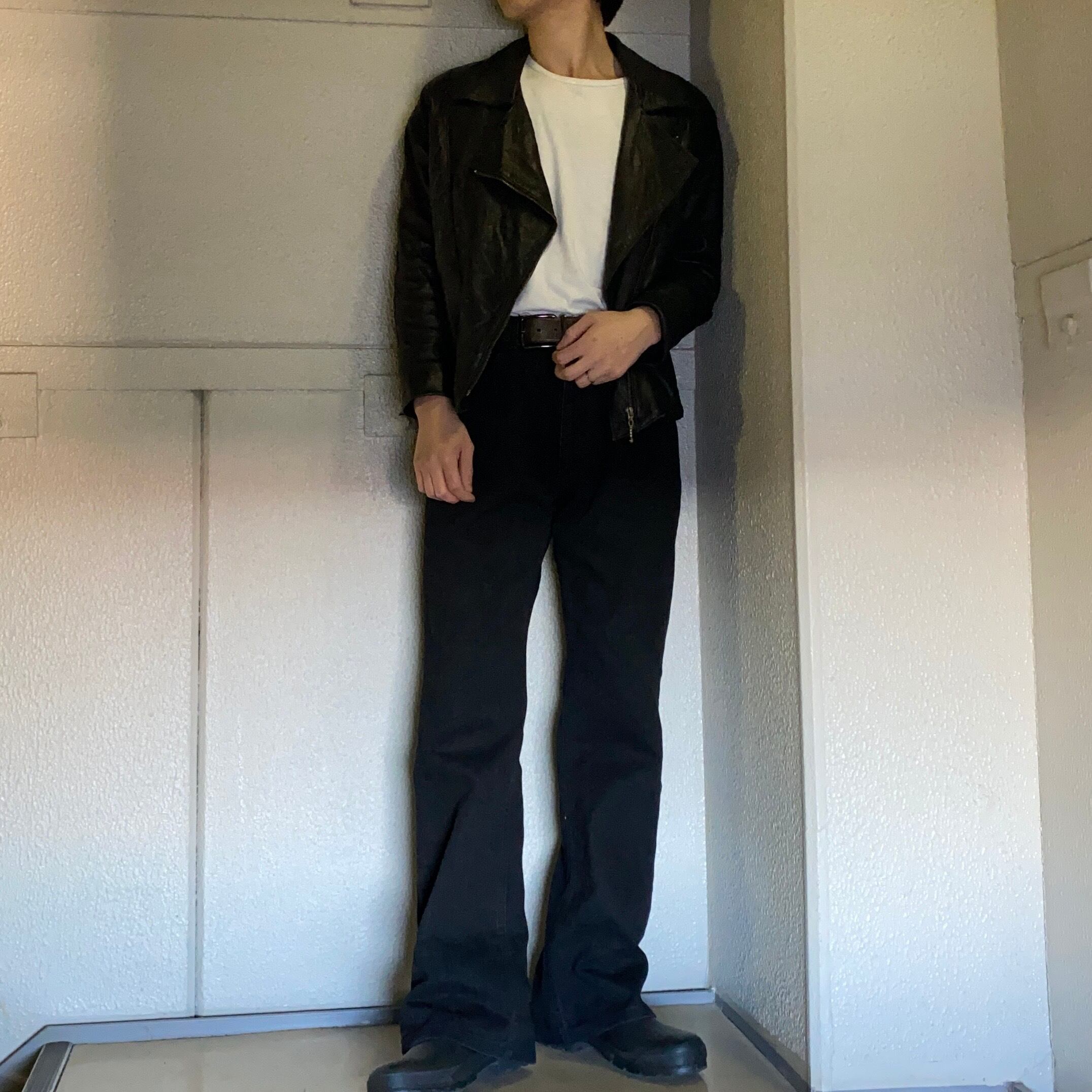 着用画像のようにブーツと合わせるもよし、もしくはオールスターなどのローテクと合わせて、裾のエイジングを楽しむのも良さそうです◎