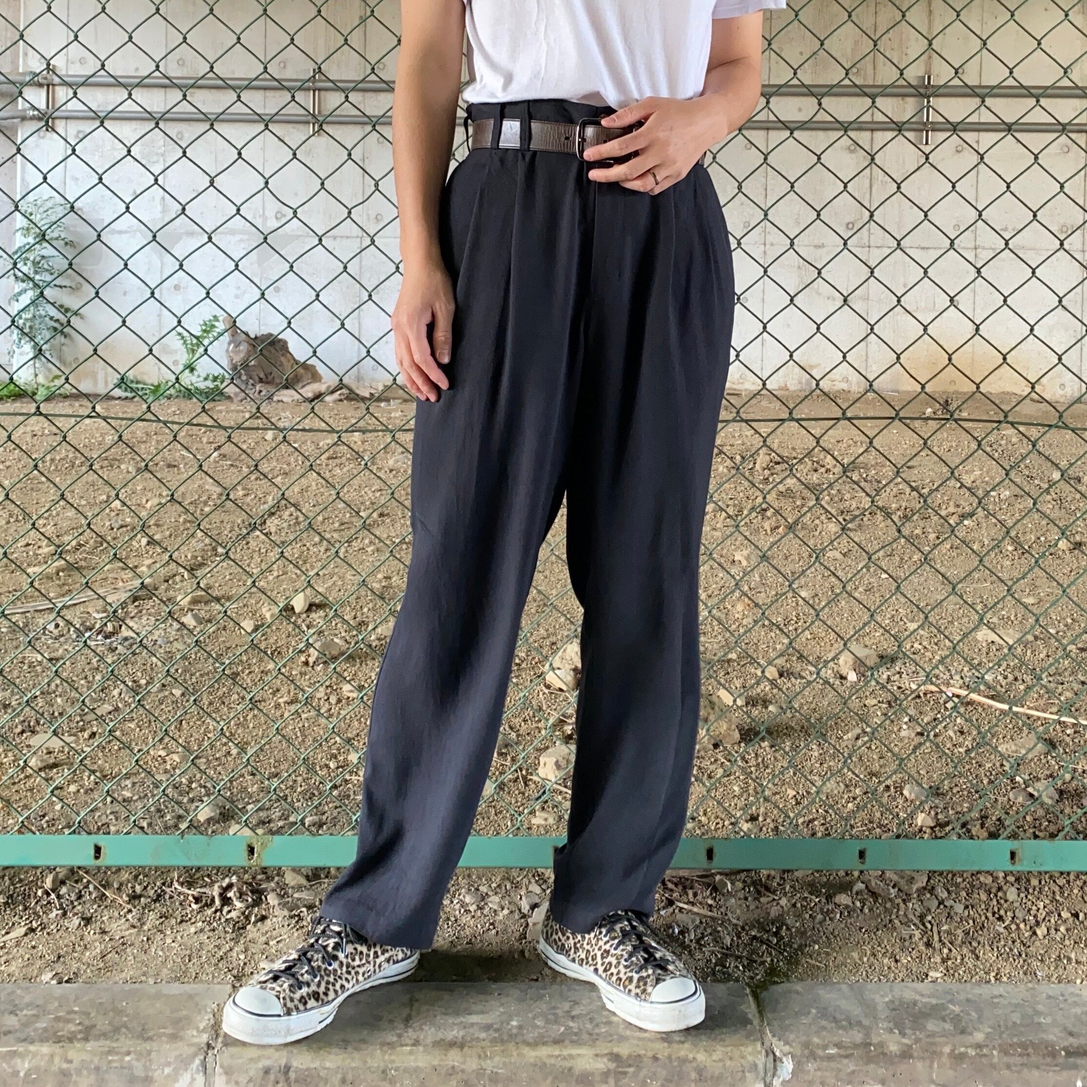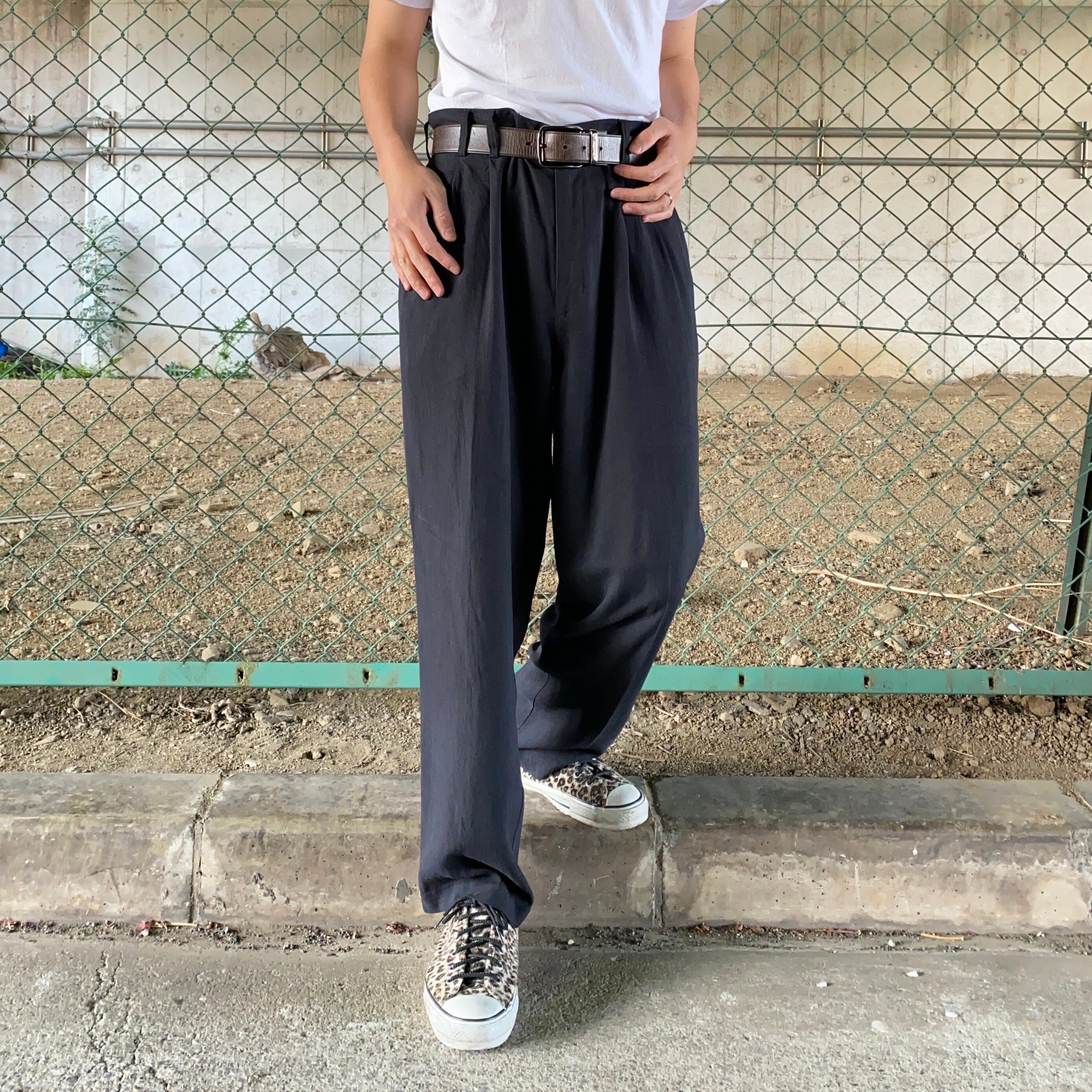 90's / black silk pants