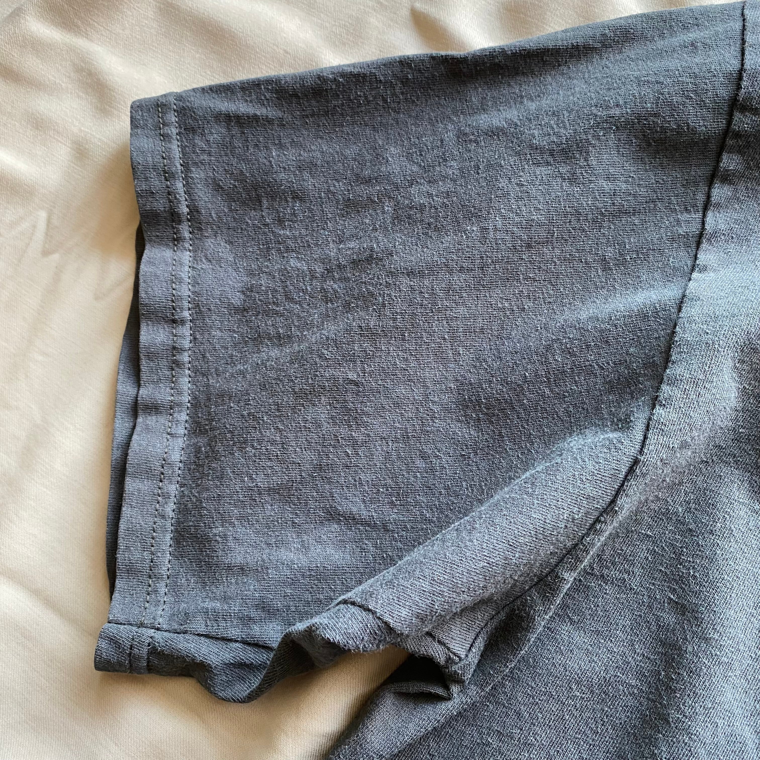 B. わずかな染みや着色、小穴、ほつれ、皺などあり / 普段から古着を身につけられる方には抵抗のないレベルの通常の古着の状態